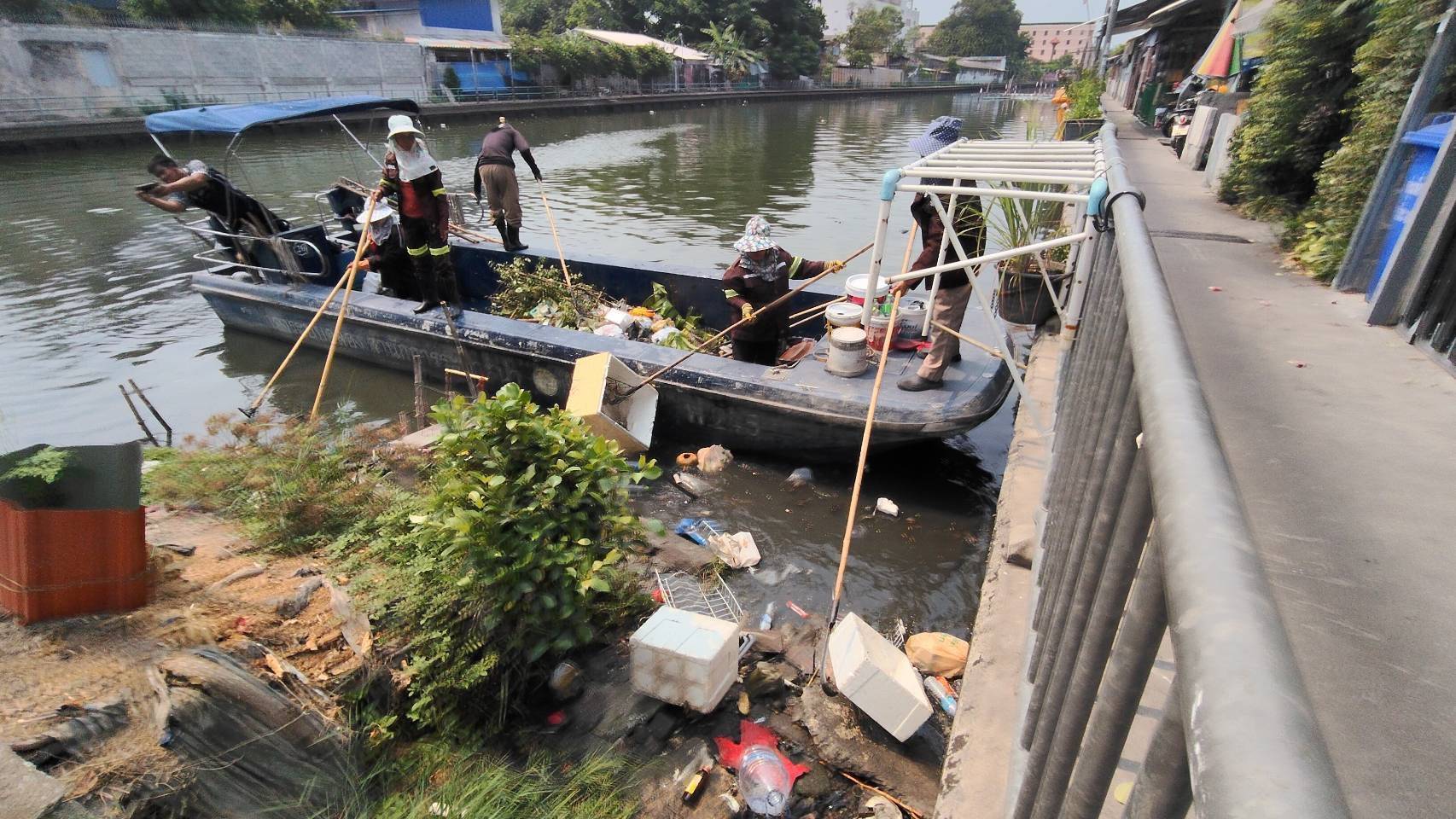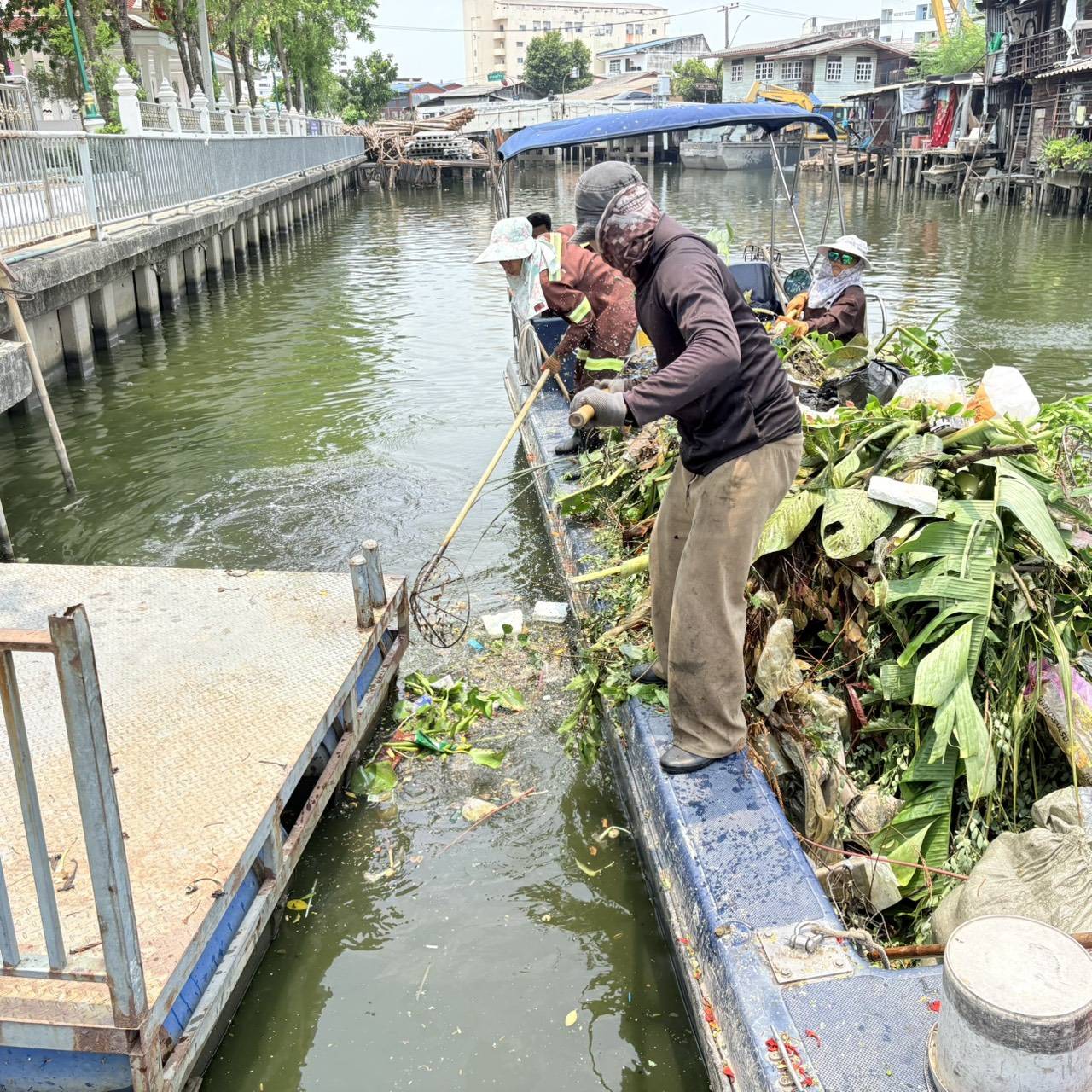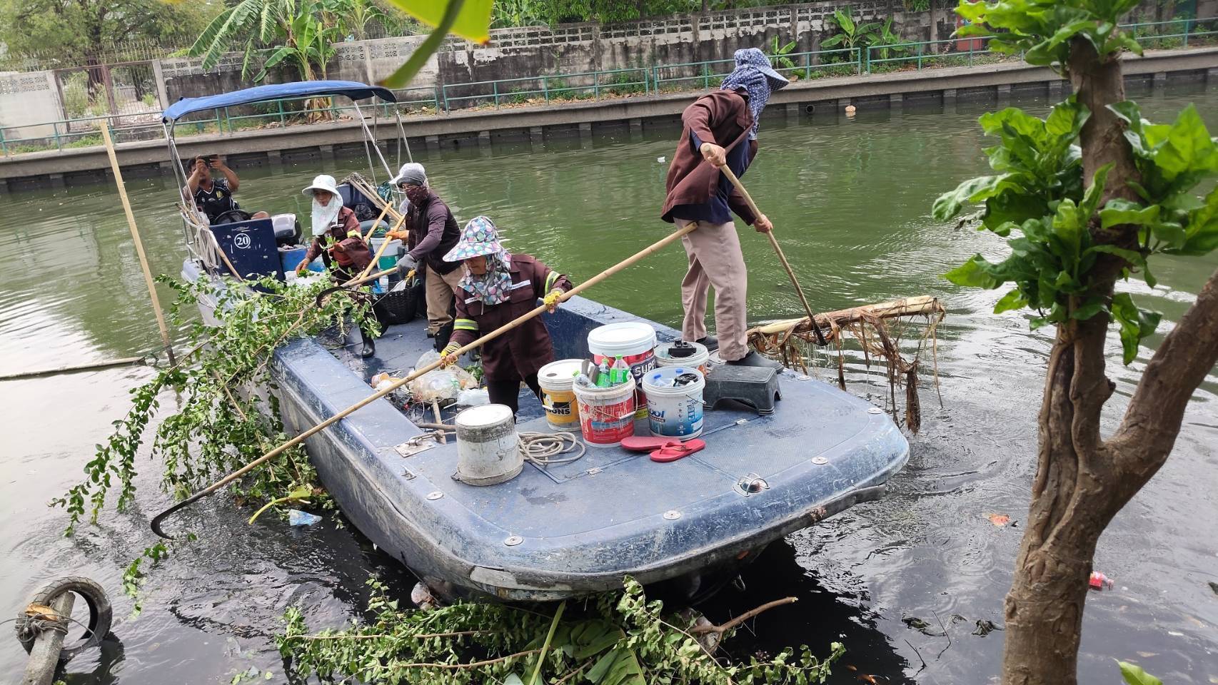 เจ้าหน้าที่ เก็บขยะและวัชพืชคลองลาดพร้าว พื้นที่เขตจตุจักร เขตลาดพร้าว