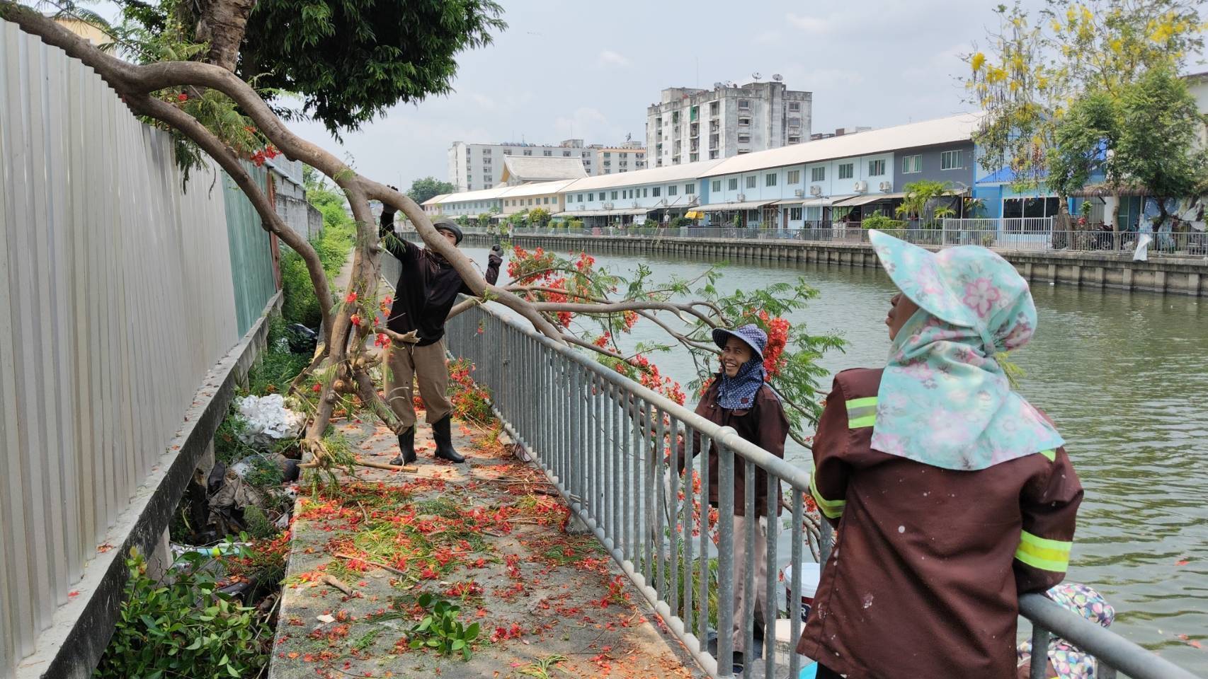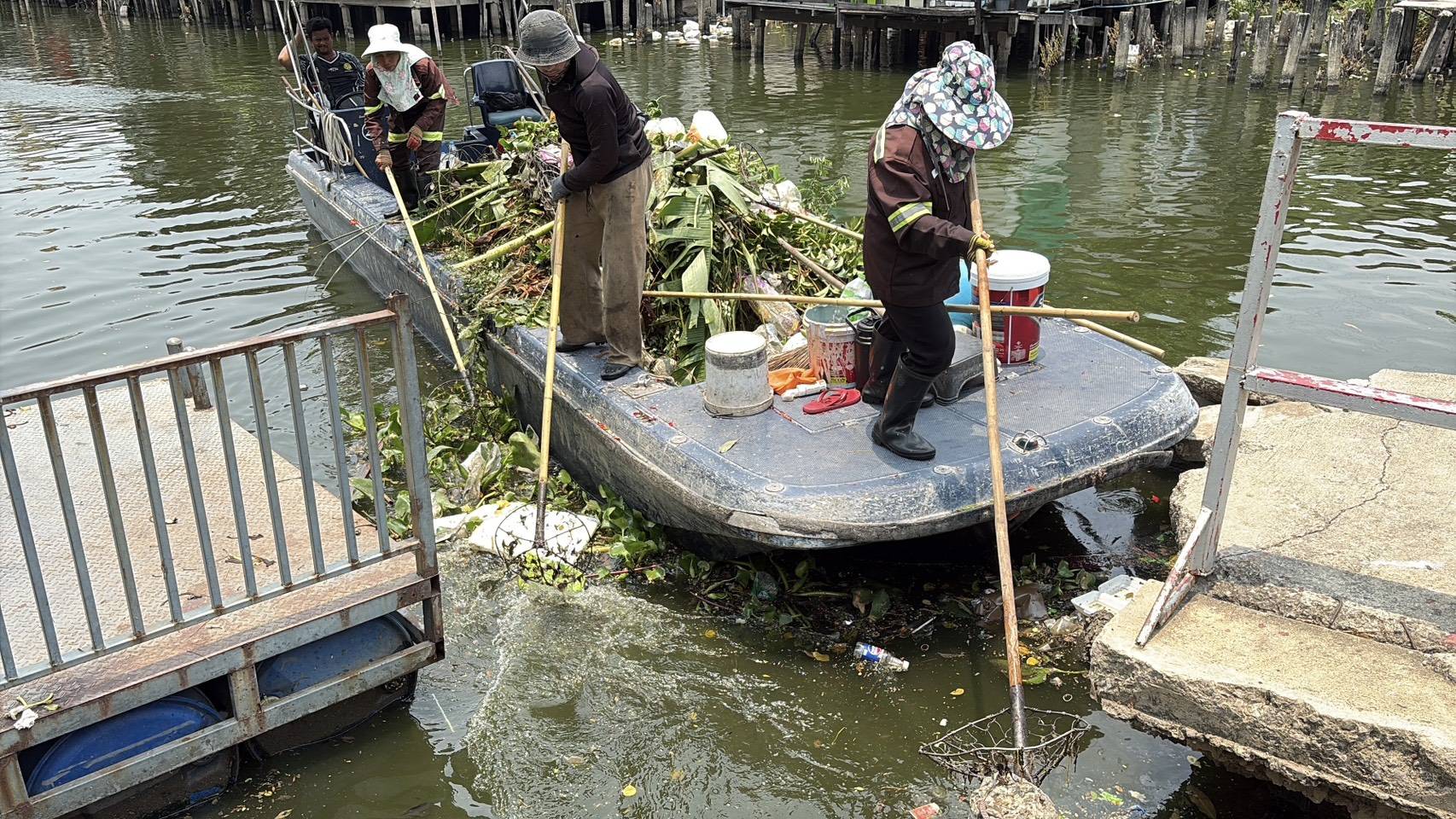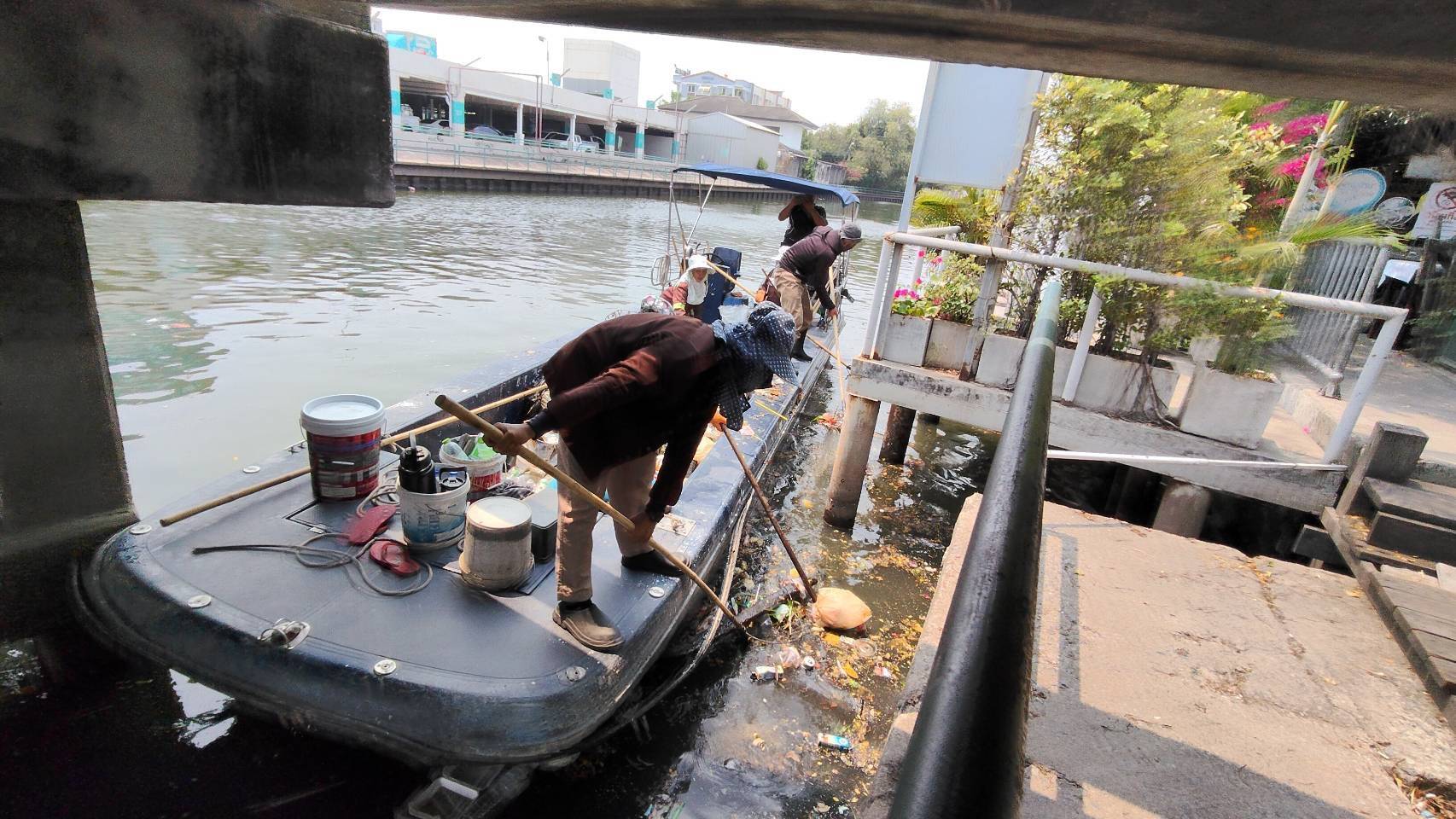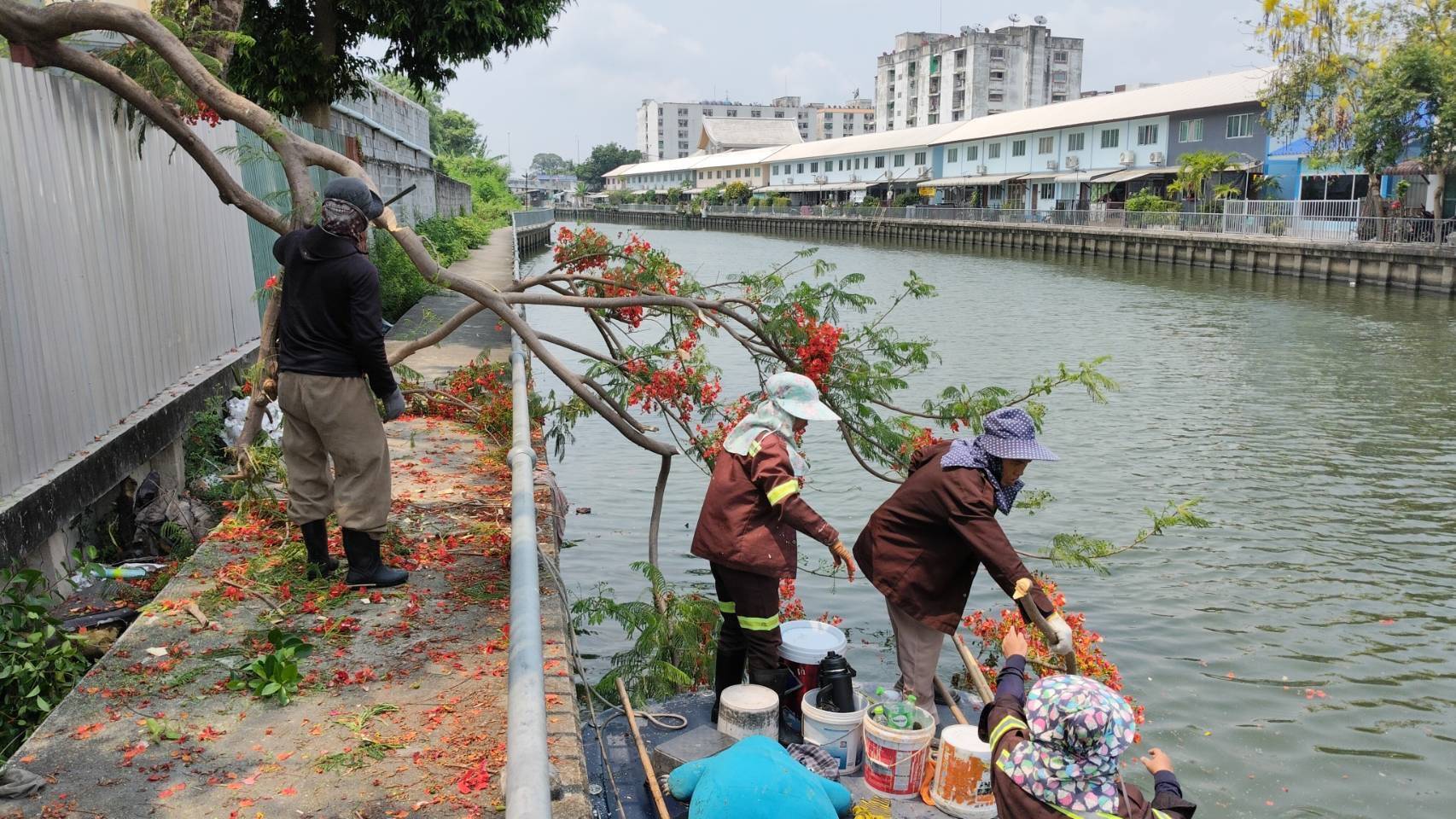 เจ้าหน้าที่ เก็บขยะและวัชพืชคลองลาดพร้าว พื้นที่เขตจตุจักร เขตลาดพร้าว