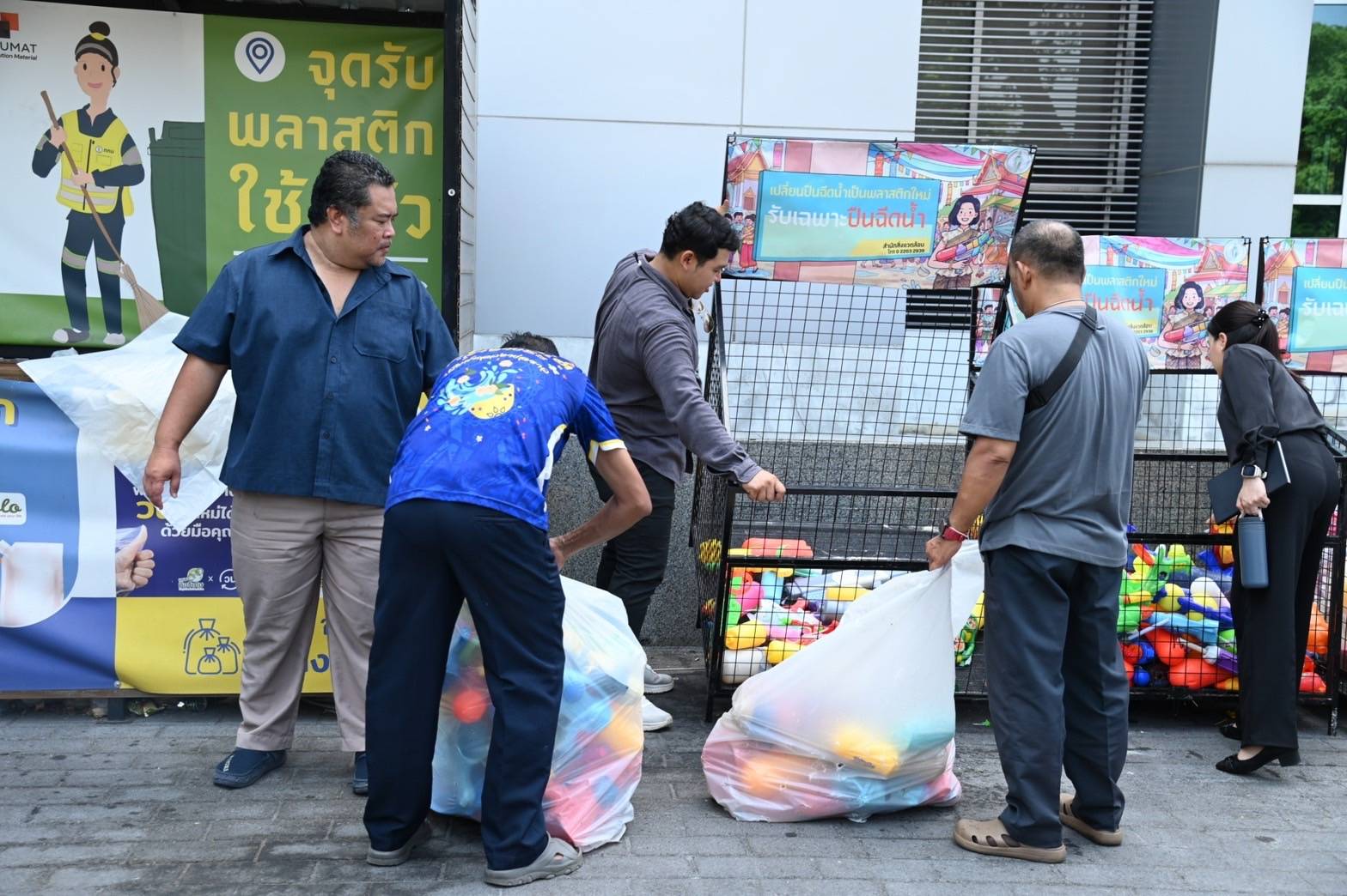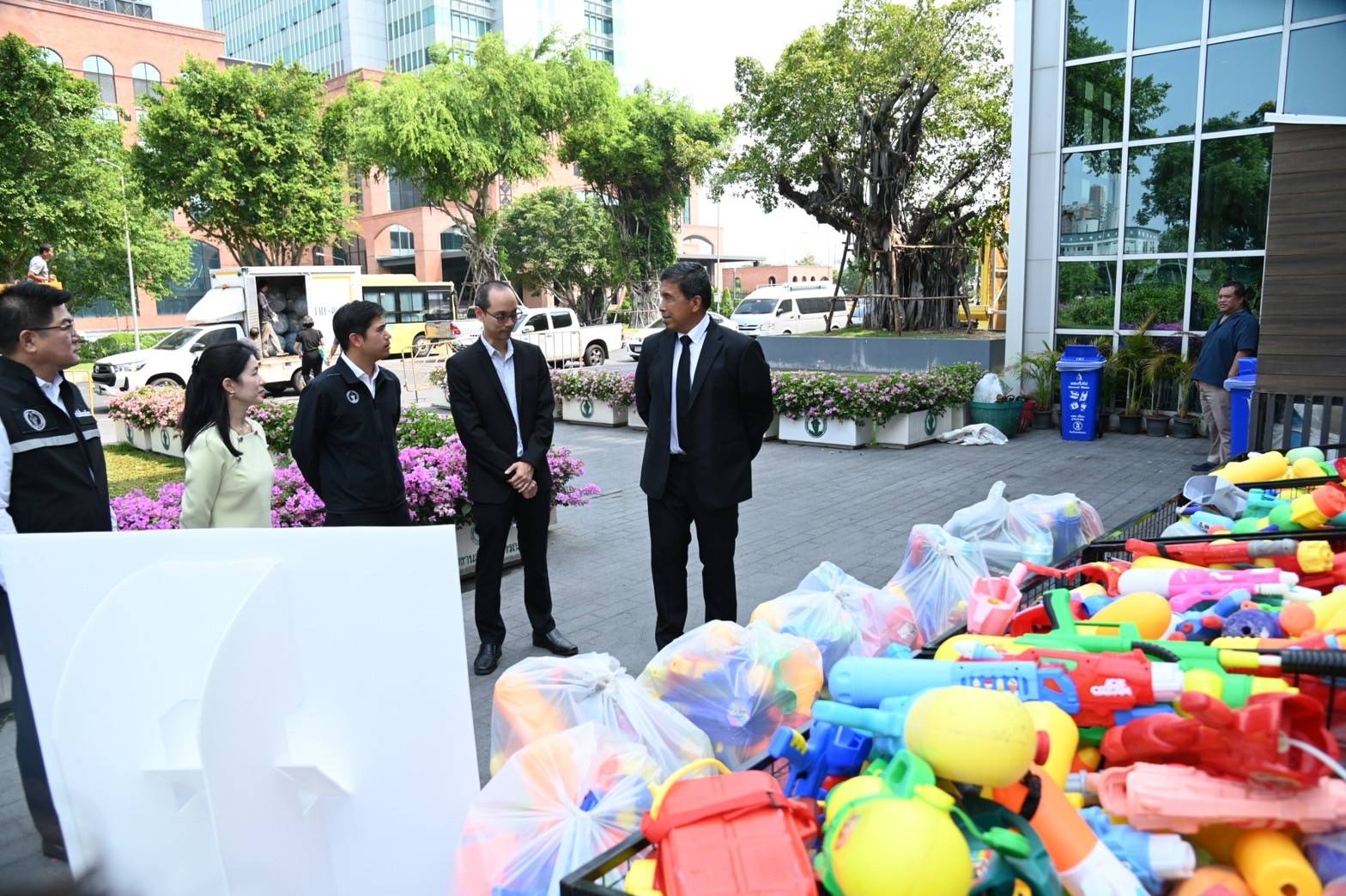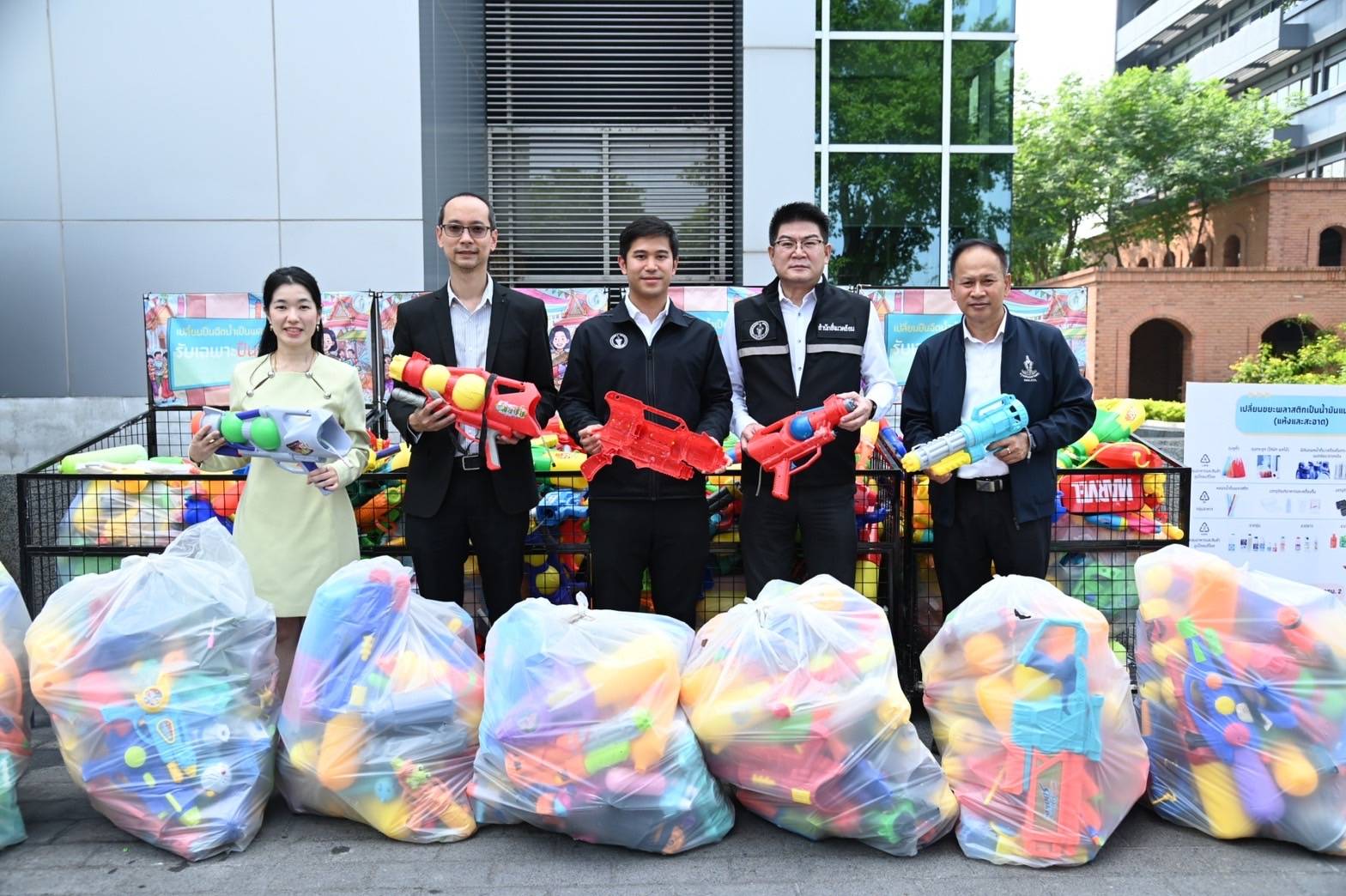ทั้งนี้ ในช่วงเทศกาลสงกรานต์ที่ผ่านมา กรุงเทพมหานคร ได้เชิญชวนประชาชนร่วมลดขยะพลาสติกประเภทปืนฉีดน้ำ โดยส่งต่อปืนฉีดน้ำพลาสติกทุกประเภท ทั้งของเก่าและของใหม่ หรือที่ไม่ต้องการใช้งานแล้ว ณ จุดรับมอบปืนฉีดน้ำพลาสติกภายในสถานที่จัดงานเทศกาลสงกรานต์ 2569 จำนวน 9 แห่ง ได้แก่ 1. ถนนสีลม เขตบางรัก 2. ถนนข้าวสาร เขตพระนคร 3. สวนเบญจกิติ เขตคลองเตย 4. ไอคอนสยาม (River Park ชั้น G) เขตคลองสาน 5. เซ็นทรัลเวิลด์ บริเวณลานหน้า CTW & Central Park เขตปทุมวัน 6. EMSPHERE บริเวณลานด้านหน้าอาคารเอ็มสเฟียร์ เขตคลองเตย 7. เดอะมอลล์ ท่าพระ บริเวณทางเข้าห้างชั้น B G และสะพานลอยชั้น 1 เขตธนบุรี 8. เซ็นทรัลพาร์ค เขตบางรัก บริเวณลานหน้าเซ็นทรัลพาร์ค และ 9. เดอะมอลล์ บางกะปิ จำนวน 2 จุด จุดที่ 1 ประตูทางเข้าหน้าสาขา ชั้น G (KFC) และจุดที่ 2 ประตูทางเข้าหน้าสาขา ชั้น G (STARBUCKS) โดยกรุงเทพมหานครสามารถรวบรวมปืนฉีดน้ำพลาสติกได้ จำนวน 985 กระบอก น้ำหนักรวม 335 กิโลกรัม ส่งมอบให้แก่ บริษัท เอสซีจี เคมิคอลส์ จำกัด (มหาชน) หรือ SCGC เพื่อนำเข้าสู่กระบวนการผลิตเป็นน้ำมันแนฟทา (Naphtha) โดยใช้เทคโนโลยีรีไซเคิลขั้นสูง เปลี่ยนพลาสติกผสมหรือพลาสติกที่ยากต่อการรีไซเคิลด้วยวิธีปกติ เป็นสารตั้งต้นในการผลิตเม็ดพลาสติกและขึ้นรูปเป็นผลิตภัณฑ์ใหม่ อาทิ บรรจุภัณฑ์ Food Grade เก้าอี้ ภาชนะใส่ของ กระถางต้นไม้ เส้นใยเสื้อผ้า รวมถึงชิ้นส่วนพลาสติกต่าง ๆ ถือเป็นก้าวสำคัญในการร่วมกันเปลี่ยนพลาสติกจากปืนฉีดน้ำ เป็นพลังงานสร้างสงกรานต์รักษ์โลก