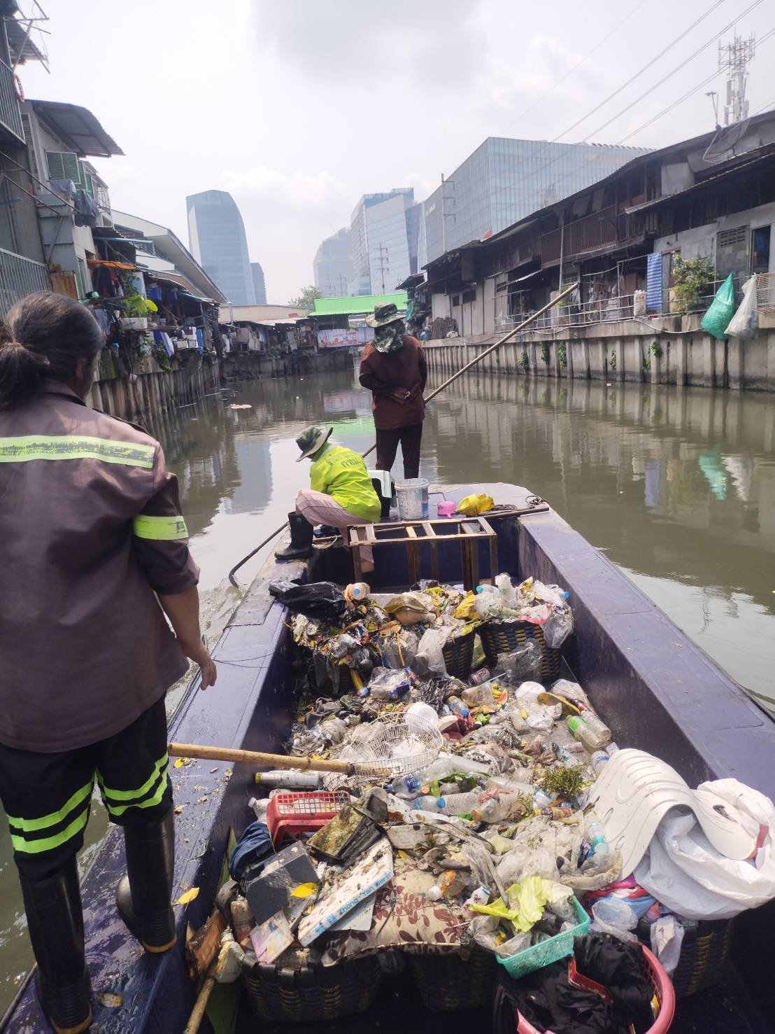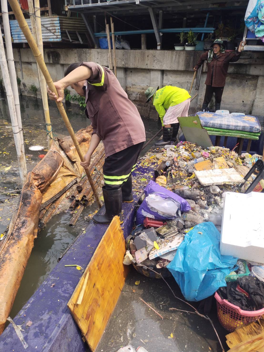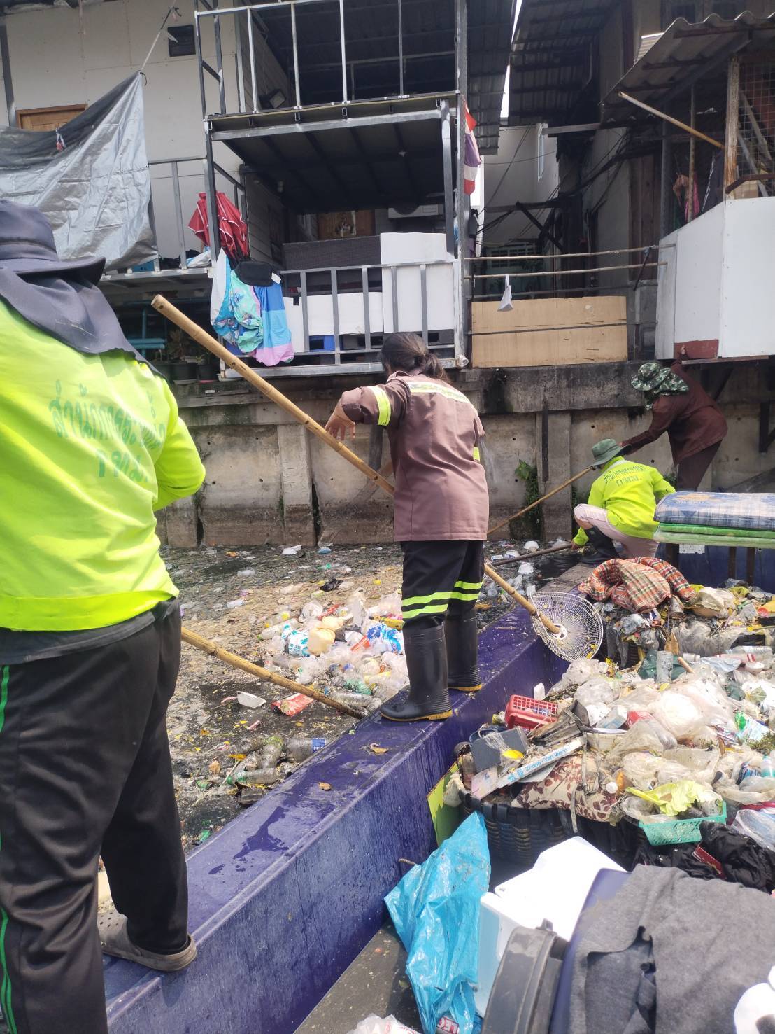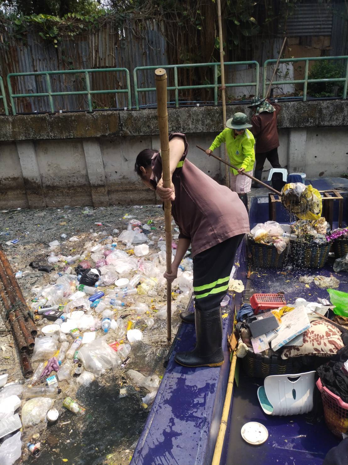 เจ้าหน้าที่ ตักขยะและวัชพืชคลองเตย(คลองหัวลำโพง)ช่วงสถานีสูบน้ำคลองเตยถึงตลาดคลองเตย พื้นที่เขตคลองเตย