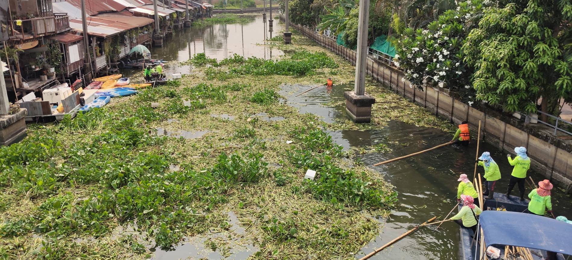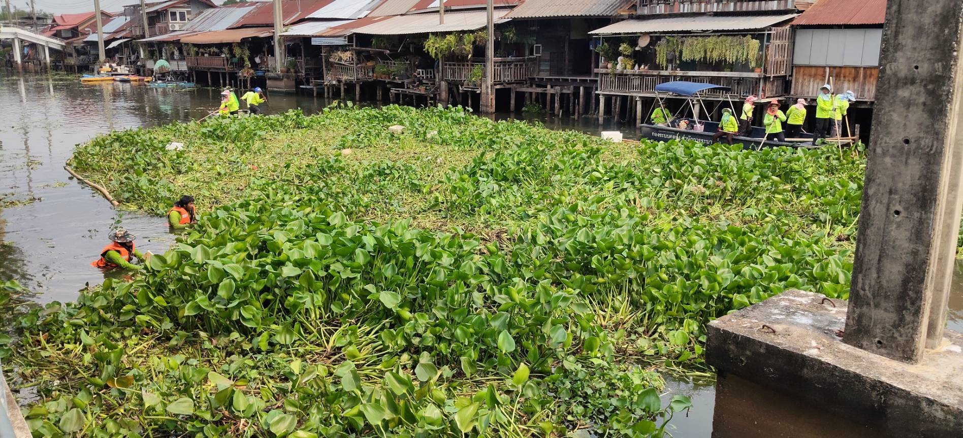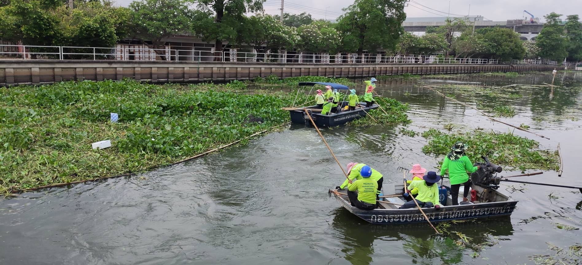 เจ้าหน้าที่ จัดเก็บขยะวัชพืชคลองประเวศบุรีรมย์ บริเวณตลาดเก่าหัวตะเข้ถึงแยกคลองลำปลาทิว พื้นที่เขตลาดกระบัง