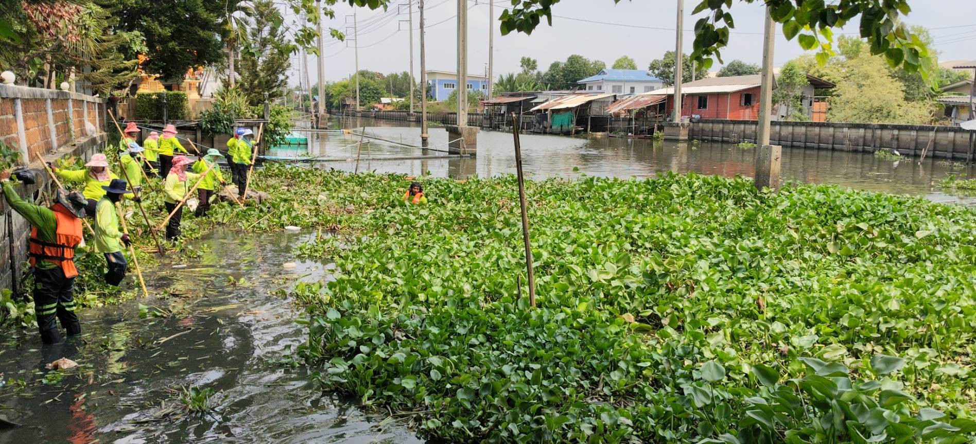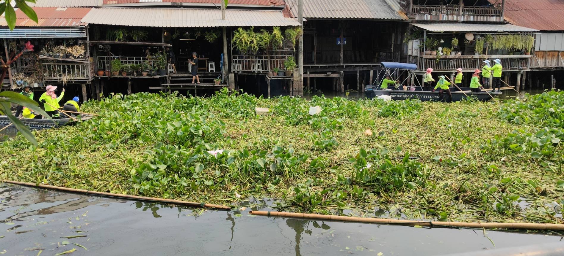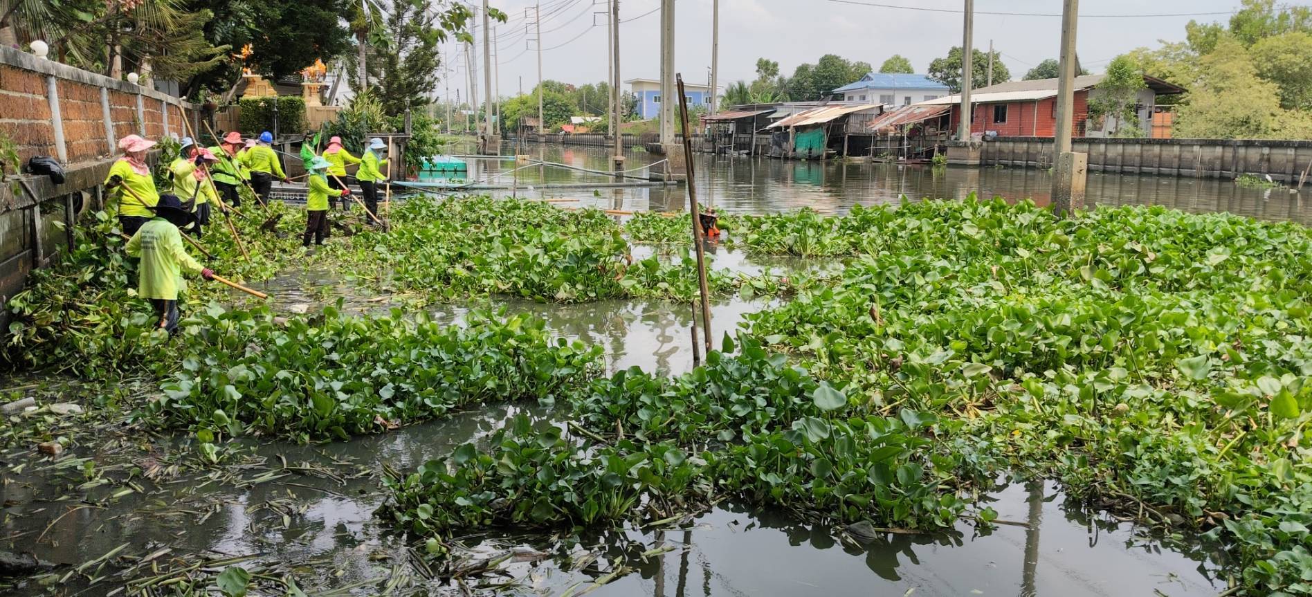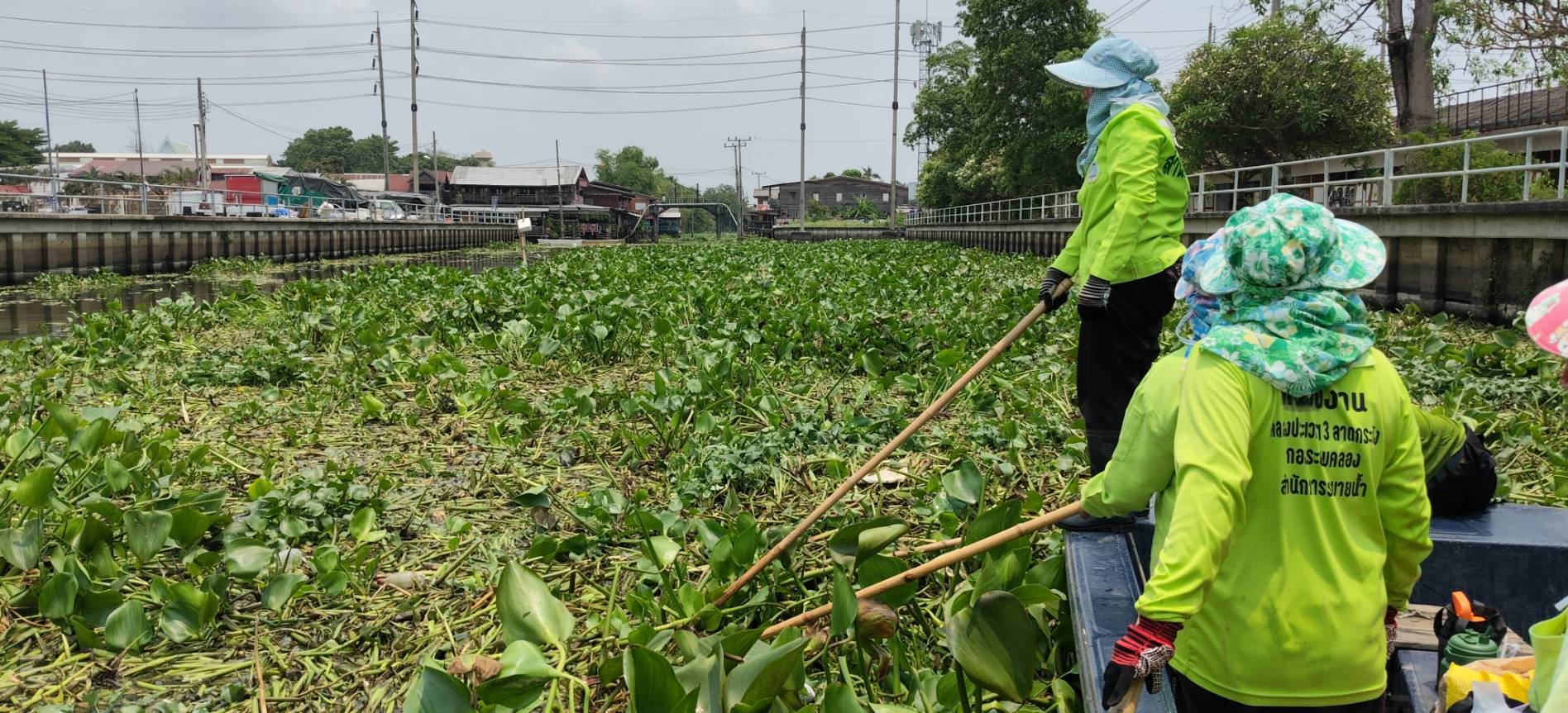 เจ้าหน้าที่ จัดเก็บขยะวัชพืชคลองประเวศบุรีรมย์ บริเวณตลาดเก่าหัวตะเข้ถึงแยกคลองลำปลาทิว พื้นที่เขตลาดกระบัง