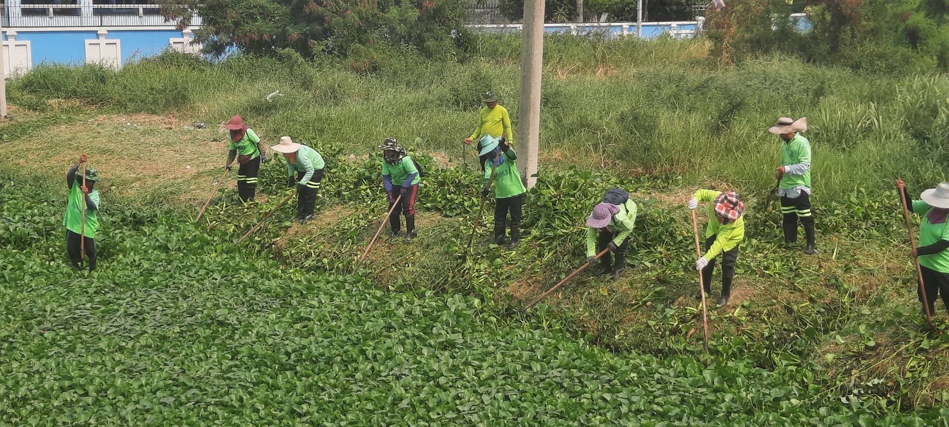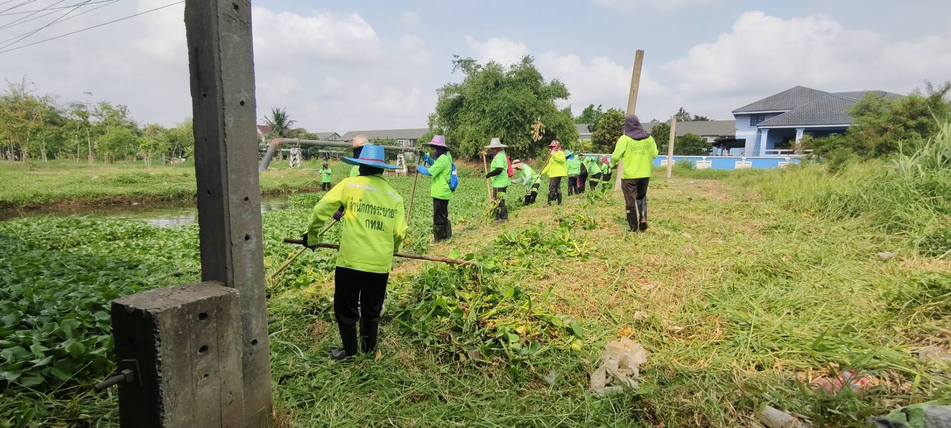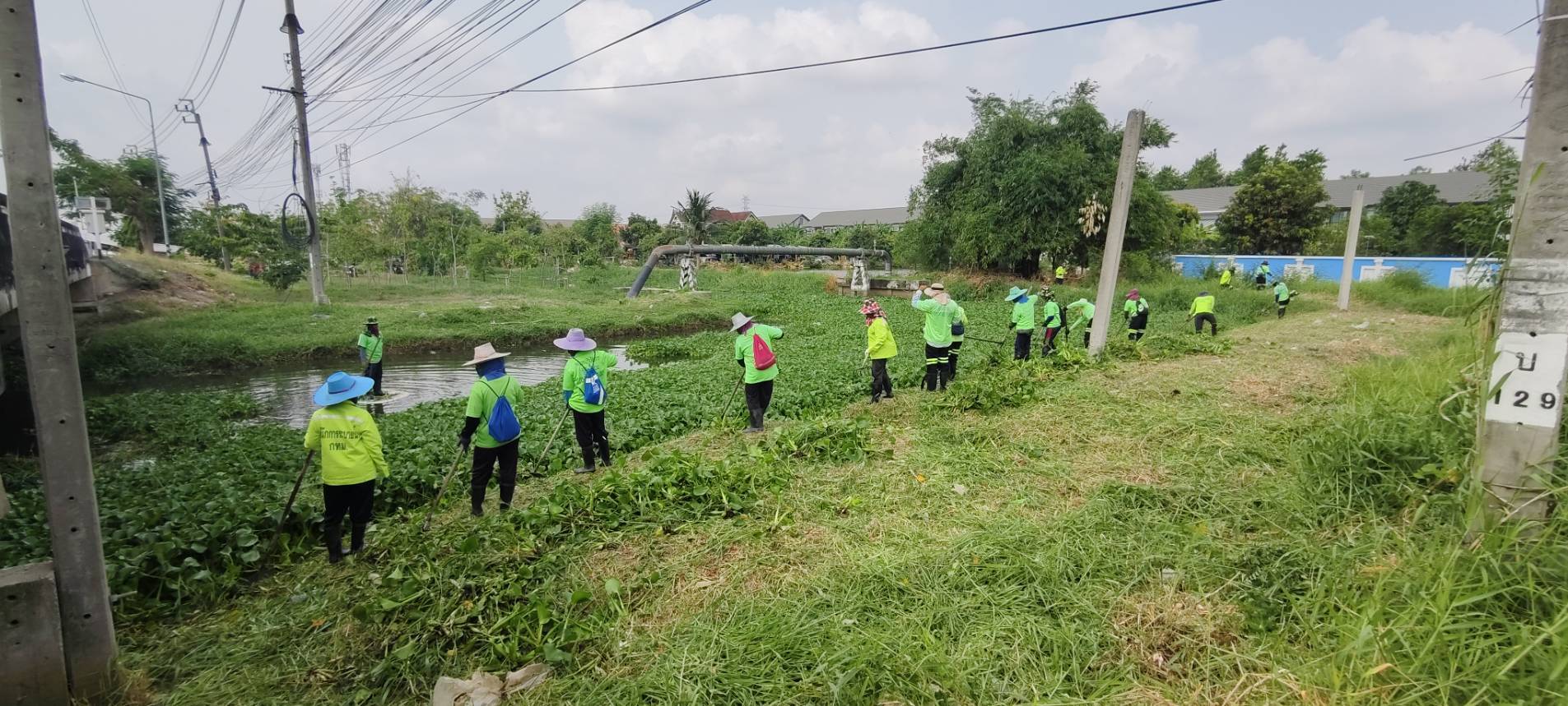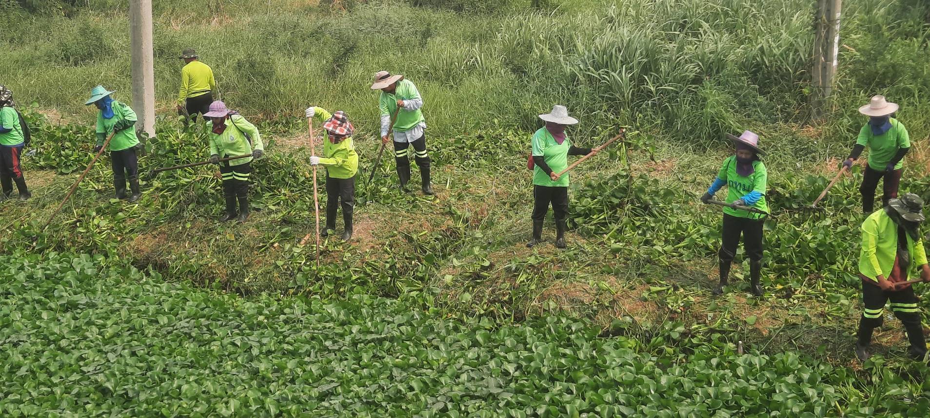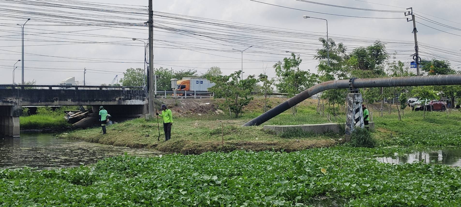เจ้าหน้าที่ เก็บวัชพืชและขยะคลองปักหลัก คู่ขนานมอเตอร์เวย์ (ถนนกาญจนาภิเษก)ฝั่งตะวันตก พื้นที่เขตประเวศ