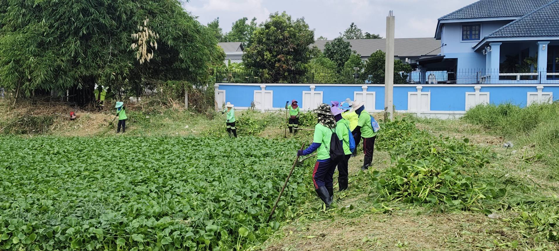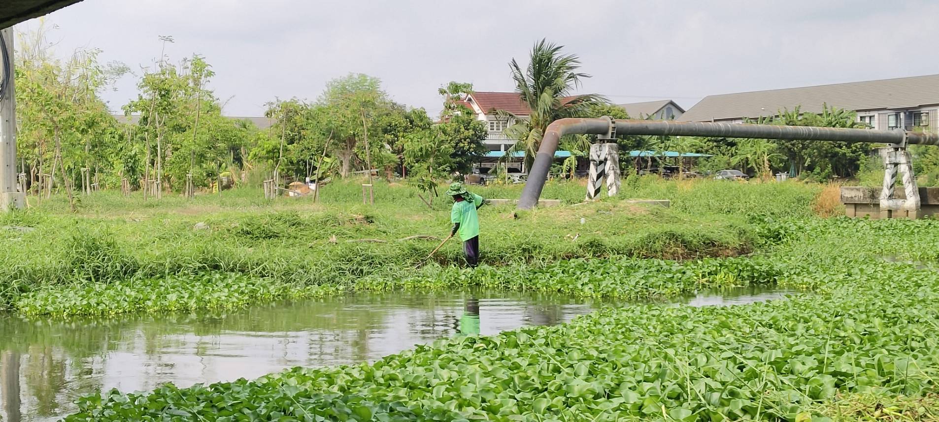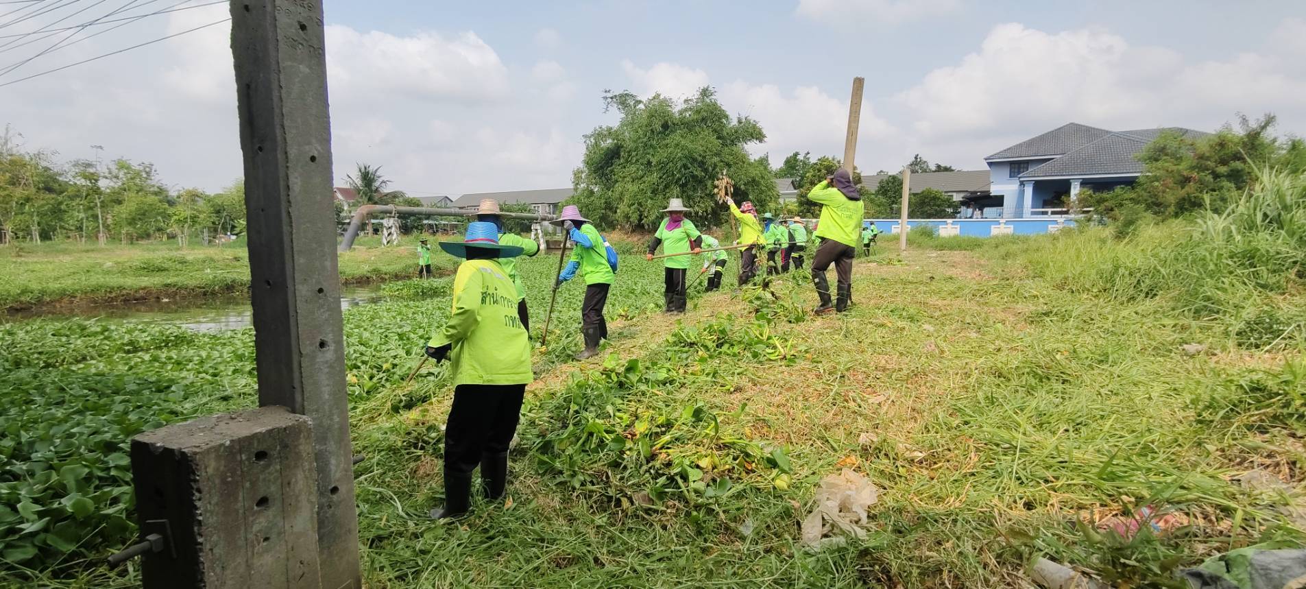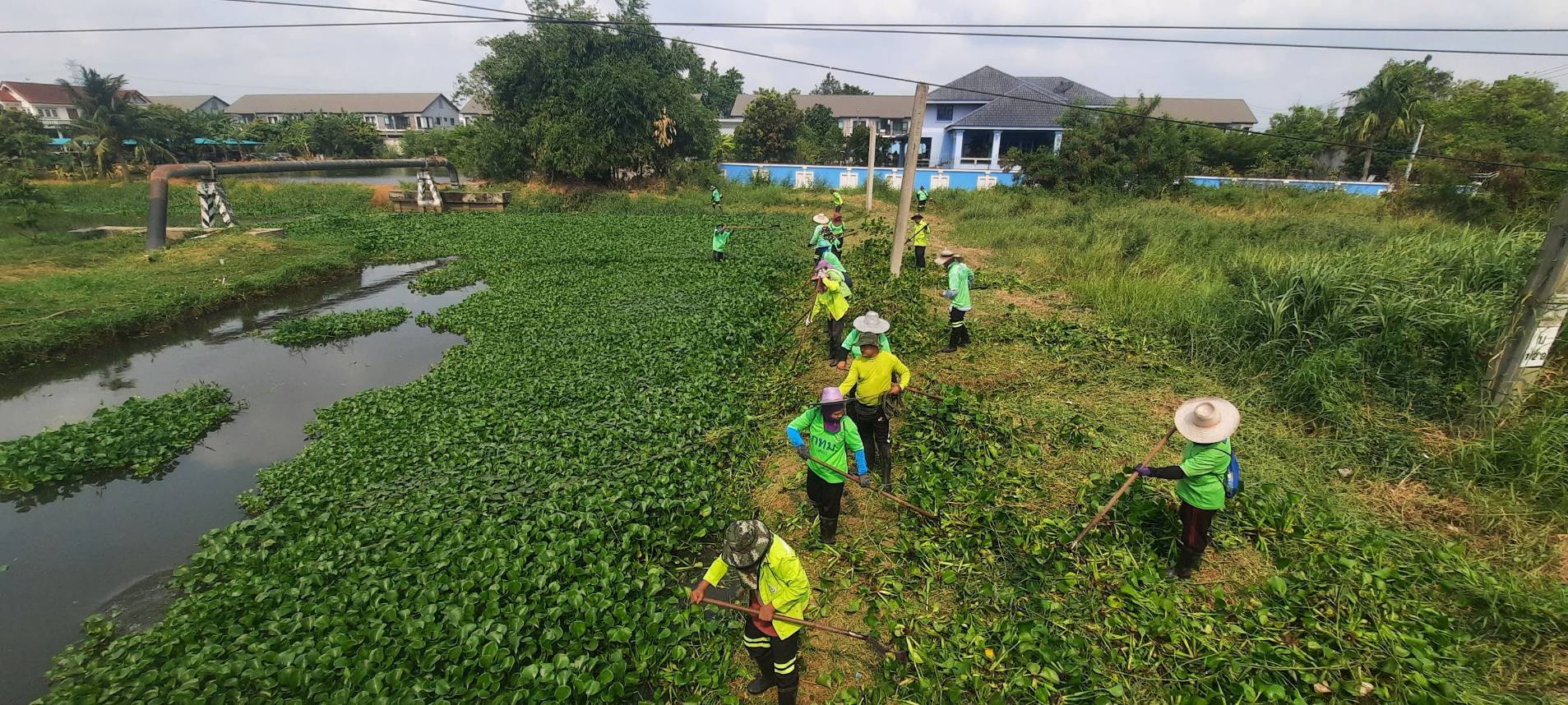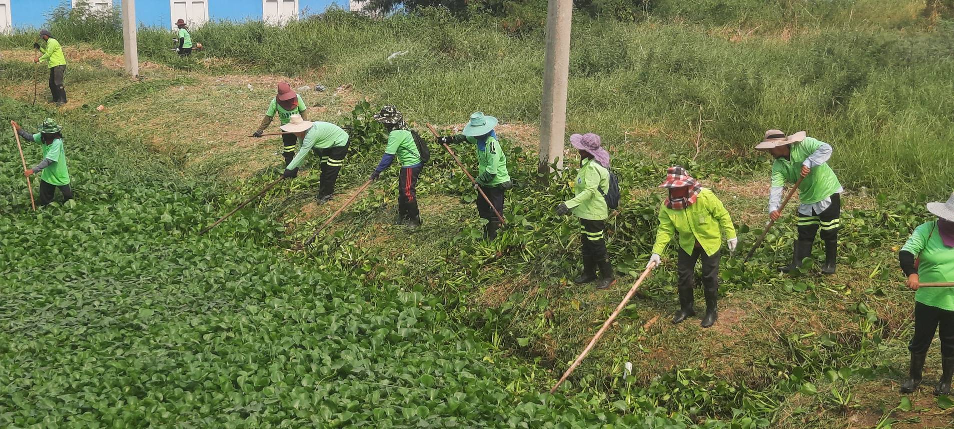 เจ้าหน้าที่ เก็บวัชพืชและขยะคลองปักหลัก คู่ขนานมอเตอร์เวย์ (ถนนกาญจนาภิเษก)ฝั่งตะวันตก พื้นที่เขตประเวศ
