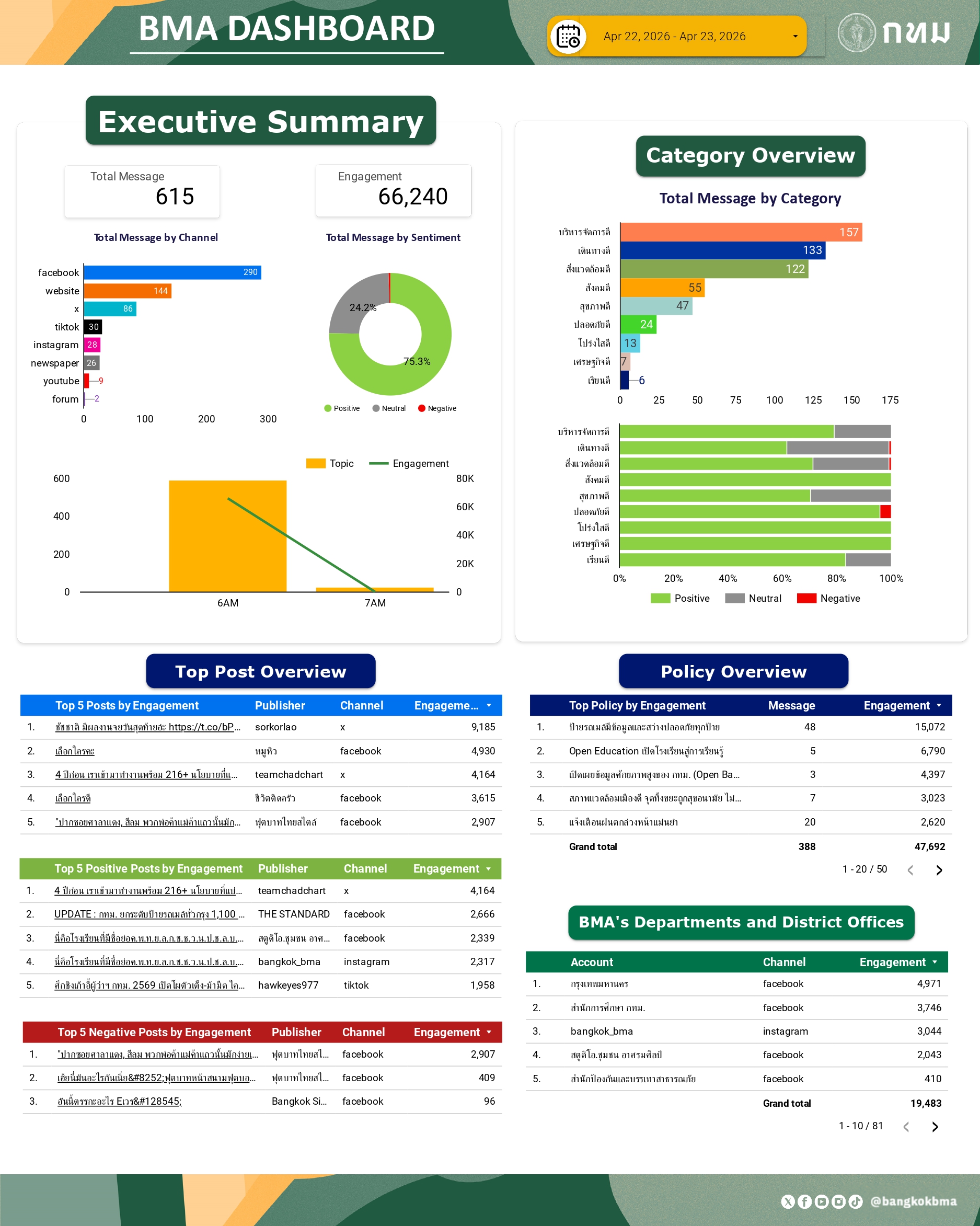 ภาพรวมการกล่าวถึงกรุงเทพมหานครในสื่อออนไลน์ วันที่ 23 เม.ย. 69