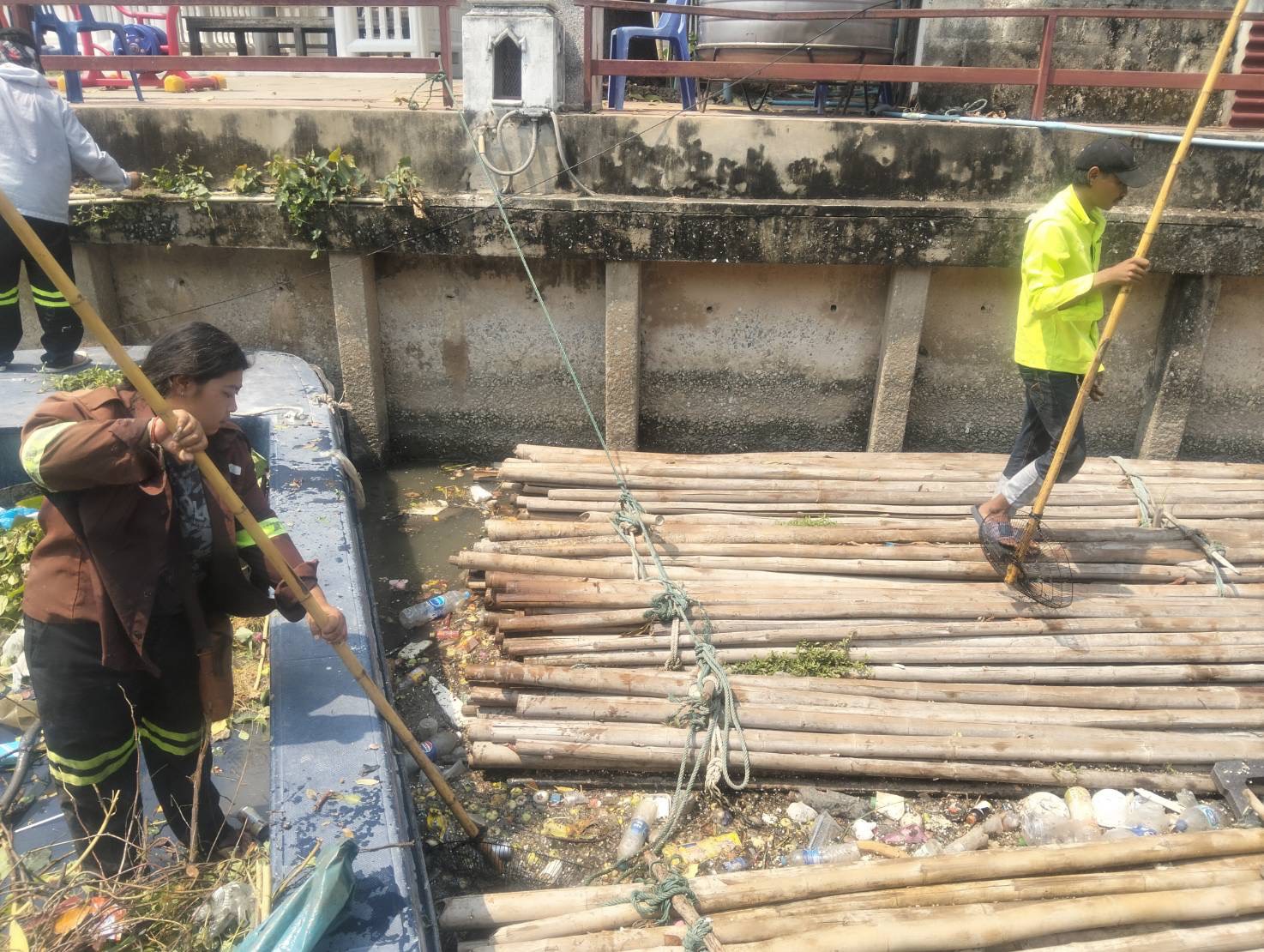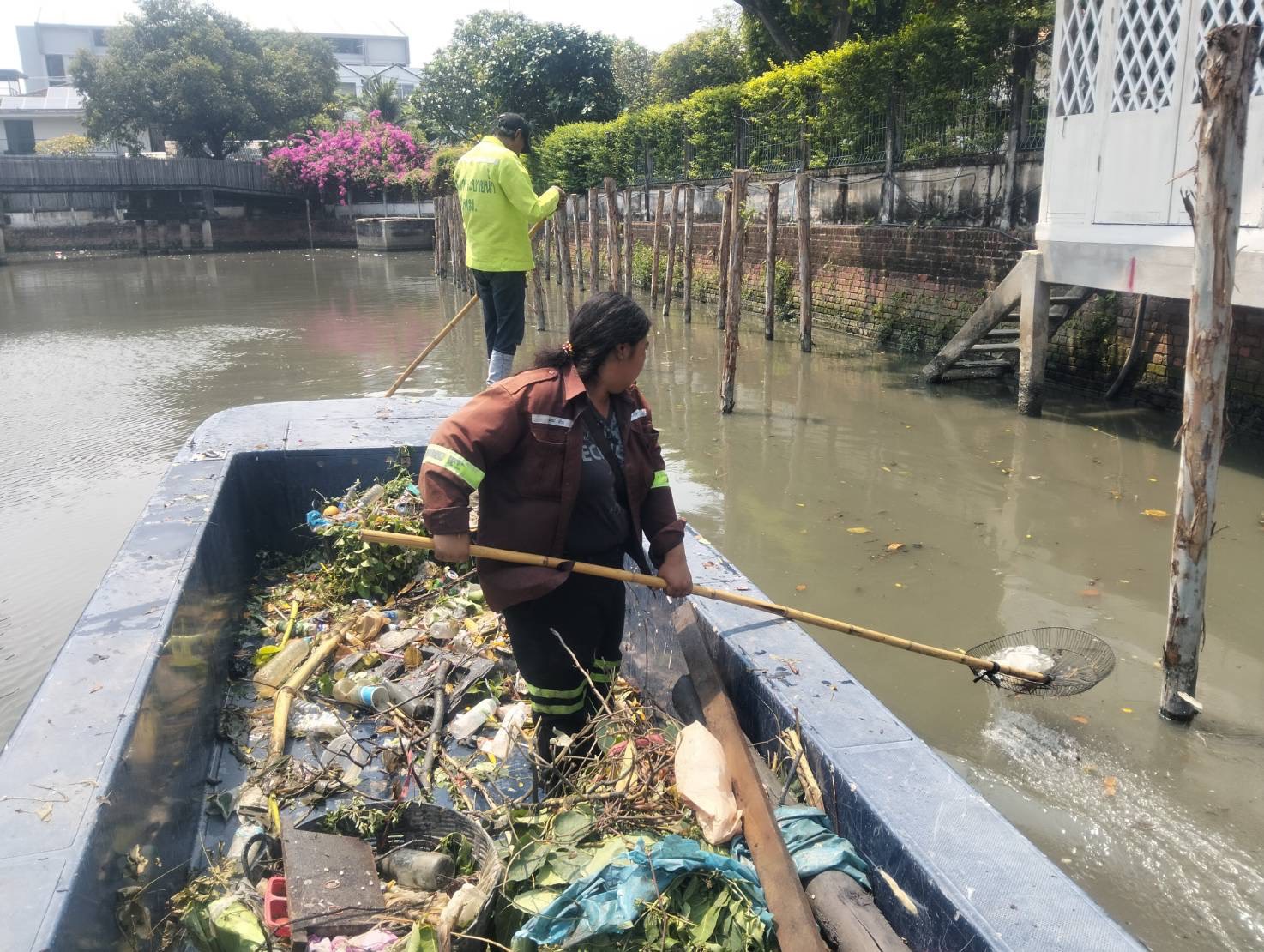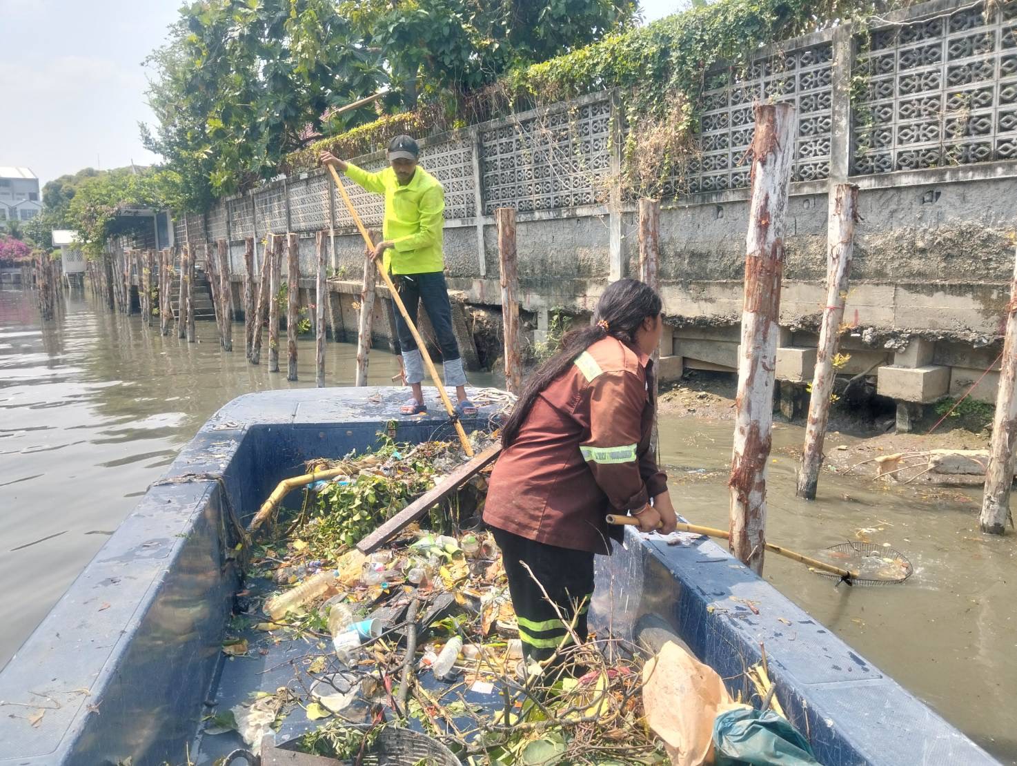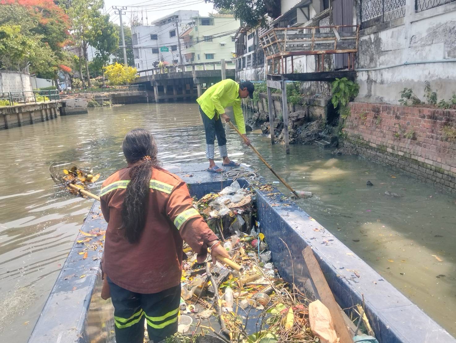เจ้าหน้าที่ เก็บขยะและวัชพืชคลองสามเสน-คลองเปรมประชากร พื้นที่เขตดุสิต