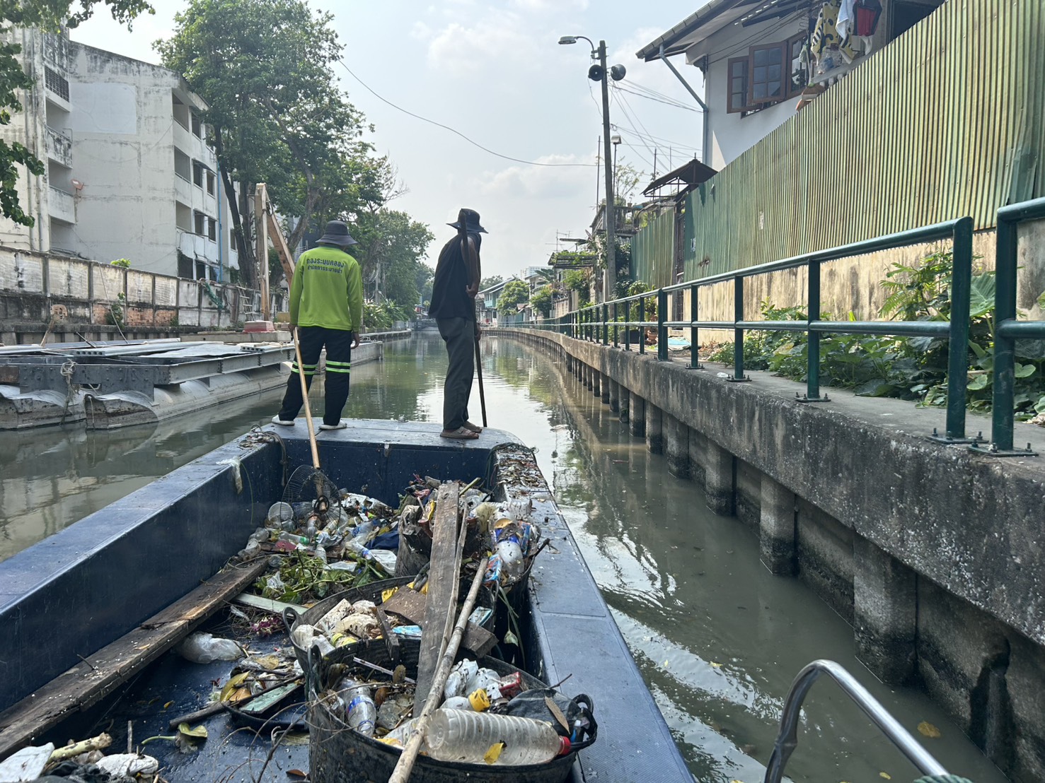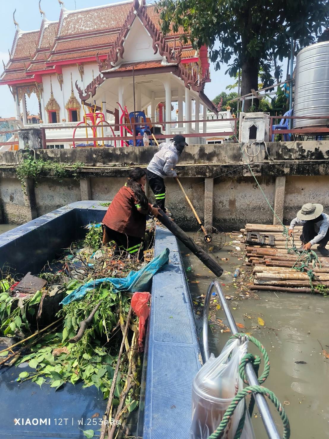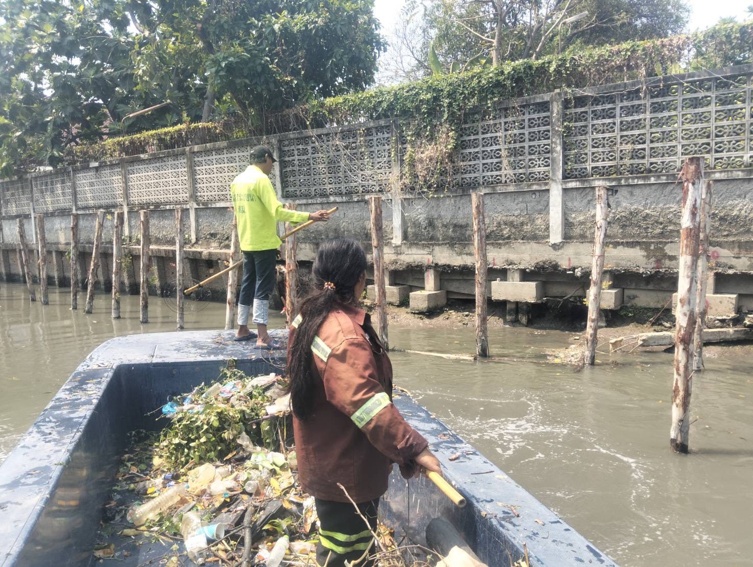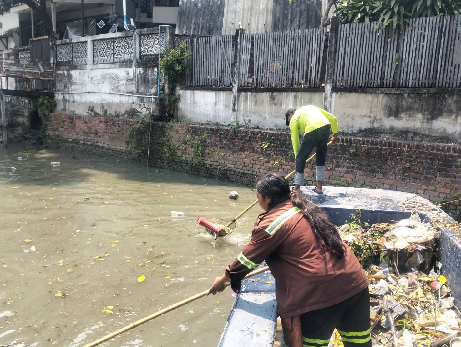 เจ้าหน้าที่ เก็บขยะและวัชพืชคลองสามเสน-คลองเปรมประชากร พื้นที่เขตดุสิต