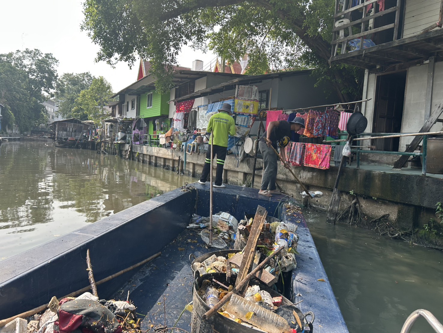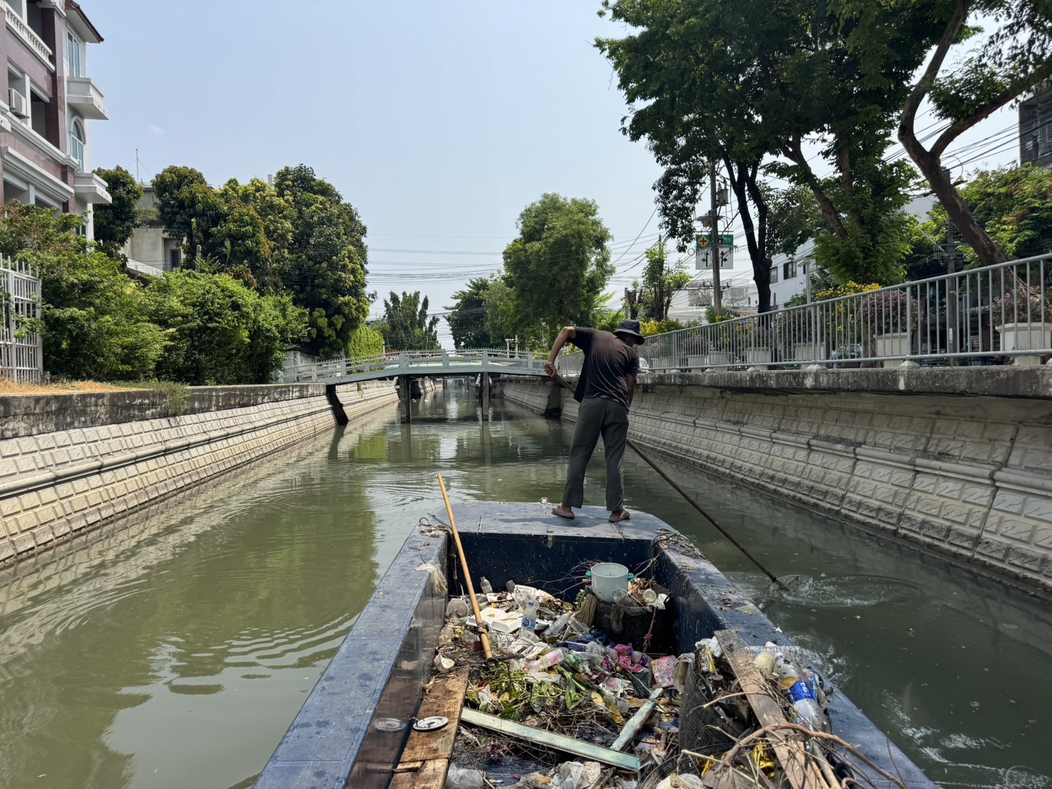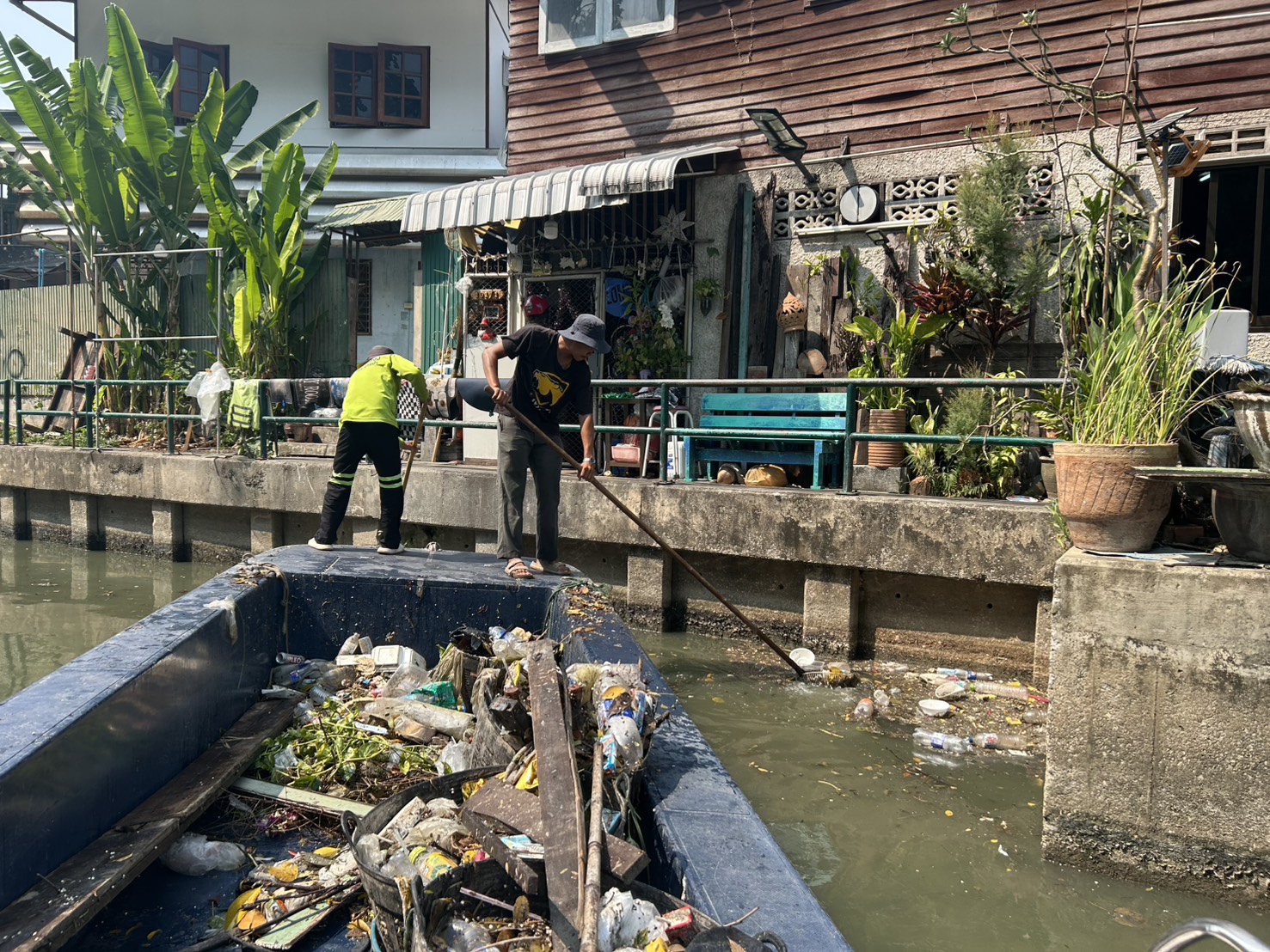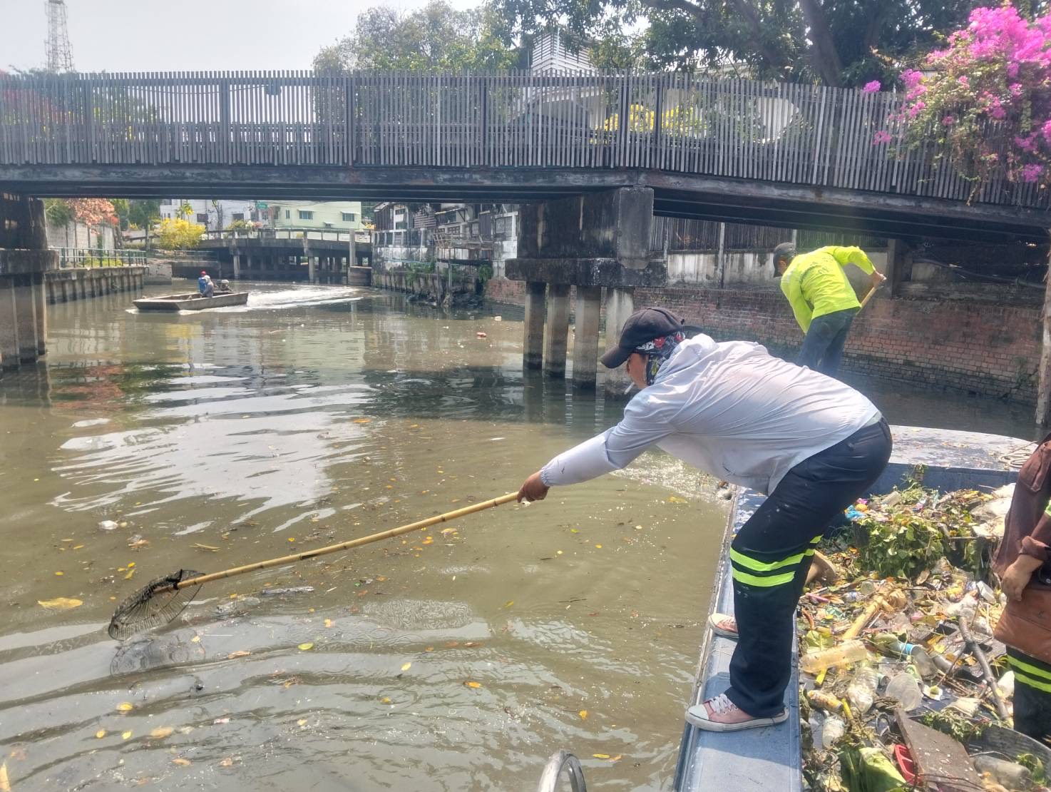 เจ้าหน้าที่ เก็บขยะและวัชพืชคลองสามเสน-คลองเปรมประชากร พื้นที่เขตดุสิต