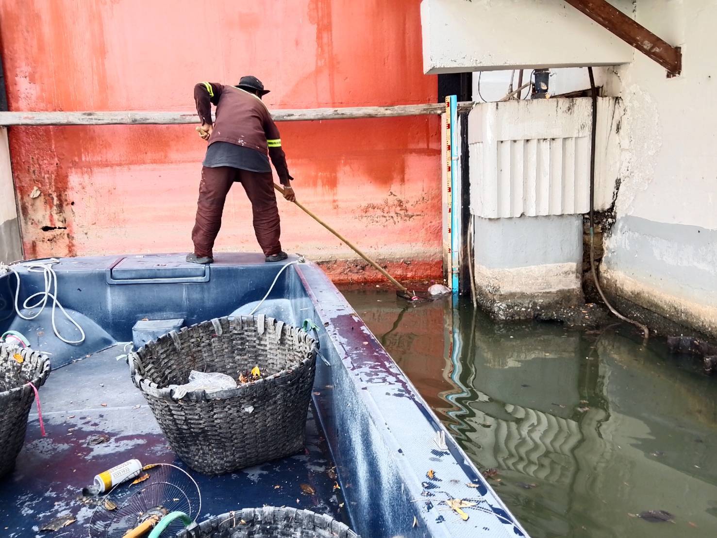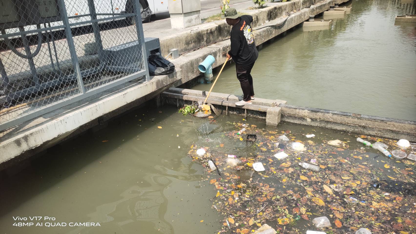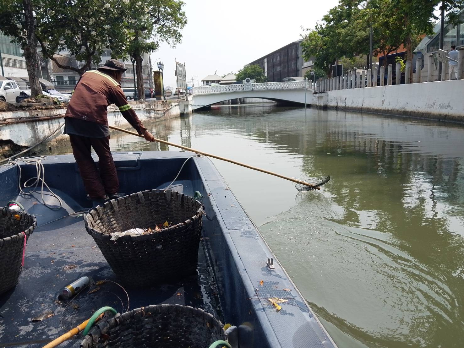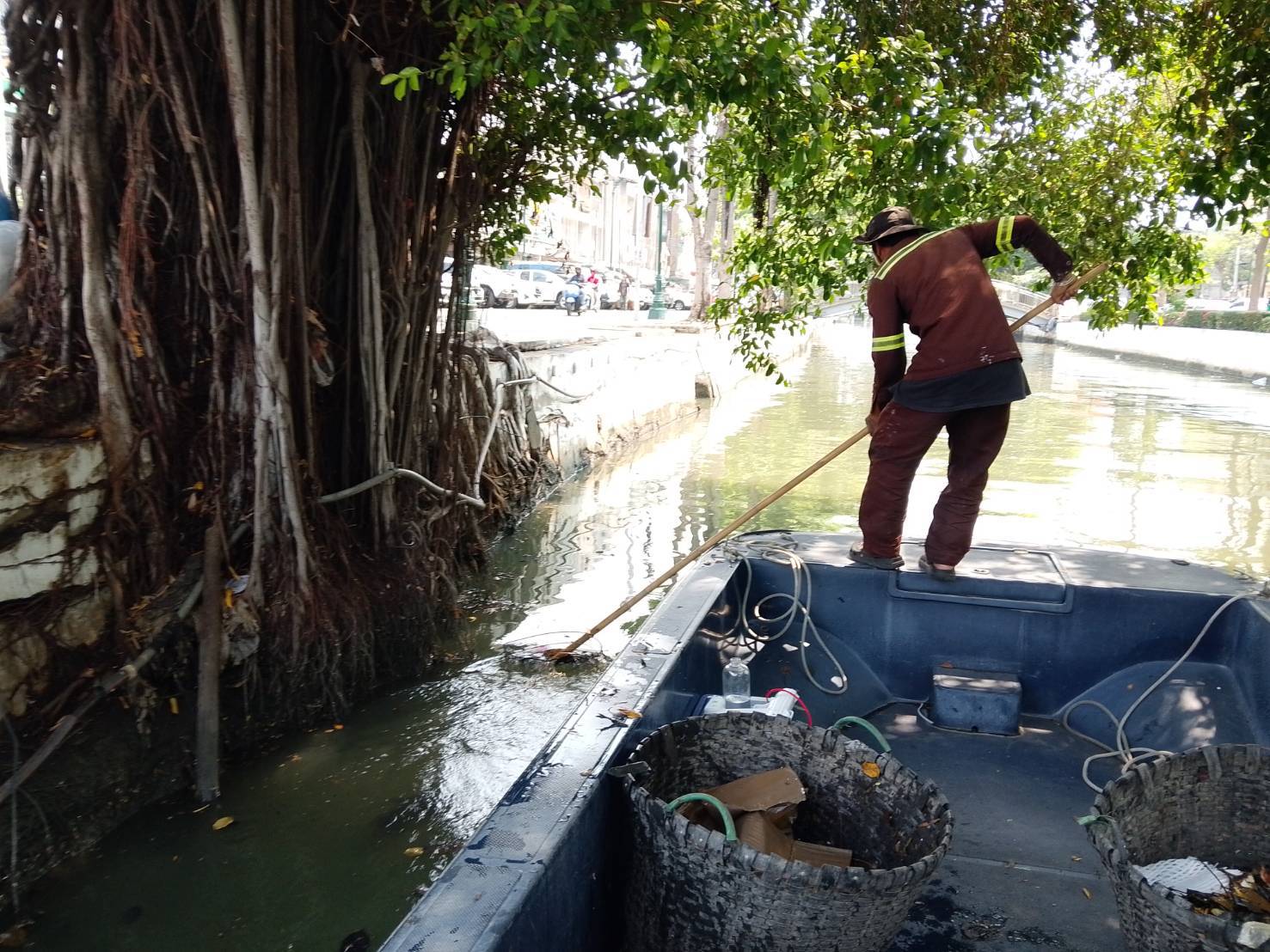 เจ้าหน้าที่ เก็บขยะในคลองคูเมืองเดิม-คลองวัดเทพธิดาราม-คลองวัดราชบพิธ พื้นที่เขตพระนคร ช่วงบ่ายเวลา15.30.น.