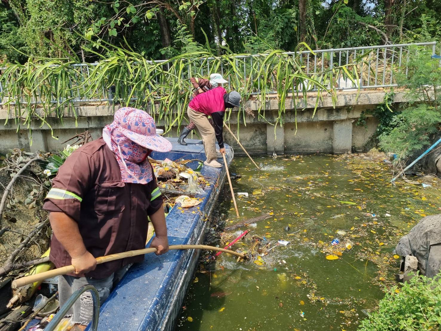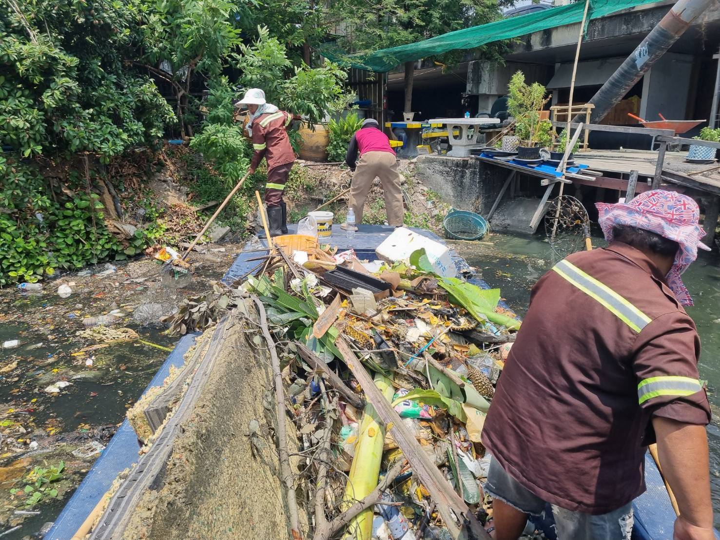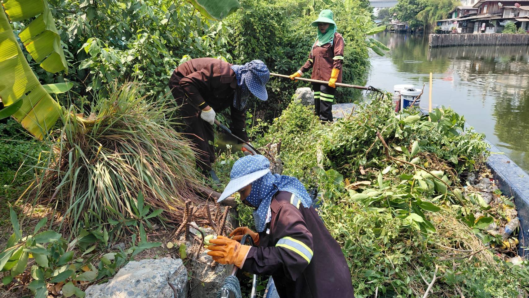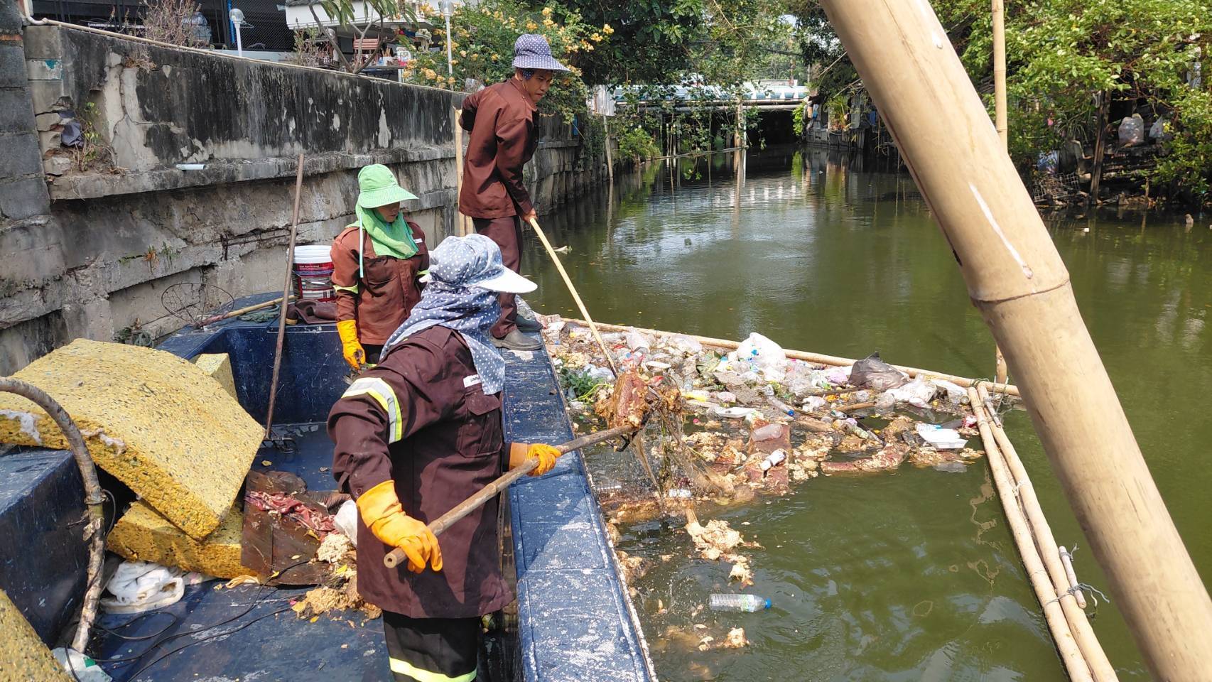 เจ้าหน้าที่ เก็บขยะและวัชพืชคลองลาดพร้าว-คลองบางซื่อ เขต วังทองหลาง เขตห้วยขวาง