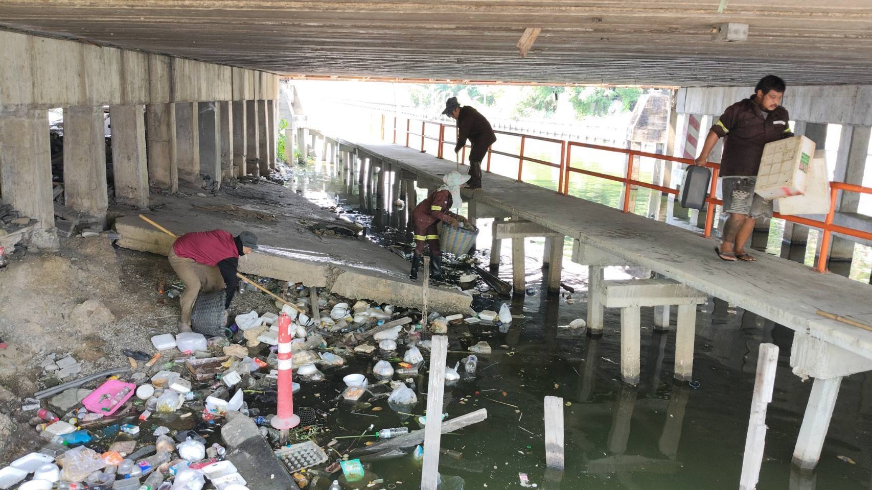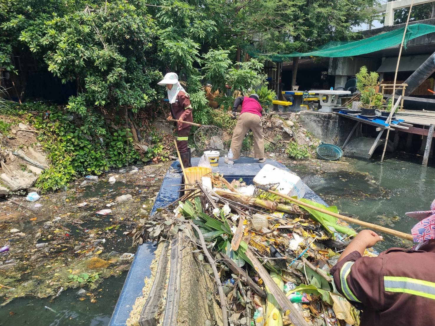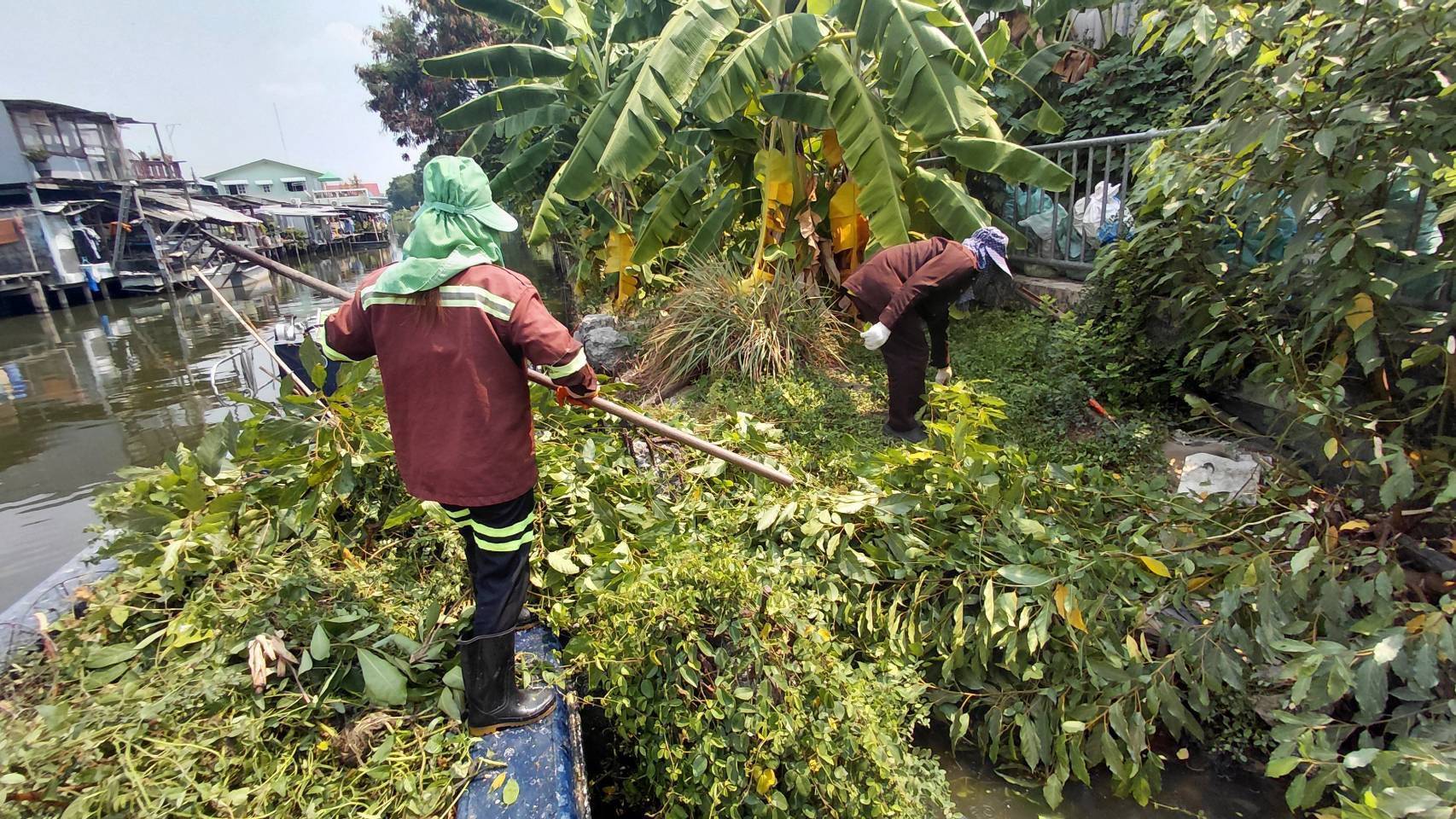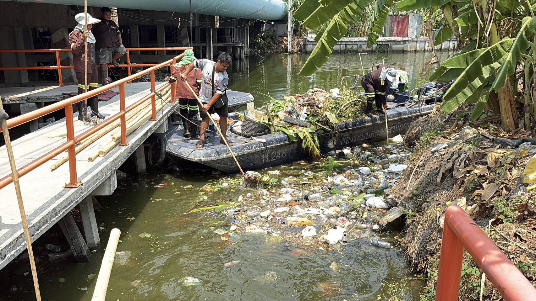 เจ้าหน้าที่ เก็บขยะและวัชพืชคลองลาดพร้าว-คลองบางซื่อ เขต วังทองหลาง เขตห้วยขวาง