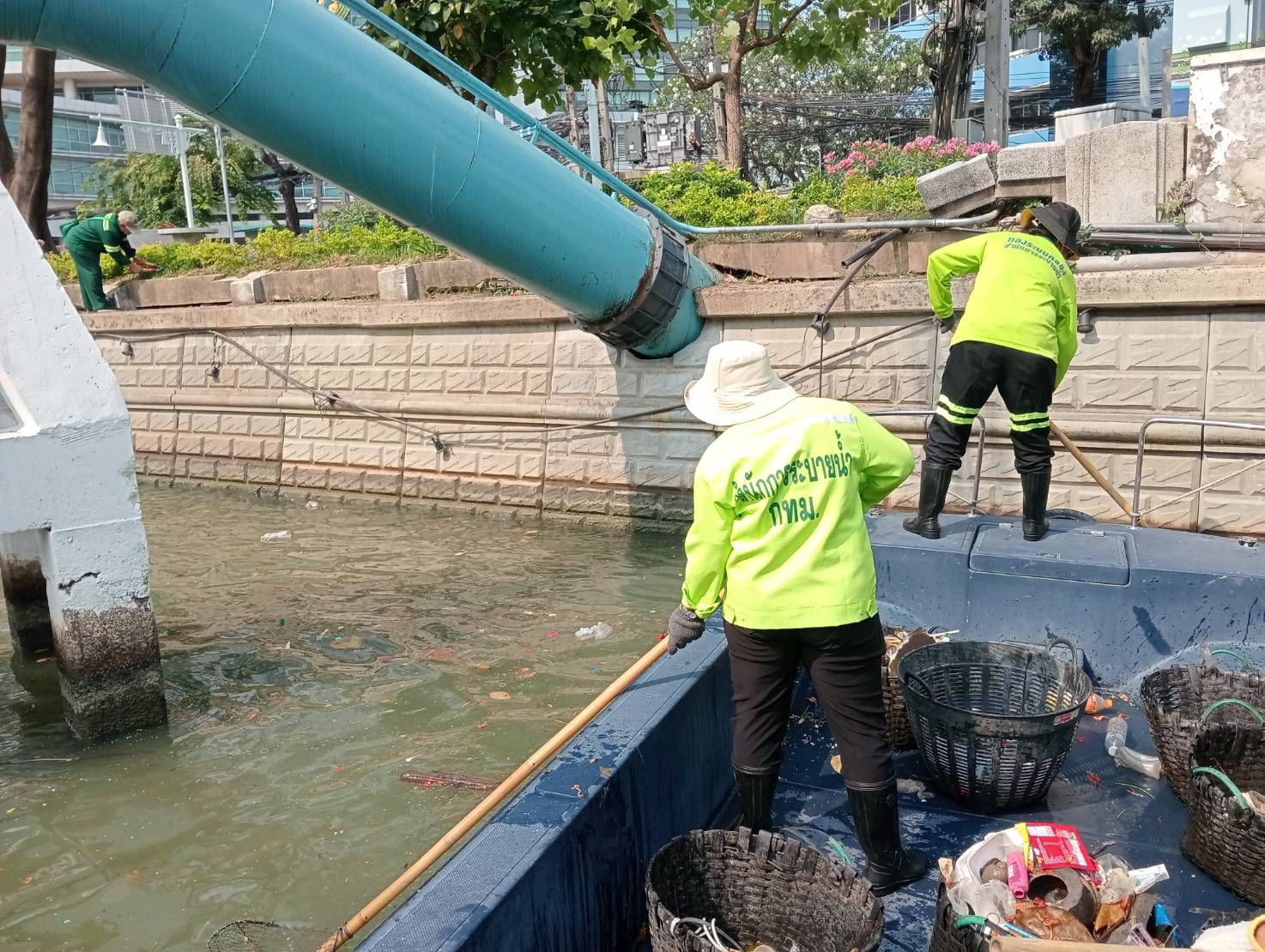เจ้าหน้าที่ ตักขยะและวัชพืชคลองเตย(คลองหัวลำโพง)ช่วงสถานีสูบน้ำคลองเตย ถึงตลาดคลองเตย พื้นที่เขตคลองเตย 23 เมษายน 2026