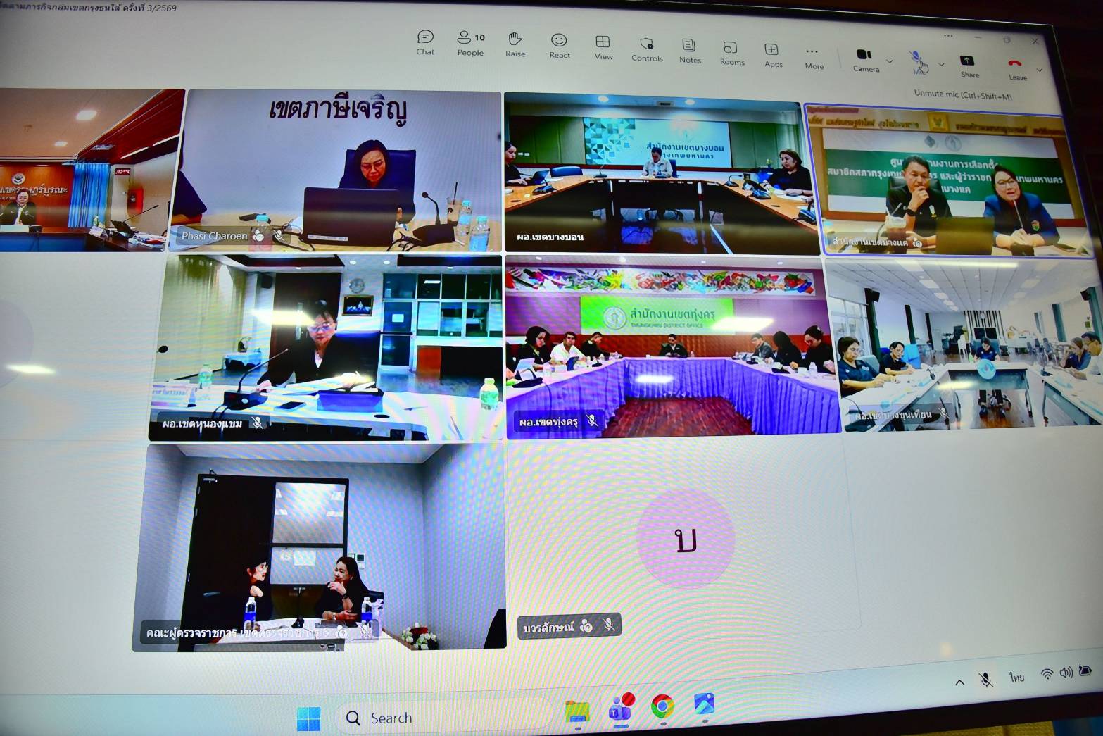 (23 เม.ย. 69) เวลา 13.30 น. นางสาวอรัญญา พรไชยะ รองปลัดกรุงเทพมหานคร ประชุมกำกับและติดตามภารกิจกลุ่มเขตกรุงธนใต้ ครั้งที่ 3/2569 โดยมี คณะผู้บริหาร ข้าราชการ และเจ้าหน้าที่กลุ่มเขตกรุงธนใต้ จำนวน 7 เขต ประกอบด้วย เขตภาษีเจริญ เขตบางแค เขตหนองแขม เขตบางขุนเทียน เขตบางบอน เขตราษฎร์บูรณะ และเขตทุ่งครุ ร่วมประชุม ณ ห้องประชุมรักษ์เจ้าพระยา 2 ชั้น 7 อาคารสำนักงานเขตราษฎร์บูรณะ และผ่านระบบออนไลน์
