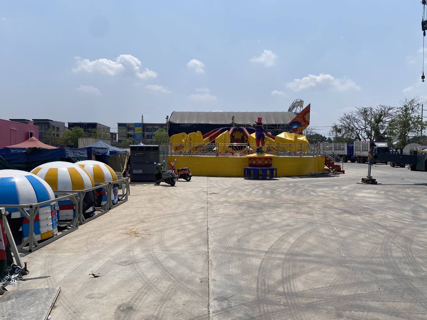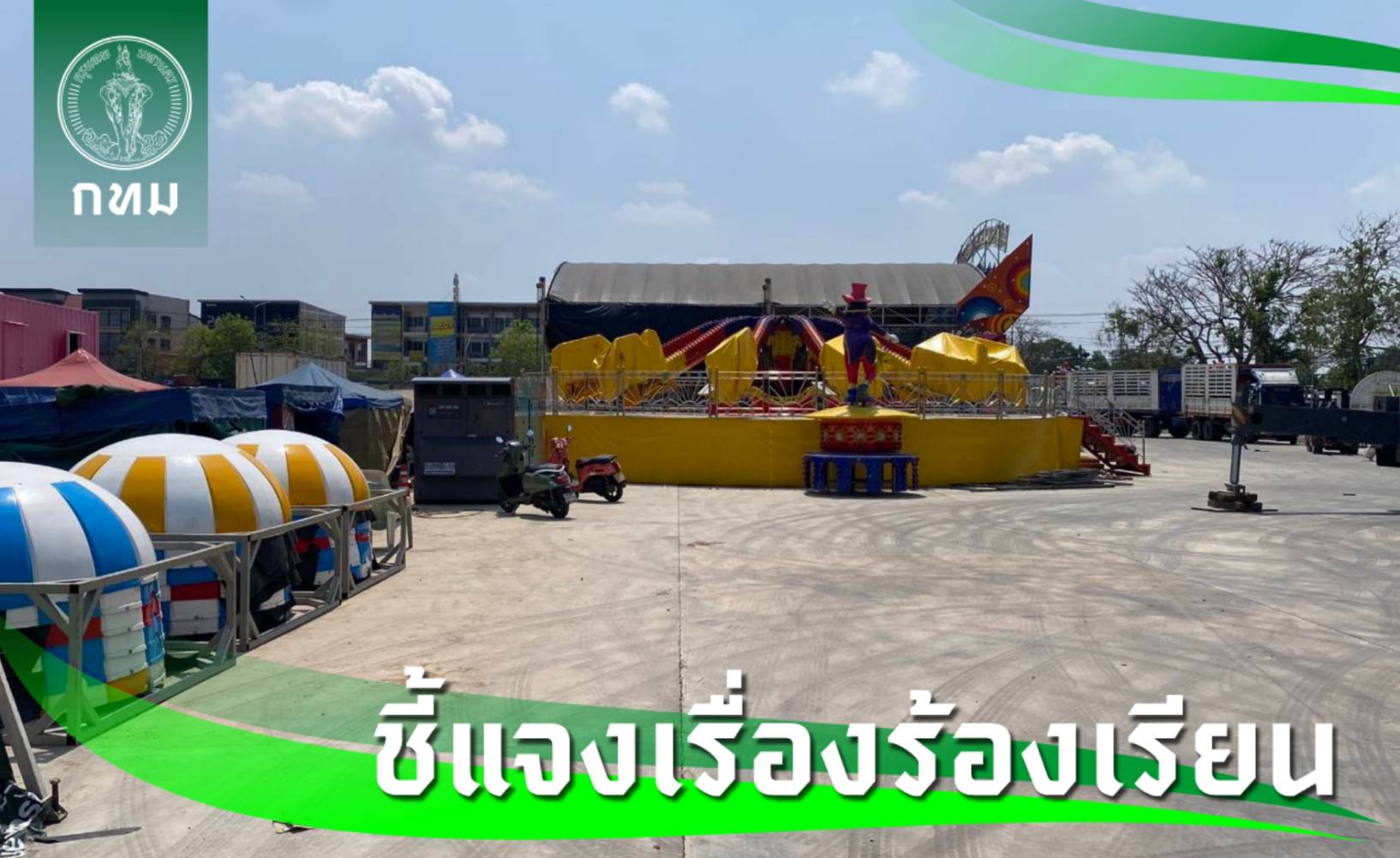 ในส่วนประเด็นความปลอดภัยของสิ่งก่อสร้างชั่วคราว เช่น สวนสนุกและเต็นท์โดมขนาดใหญ่ สำนักงานเขตฯ ได้ตรวจสอบพบว่า สถานที่ดังกล่าวอยู่ในขั้นตอนการเตรียมการและยังไม่ได้เปิดให้บริการ โดยได้เตรียมดำเนินการตาม พ.ร.บ.ควบคุมอาคาร พ.ศ. 2522 อย่างเคร่งครัด ทั้งในส่วนของการพิสูจน์สิทธิ์ ซึ่งอยู่ระหว่างตรวจสอบกรรมสิทธิ์ที่ดินเพื่อระบุตัวเจ้าของและผู้ครอบครองอาคาร และการออกคำสั่งทางปกครอง โดยอยู่ระหว่างเตรียมออกหนังสือเรียกผู้ประกอบการให้นำเอกสารหลักฐานการขออนุญาตก่อสร้าง หรือดัดแปลงอาคาร รวมถึงใบอนุญาตประกอบกิจการเครื่องเล่นมาแสดง หากตรวจสอบในระบบ BMA OSS แล้วไม่พบการยื่นคำขออนุญาตที่ถูกต้อง จะมีคำสั่งทางปกครองให้ระงับการดำเนินการต่อไป ทั้งนี้ สำนักงานเขตฯ จะพิจารณาจากข้อเท็จจริงและเอกสารหลักฐานของผู้ประกอบการ โดยต้องเป็นไปตามมาตรฐานความปลอดภัยและหลักวิศวกรรม สำหรับโครงสร้างเต็นท์โดมและเครื่องเล่นสวนสนุกให้เป็นไปตามเกณฑ์ของ พ.ร.บ.ควบคุมอาคารฯ โดยผู้ประกอบการต้องแสดงเอกสารรับรองจากวิศวกรเครื่องกลและวิศวกรโยธาที่มีใบอนุญาตประกอบวิชาชีพ (กว.) รวมถึงต้องมีกรมธรรม์ประกันภัยบุคคลที่สาม เพื่อคุ้มครองประชาชนในกรณีเกิดอุบัติเหตุ