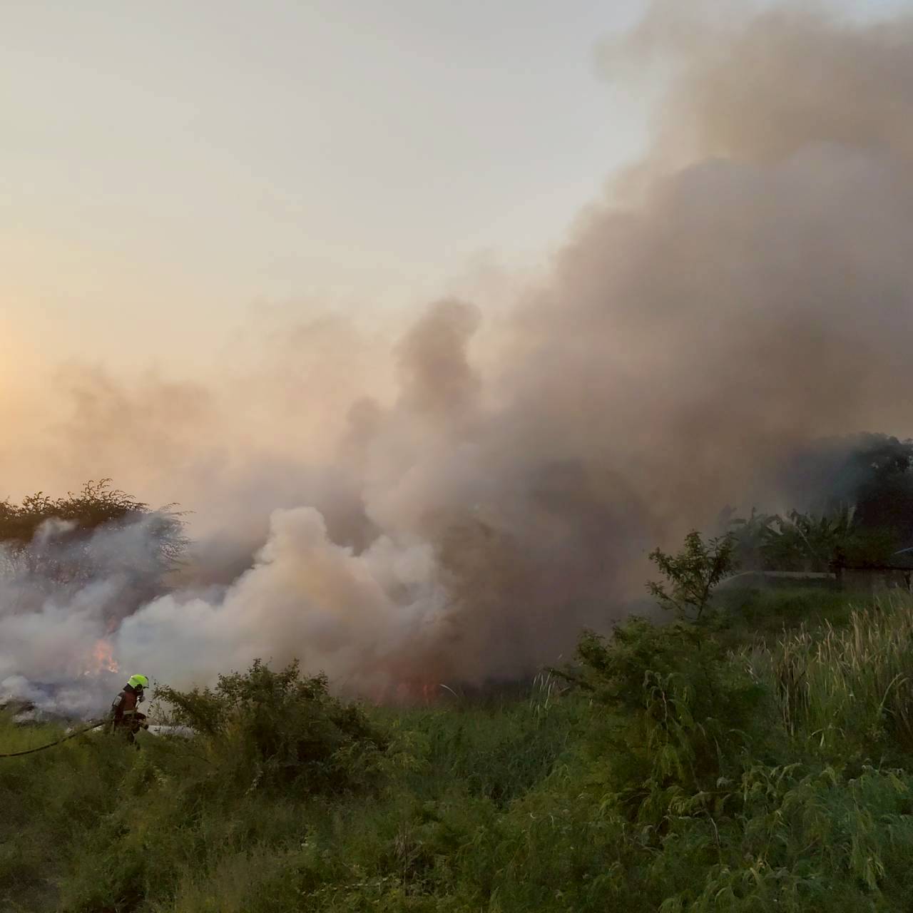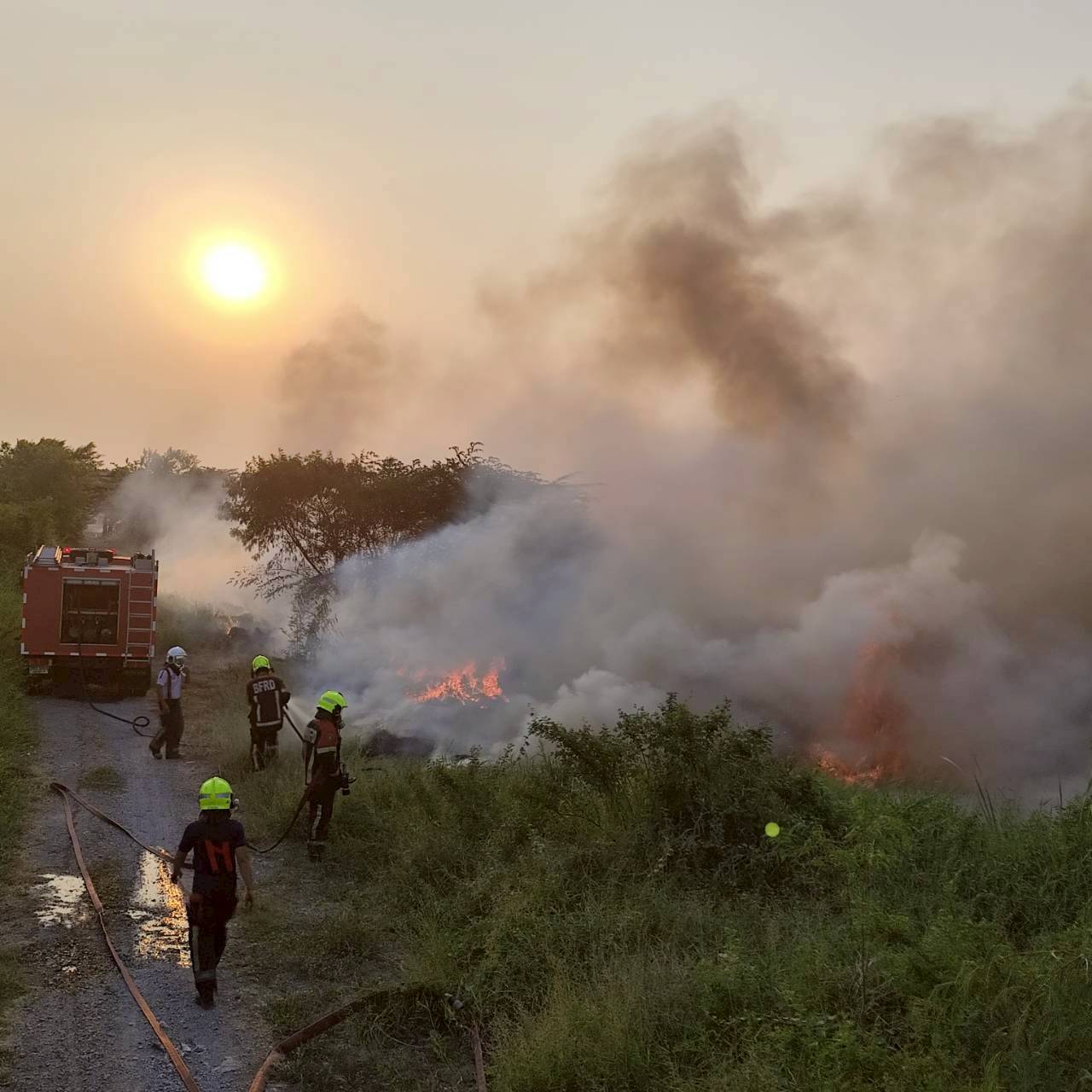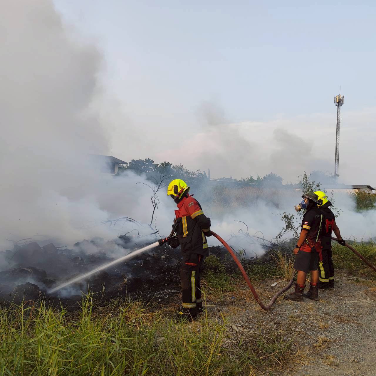สถานีดับเพลิงและกู้ภัยบางเขน /สายไหม เหตุ201 : เพลิงไหม้หญ้าและกองขยะ รถดับเพลิงใช้น้ำทำการดับ 25 ไร่เพลิงสงบ