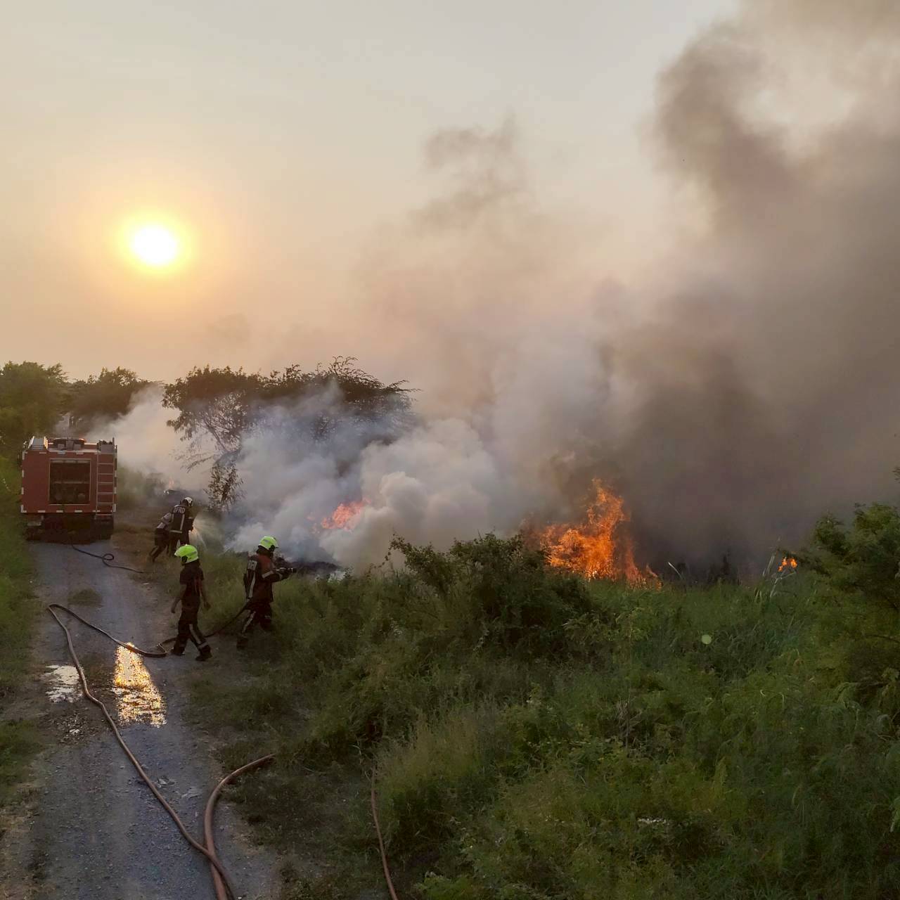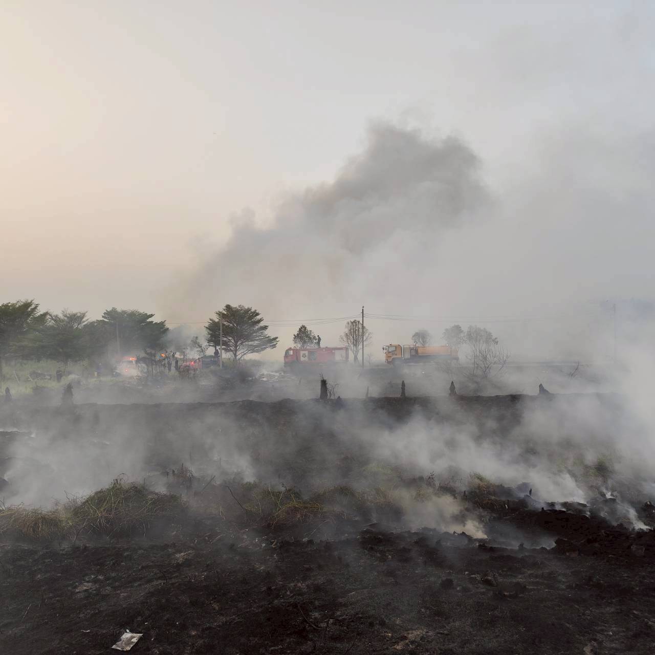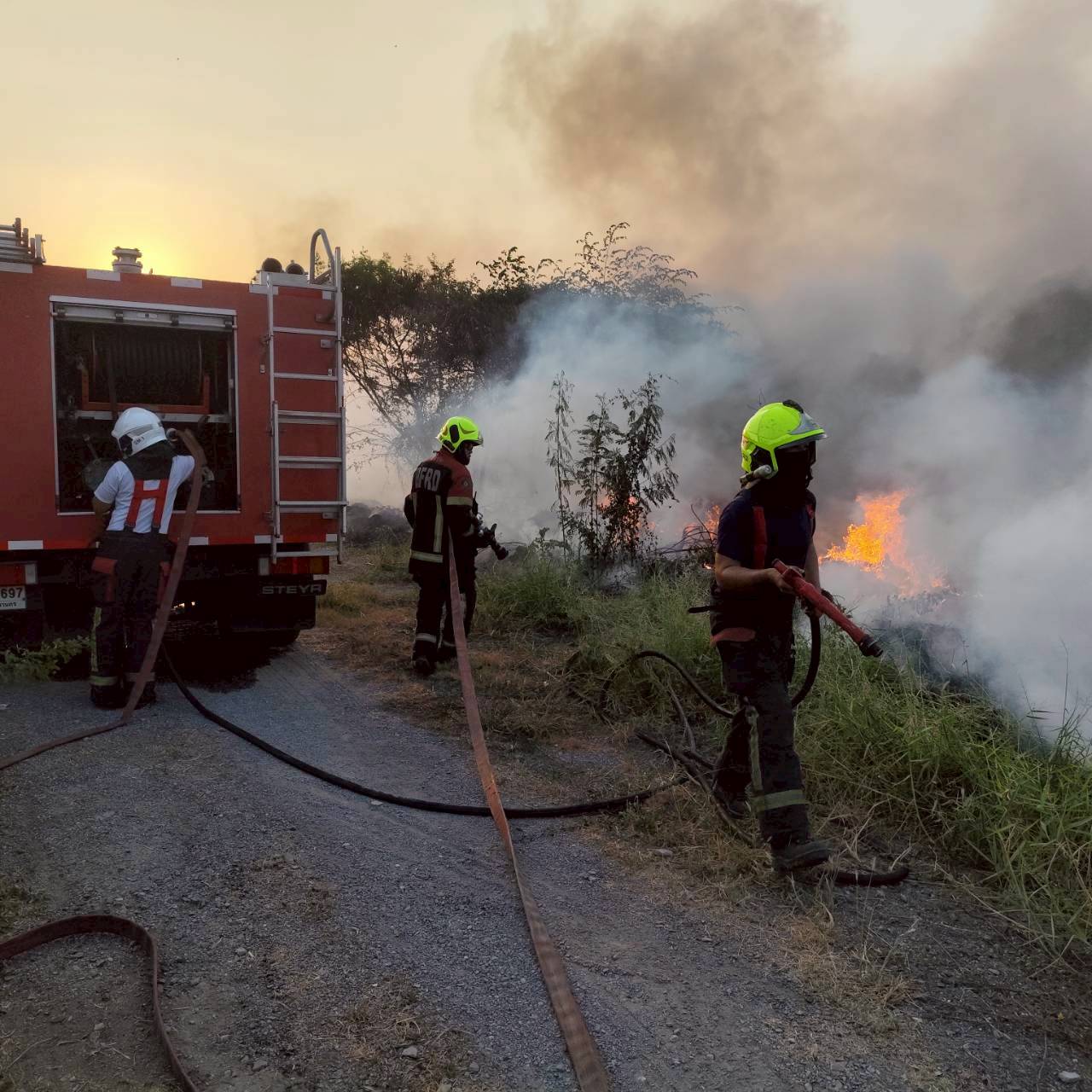 สถานีดับเพลิงและกู้ภัยบางเขน /สายไหม เหตุ201 : เพลิงไหม้หญ้าและกองขยะ รถดับเพลิงใช้น้ำทำการดับ 25 ไร่เพลิงสงบ