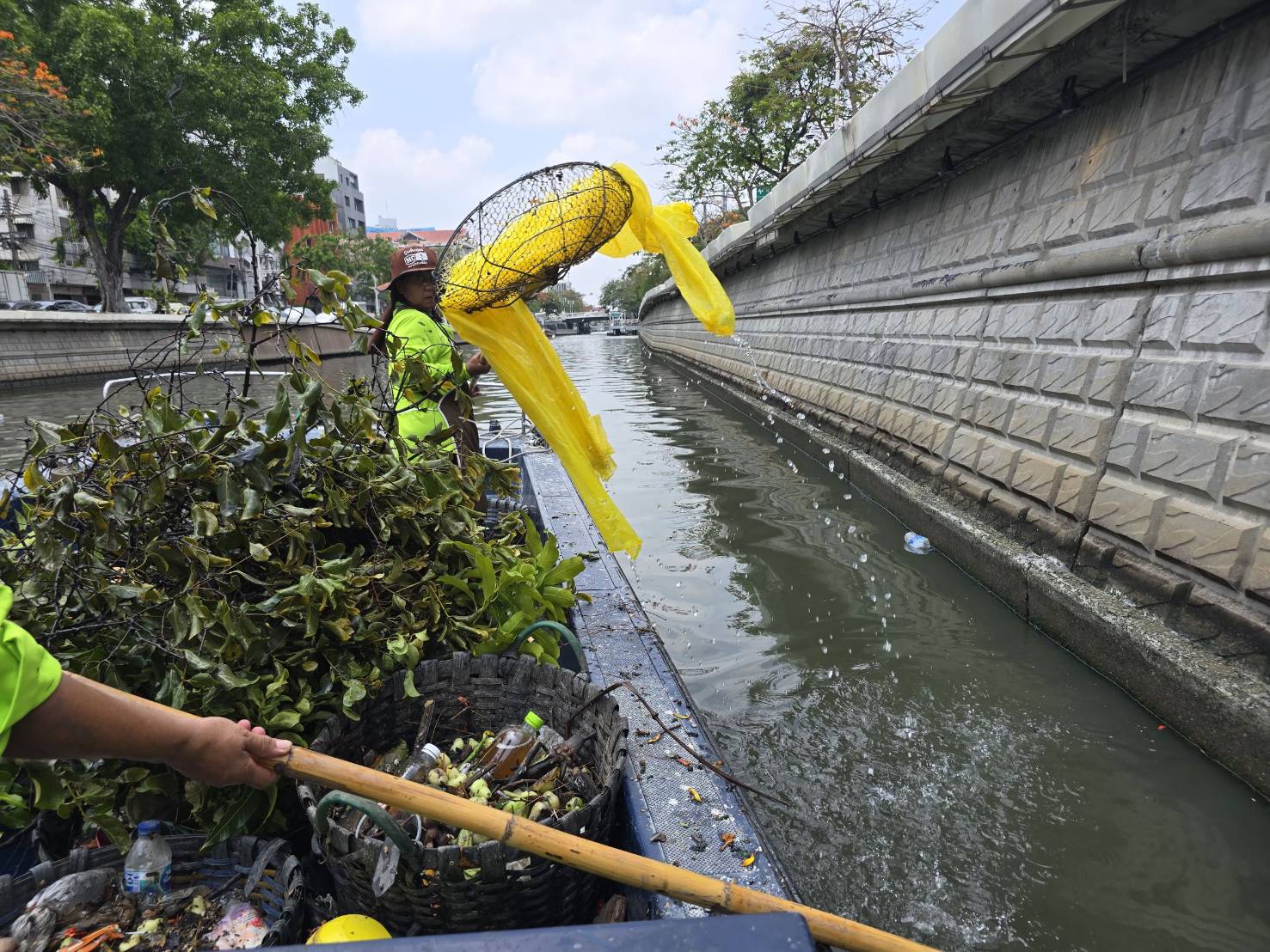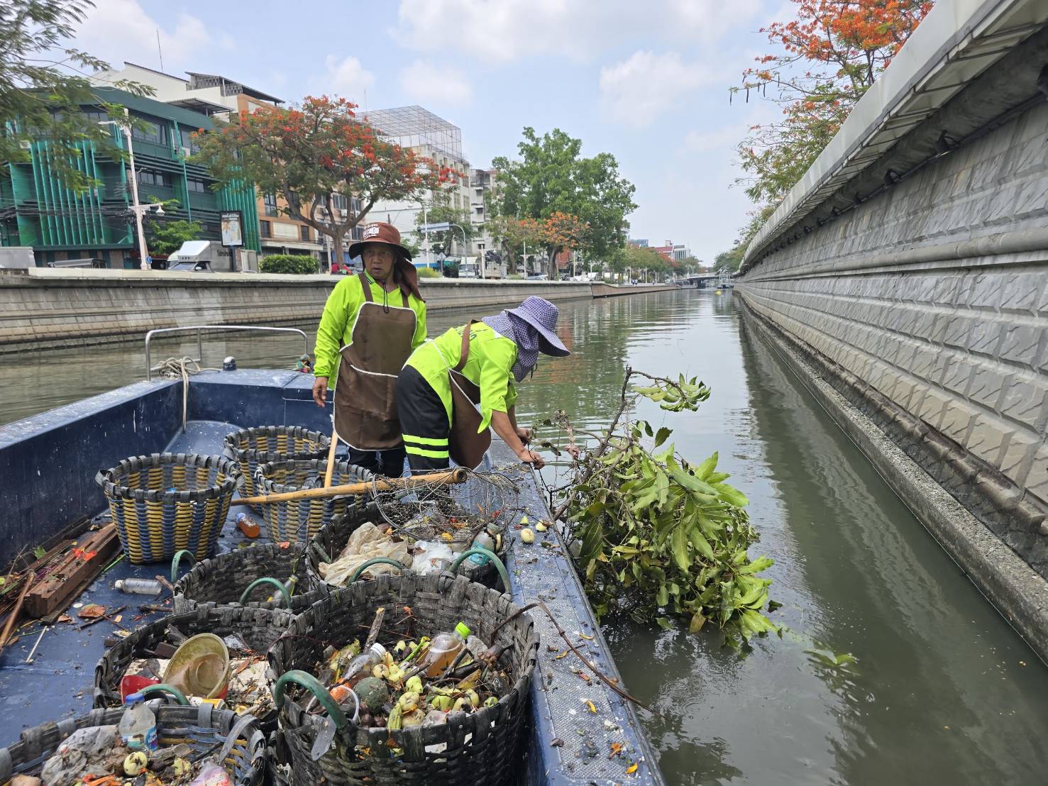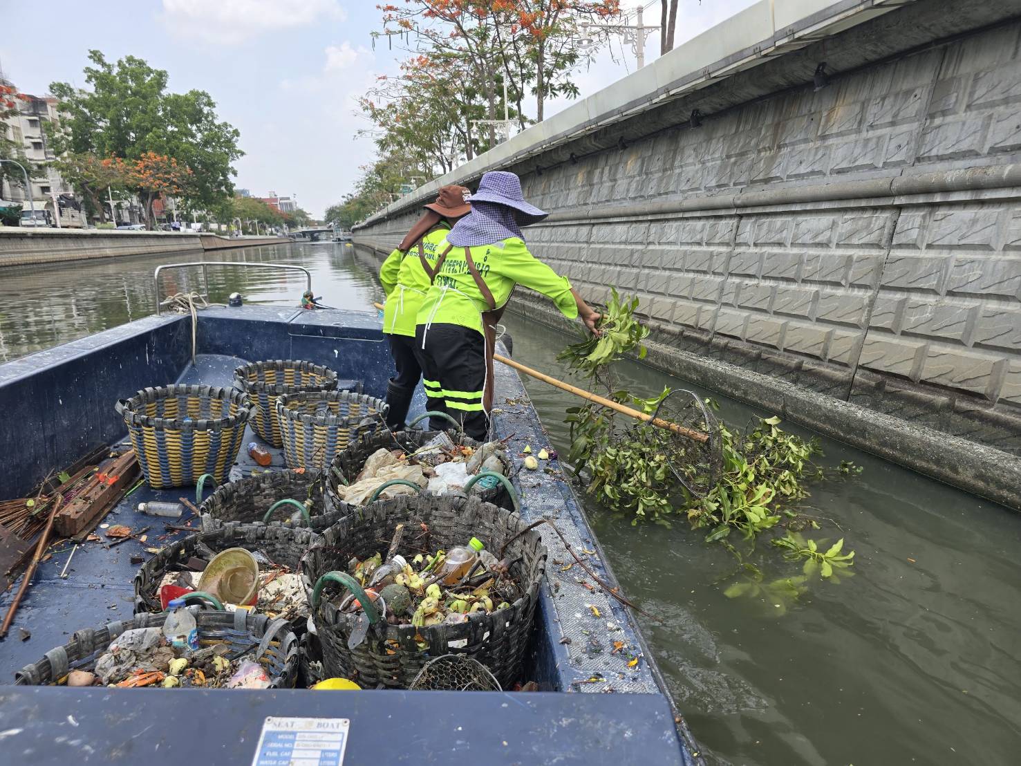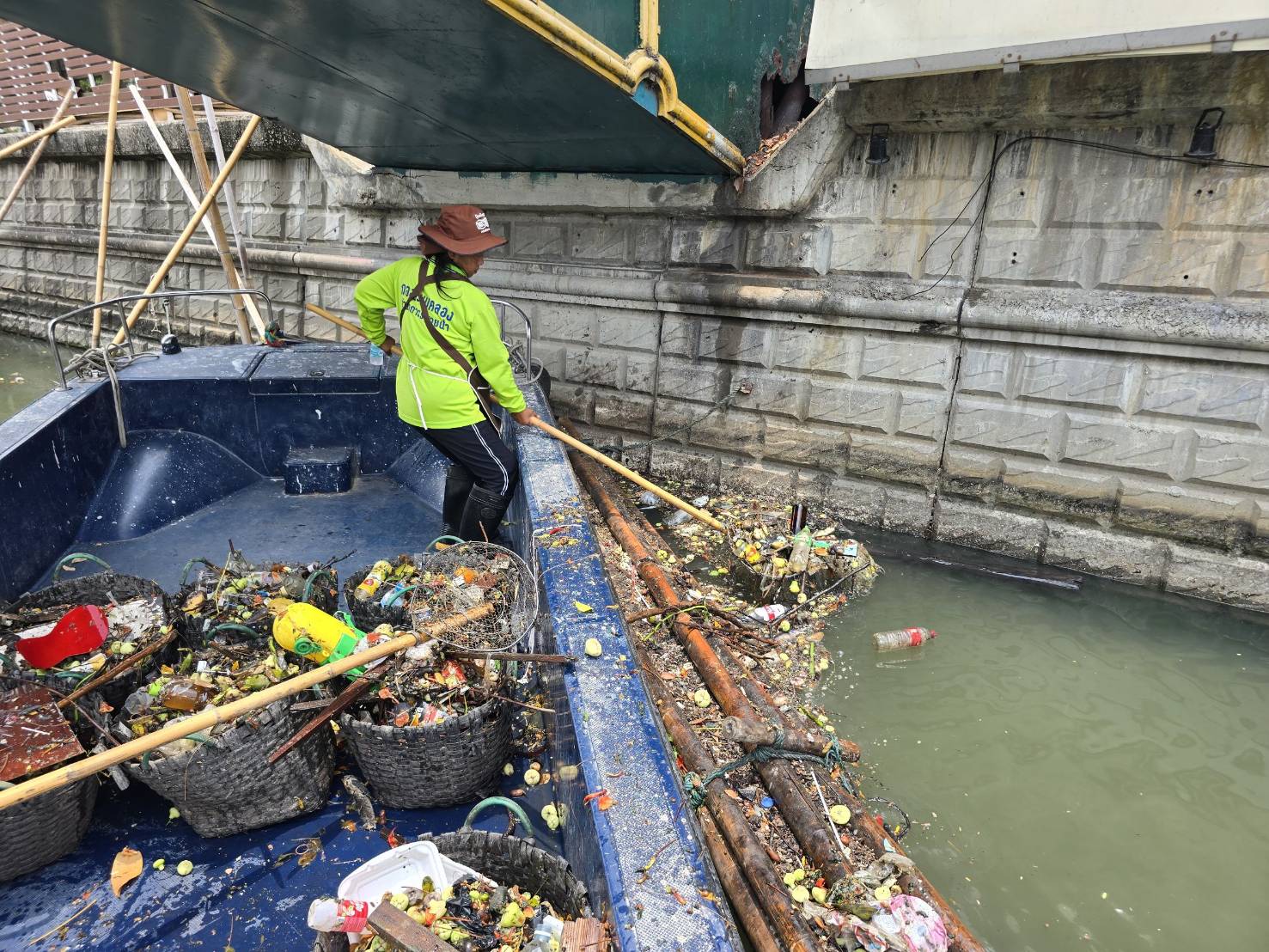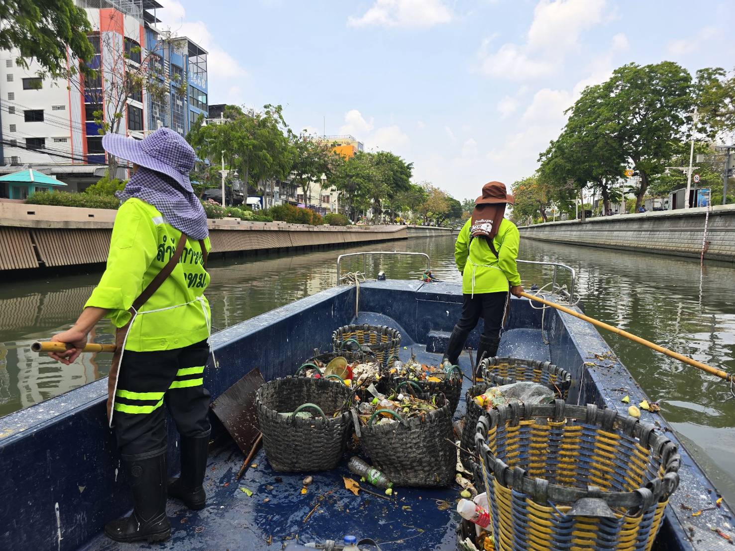 เจ้าหน้าที่ เก็บขยะคลองผดุงกรุงเกษม ช่วงสะพานเจริญสวัสดิ์-สะพานนพวงศ์-สะพานกษัตริย์ศึกถึงสี่แยกมหานาค เขตปทุมวันและเขตป้อมปราบศัตรูพ่าย