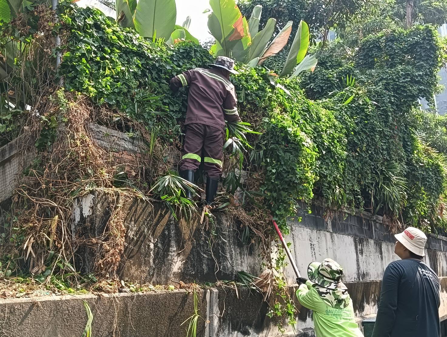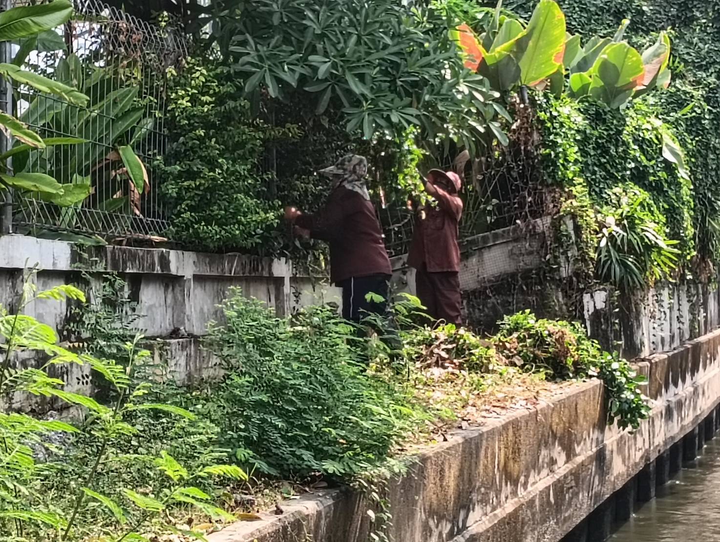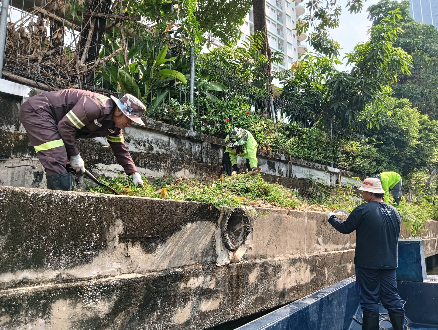 เจ้าหน้าที่ ตัดหญ้าริมขอบเขื่อนคลองสามเสน เขตดินแดง
