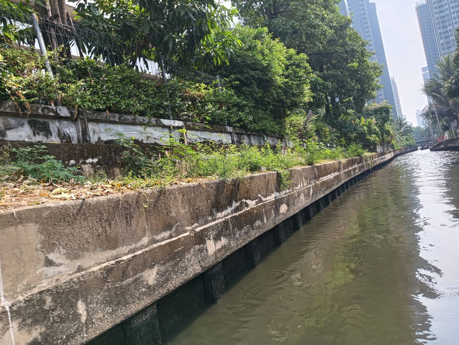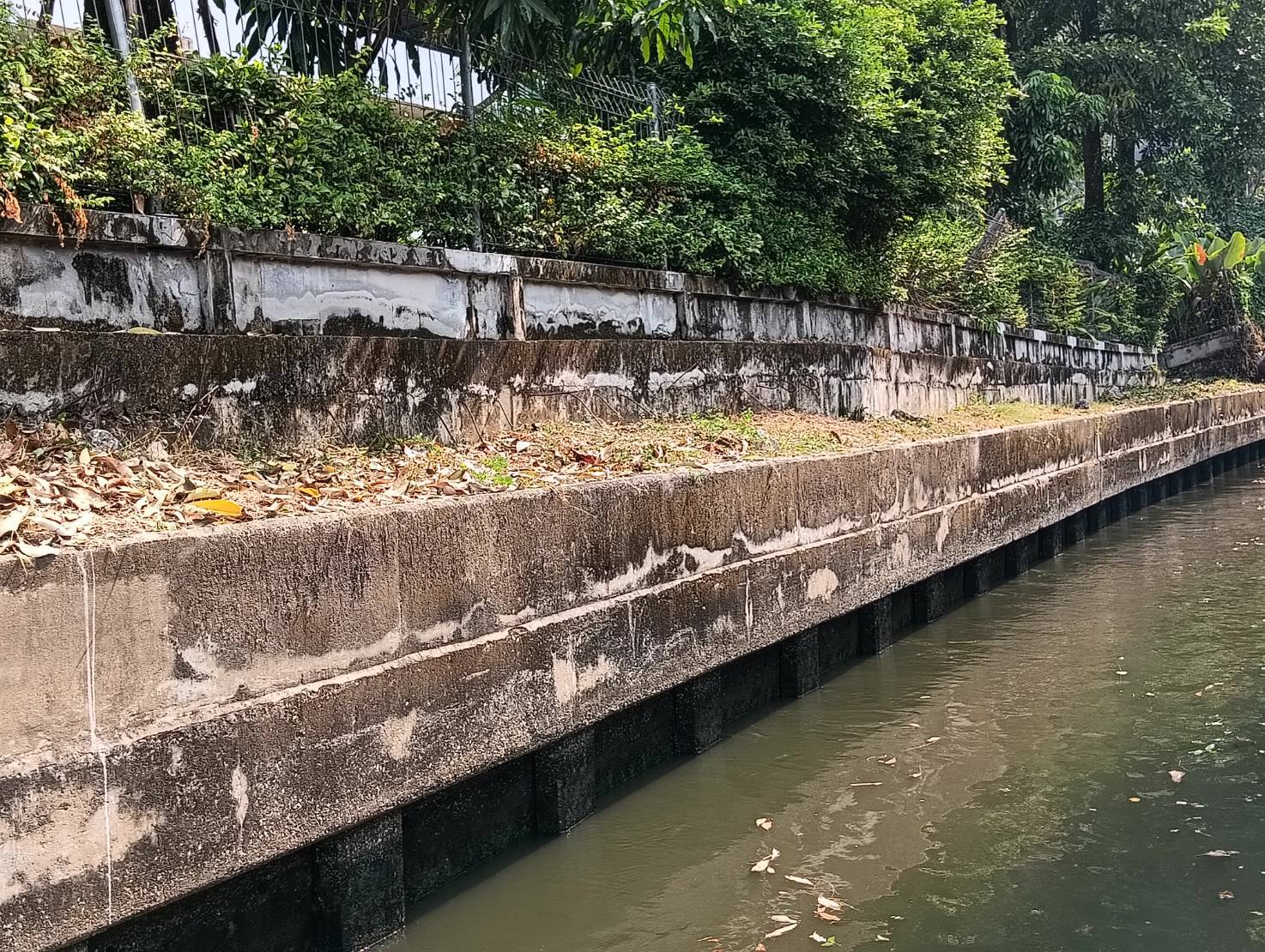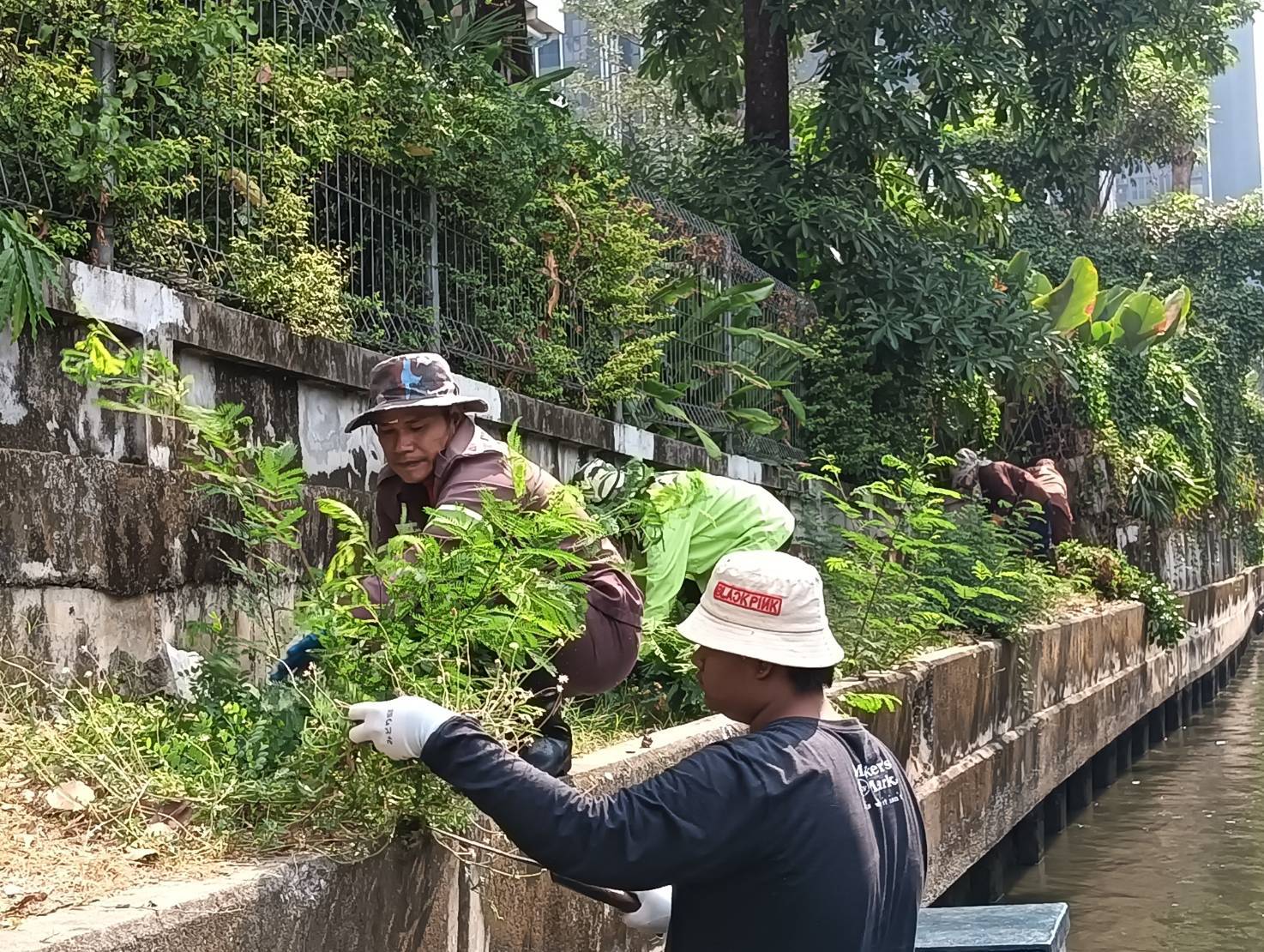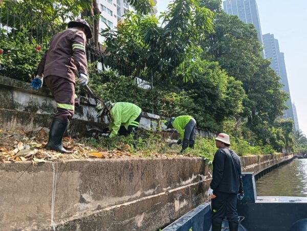 เจ้าหน้าที่ ตัดหญ้าริมขอบเขื่อนคลองสามเสน เขตดินแดง