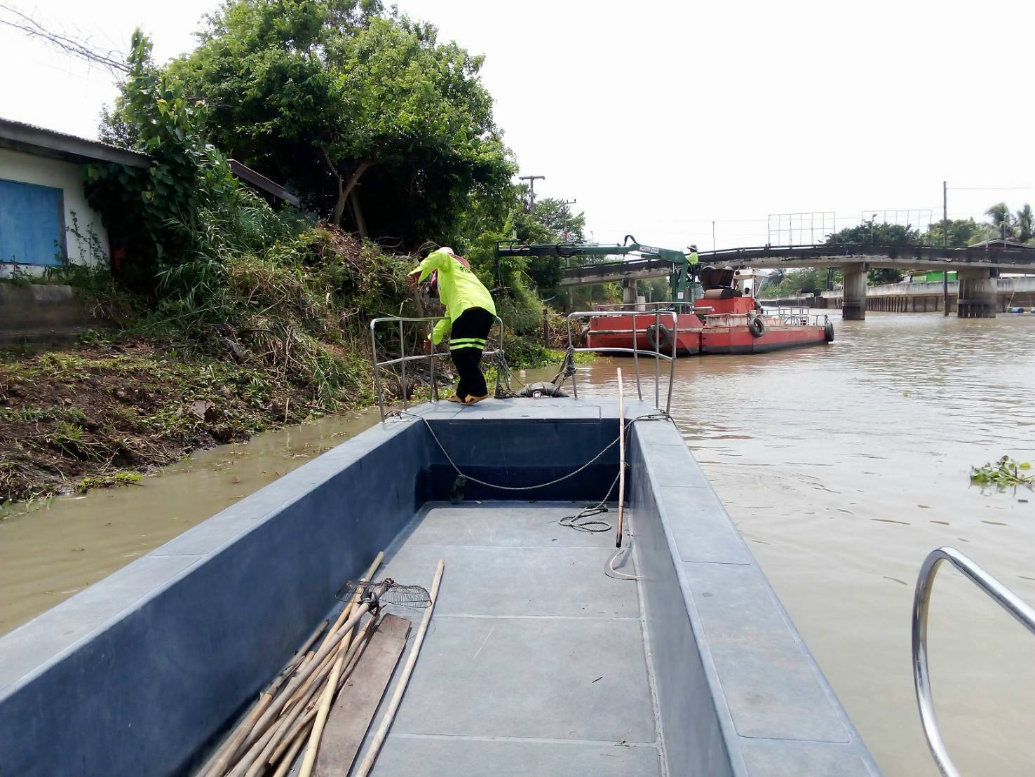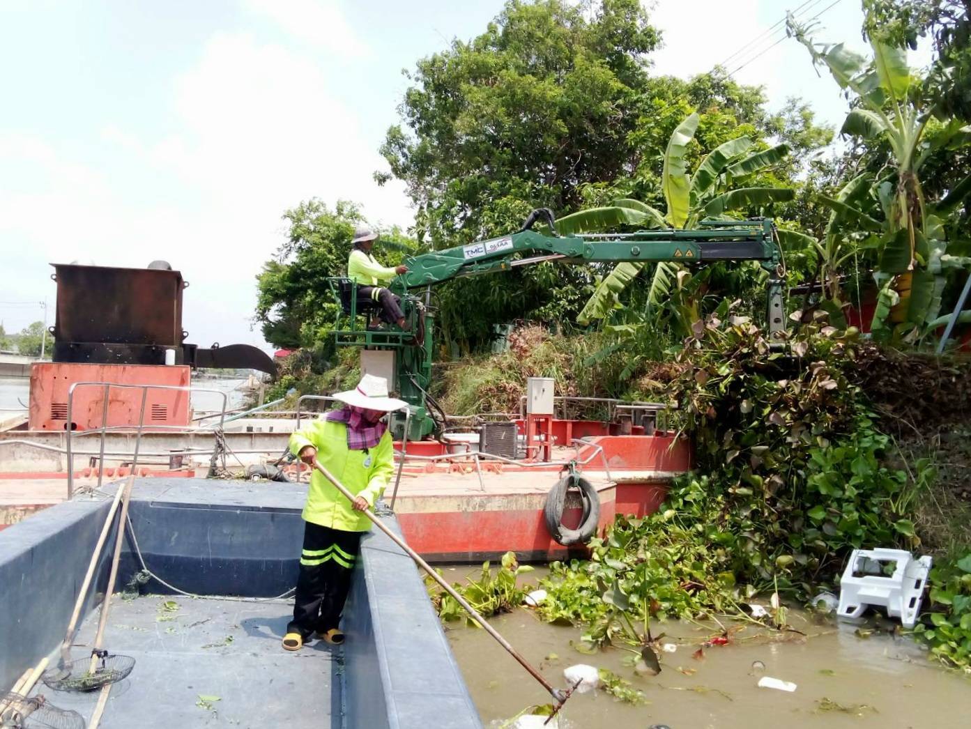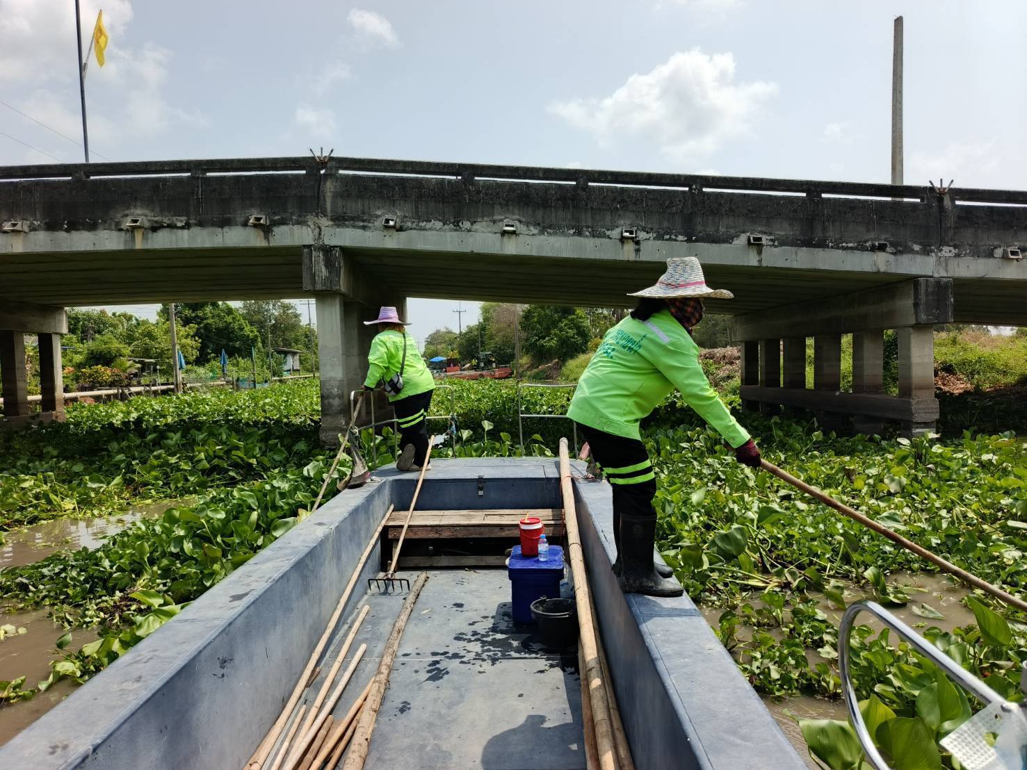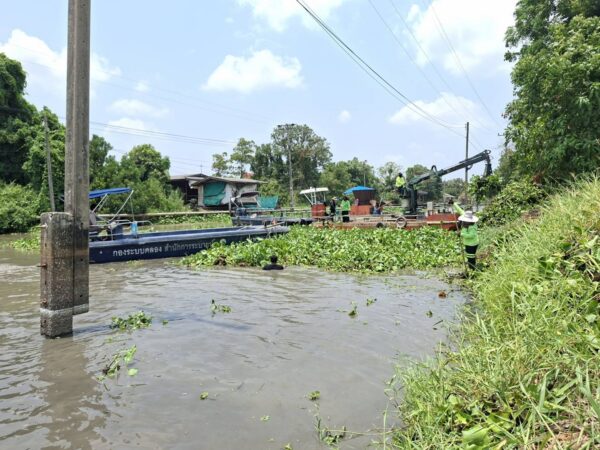 สำนักการระบายน้ำ จัดเก็บขยะและวัชพืชคลองหลวงแพ่ง-คลองนครเนื่องเขต พื้นที่เขตหนองจอก