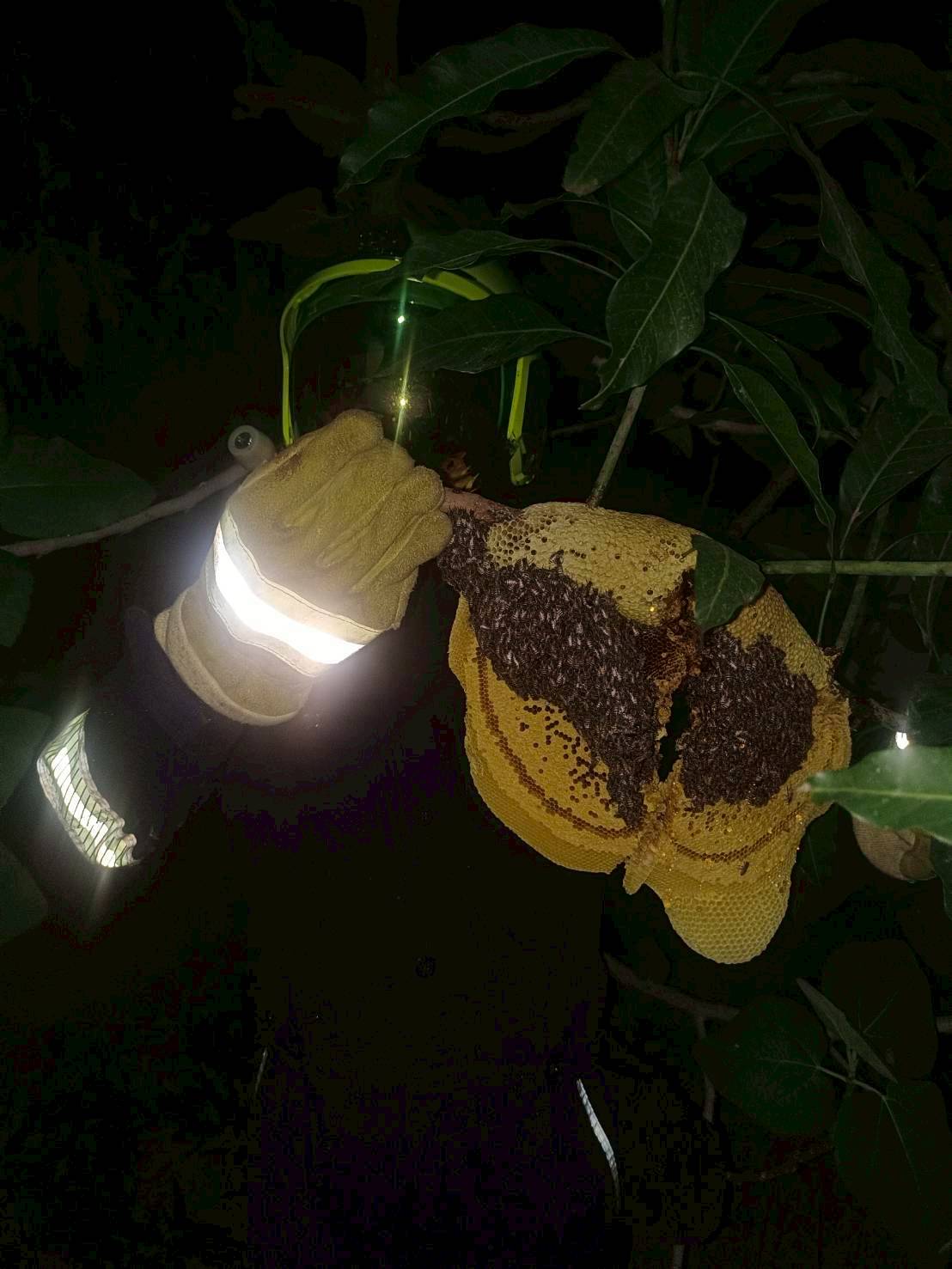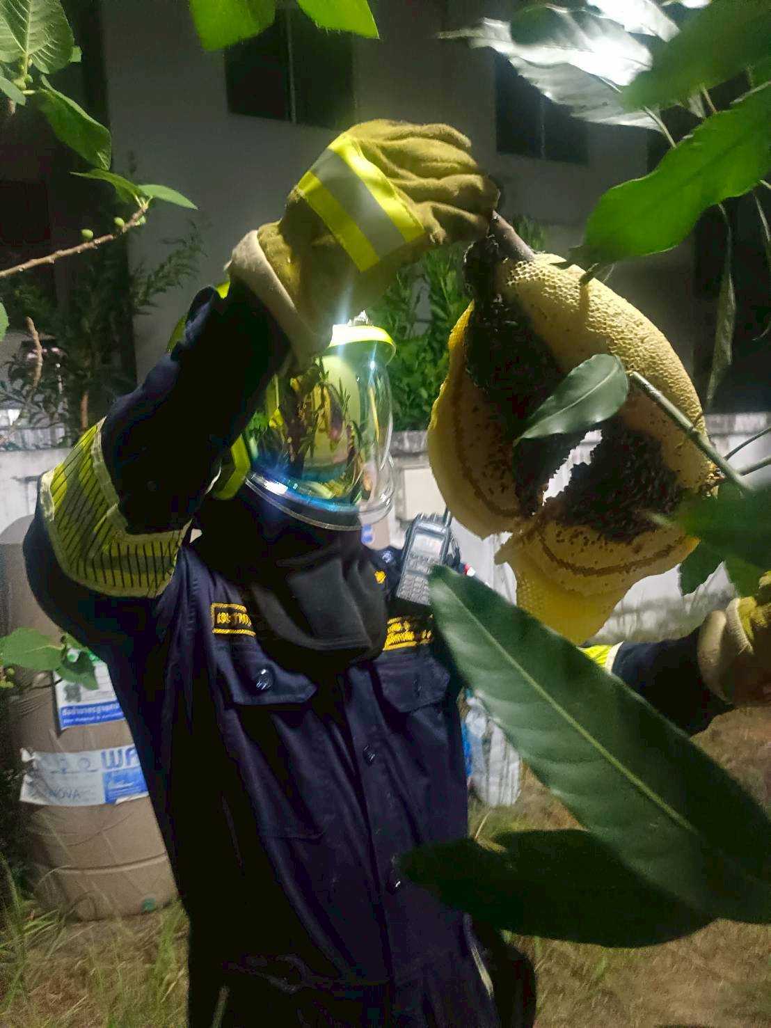 สถานีดับเพลิงและกู้ภัยหนองจอก ช่วยเหลือประชาชน กำจัดรังผึ้งมิ้ม 30 ซม.