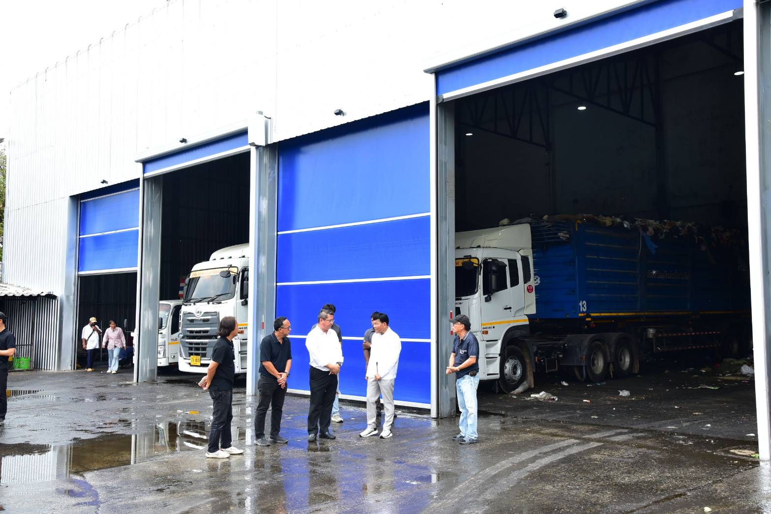 รองผู้ว่าฯ จักกพันธุ์ กล่าวว่า โครงการกำจัดมูลฝอยจากสถานีขนถ่ายมูลฝอยระบบใหม่ ศูนย์กำจัดมูลฝอยสายไหม และนำไปกำจัดอย่างถูกสุขลักษณะ บริษัทผู้รับจ้างจะรวบรวมขยะใส่รถบรรทุกตู้คอนเทนเนอร์ขนส่งมูลฝอยไปกำจัดที่ จ.กาญจนบุรี จากการลงพื้นที่เมื่อเดือนมีนาคม 2569 ได้กำชับให้บริษัทผู้รับจ้างปรับปรุงภูมิทัศน์โดยรอบให้สะอาดและเป็นระเบียบ เก็บขยะมูลฝอยที่กองอยู่บริเวณลานหน้าโรงงาน ตรวจสอบไม่ให้รถเก็บขนมูลฝอยนำขยะมูลฝอยมาเทกองรวมกันบริเวณลานด้านนอกอาคาร ล้างทำความสะอาดพื้นและทางเข้าออก ซึ่งขณะนี้บริษัทผู้รับจ้างได้ดำเนินการปรับปรุงอาคารโรงงานให้เป็นระบบปิดทั้งหมด ติดตั้งประตูบริเวณทางเข้า-ออกอาคารรับขยะ 2 ประตู โดยจะเปิด-ปิดเฉพาะช่วงที่มีรถขยะผ่านเข้า-ออก พร้อมติดตั้งม่านอากาศเพื่อป้องกันไม่ให้กลิ่นกระจายออกสู่ภายนอกอาคาร ติดตั้งระบบตรวจวัดกลิ่น E-NOSE ตรวจสอบไม่ให้มีขยะมูลฝอยตกค้าง ในส่วนของรถบรรทุกตู้คอนเทนเนอร์แบบไม่มีหลังคา ให้นำผ้าใบปิดคลุมทันทีที่บรรทุกขยะมูลฝอยเต็มแล้ว โดยได้เน้นย้ำบริษัทผู้รับจ้างให้ตรวจสอบการปรับปรุงอาคารเดิมให้เป็นระบบปิดทั้งหมด ติดตั้งประตูทางเข้า-ออกทั้ง 2 ด้าน ส่วนอาคารคลุมพื้นที่ขนถ่ายมูลฝอยที่ต่อเติมใหม่ ติดตั้งประตูทางเข้า-ออกทั้ง 3 ด้าน ตรวจสอบไม่ให้มีช่องว่างที่จะทำให้กลิ่นขยะมูลฝอยเล็ดลอดออกไปได้อย่างเด็ดขาด ซึ่งผู้รับจ้างยืนยันว่าการปรับปรุงอาคารและการติดตั้งประตูทางเข้า-ออกทั้งหมด จะแล้วเสร็จภายในเดือนพฤษภาคม 2569