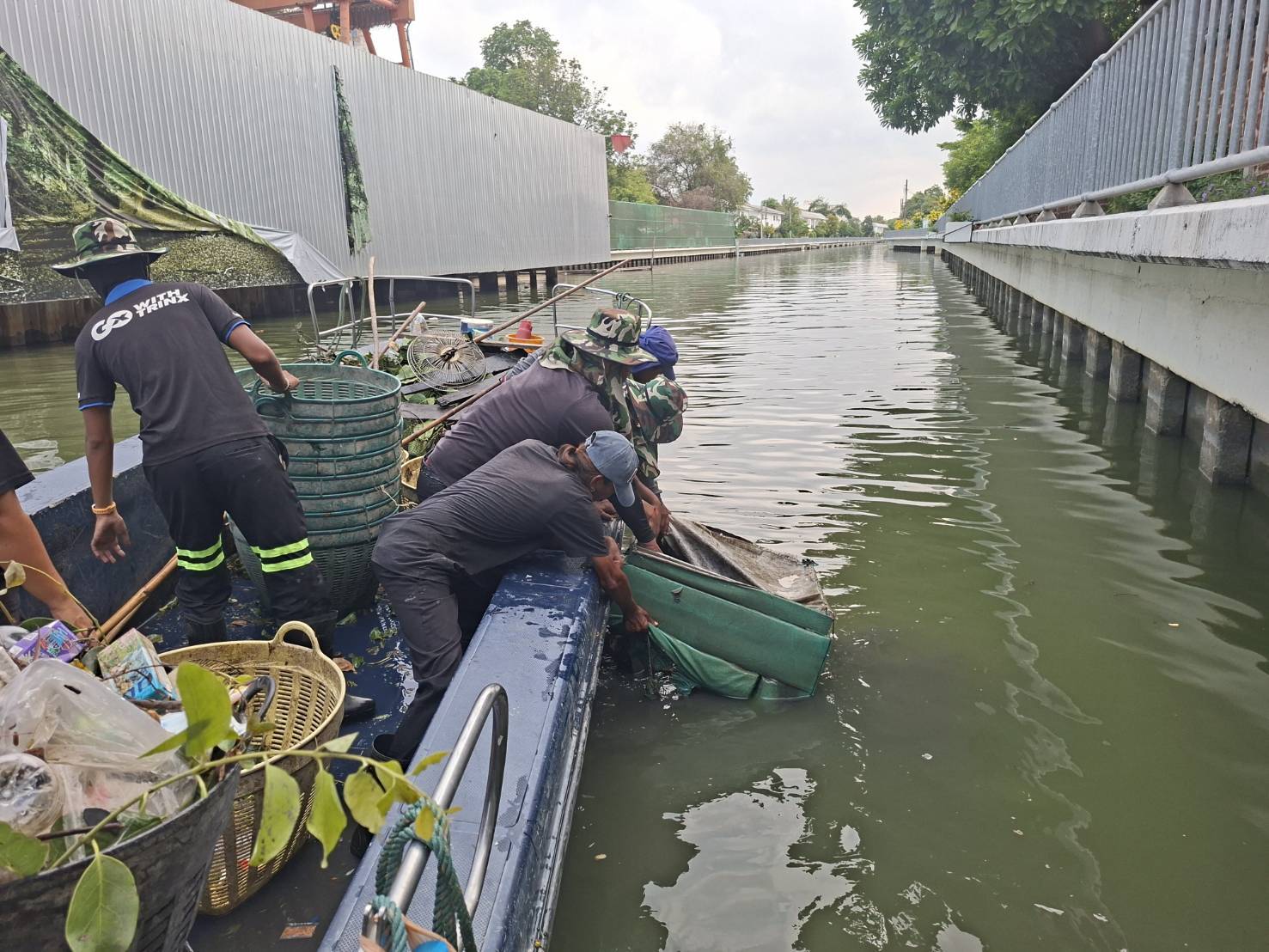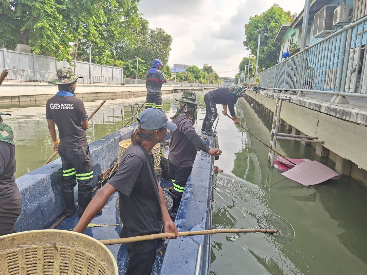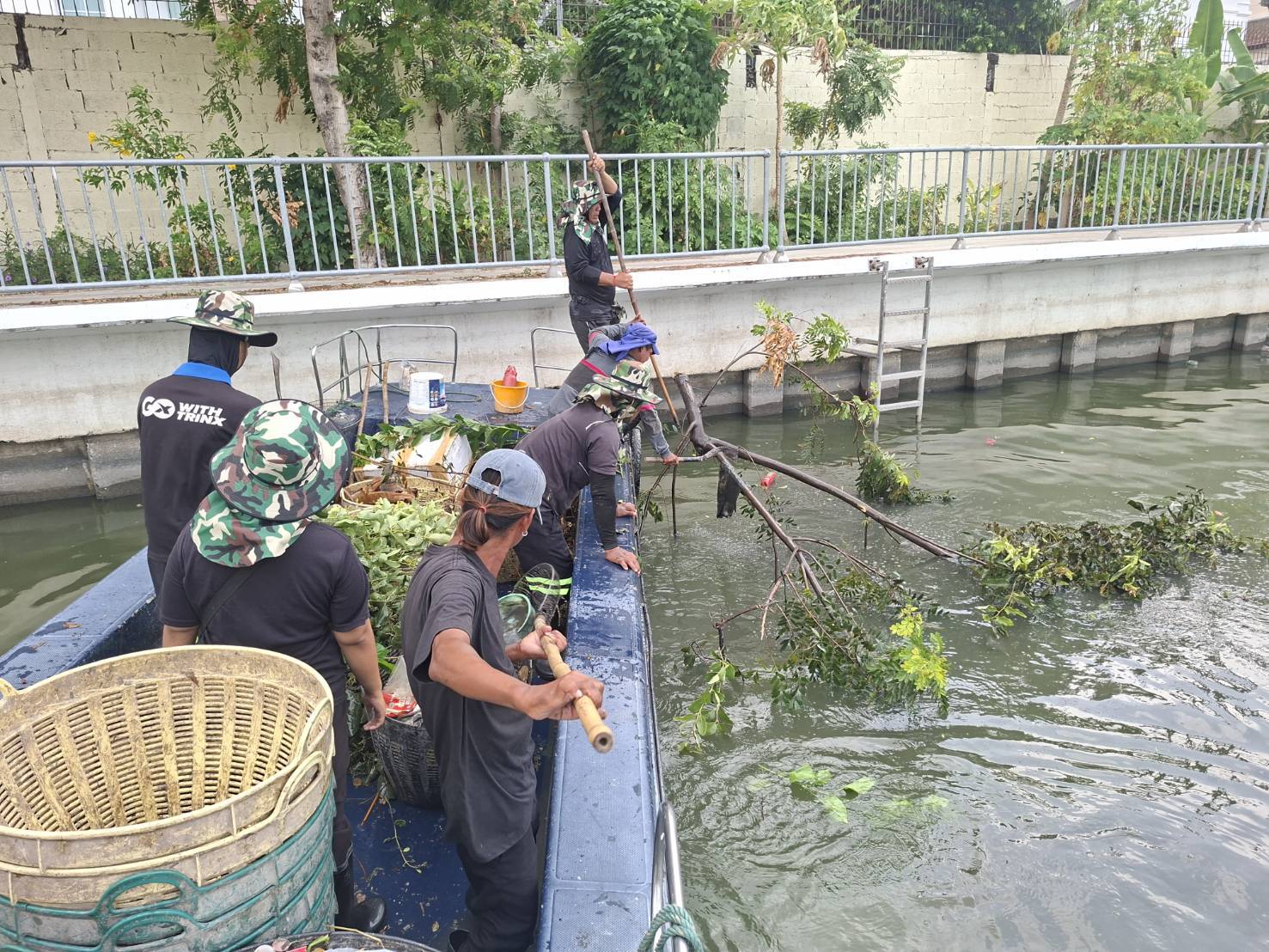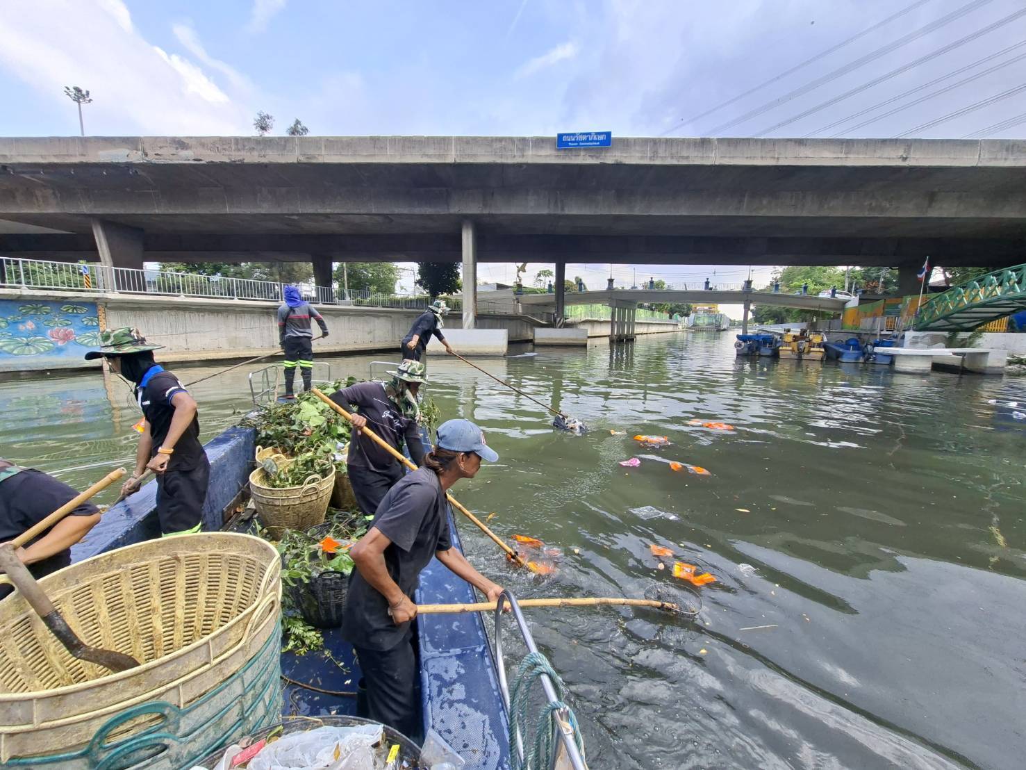 เจ้าหน้าที่ เก็บขยะและวัชพืชคลองเปรมประชากร ช่วงชุมชนตึกแดงบางซื่อเขตบางซื่อถึงสะพานงามวงศ์วานเขตจตุจักร