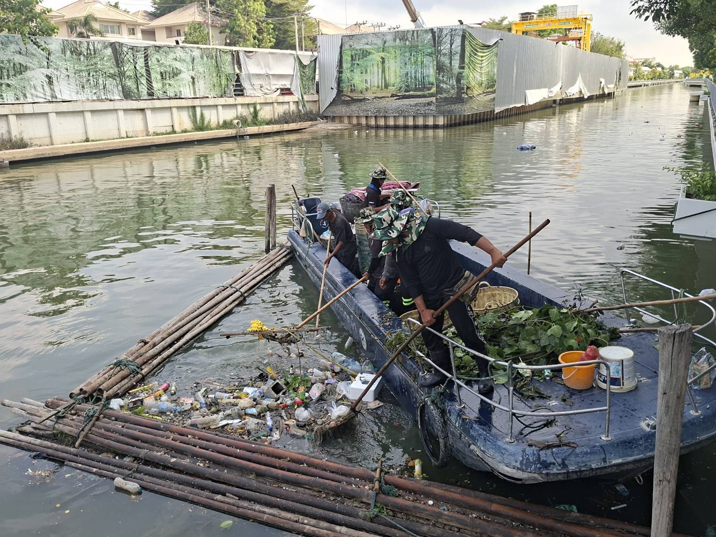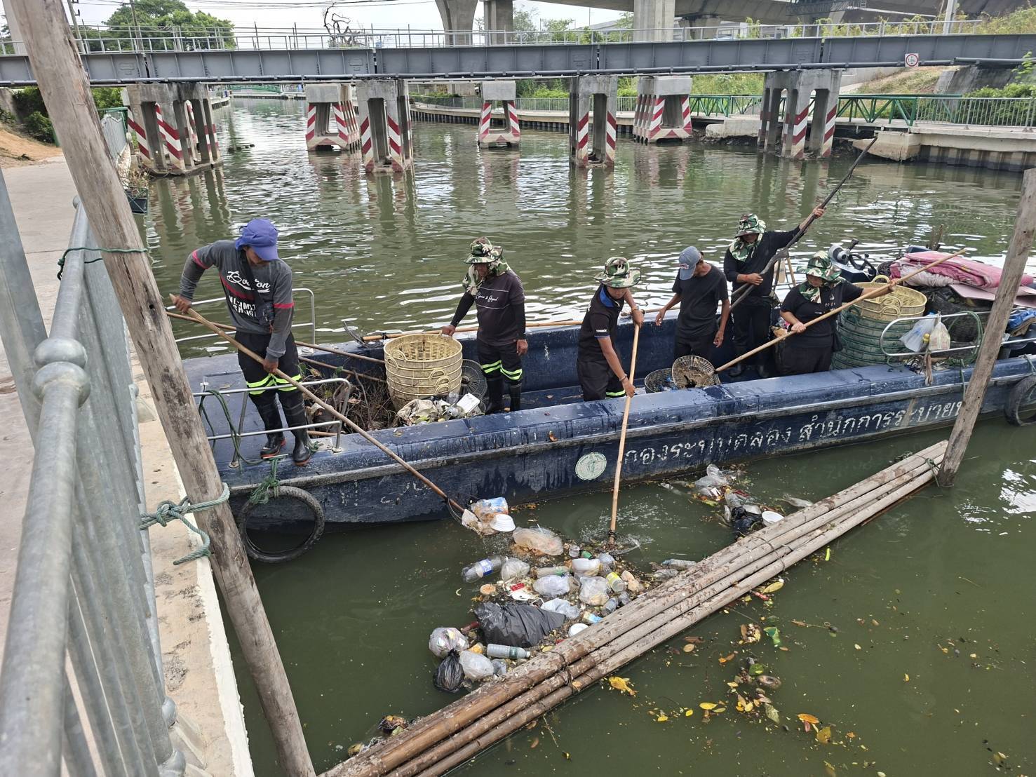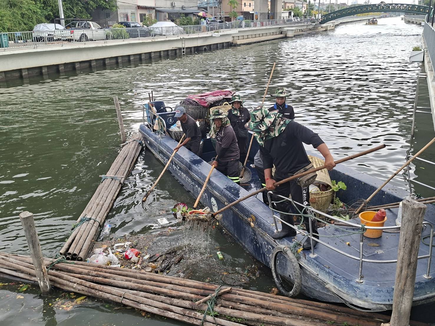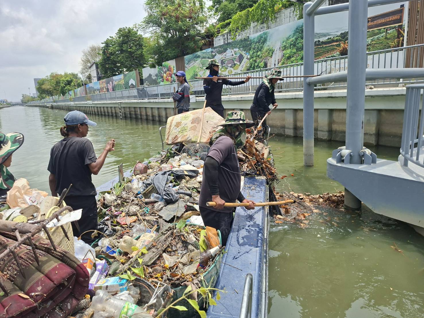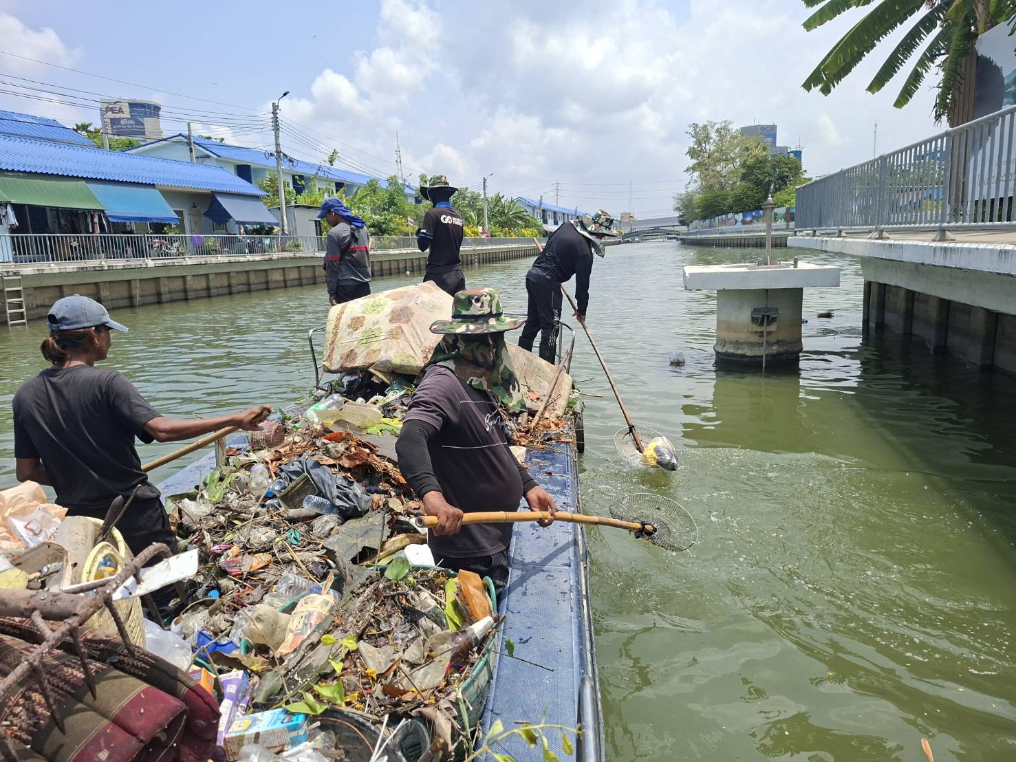 เจ้าหน้าที่ เก็บขยะและวัชพืชคลองเปรมประชากร ช่วงชุมชนตึกแดงบางซื่อเขตบางซื่อถึงสะพานงามวงศ์วานเขตจตุจักร