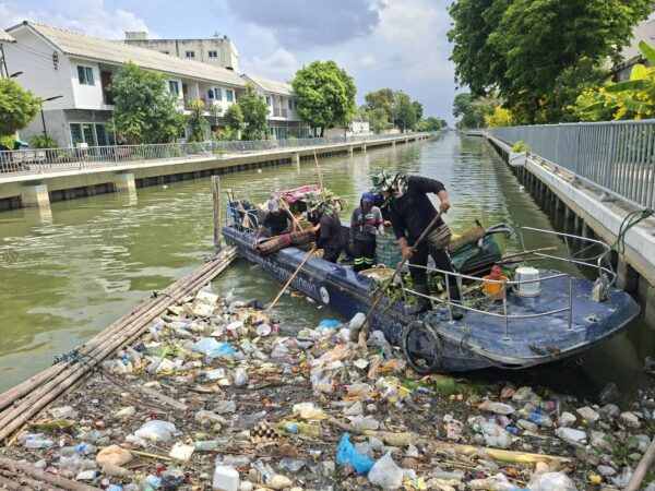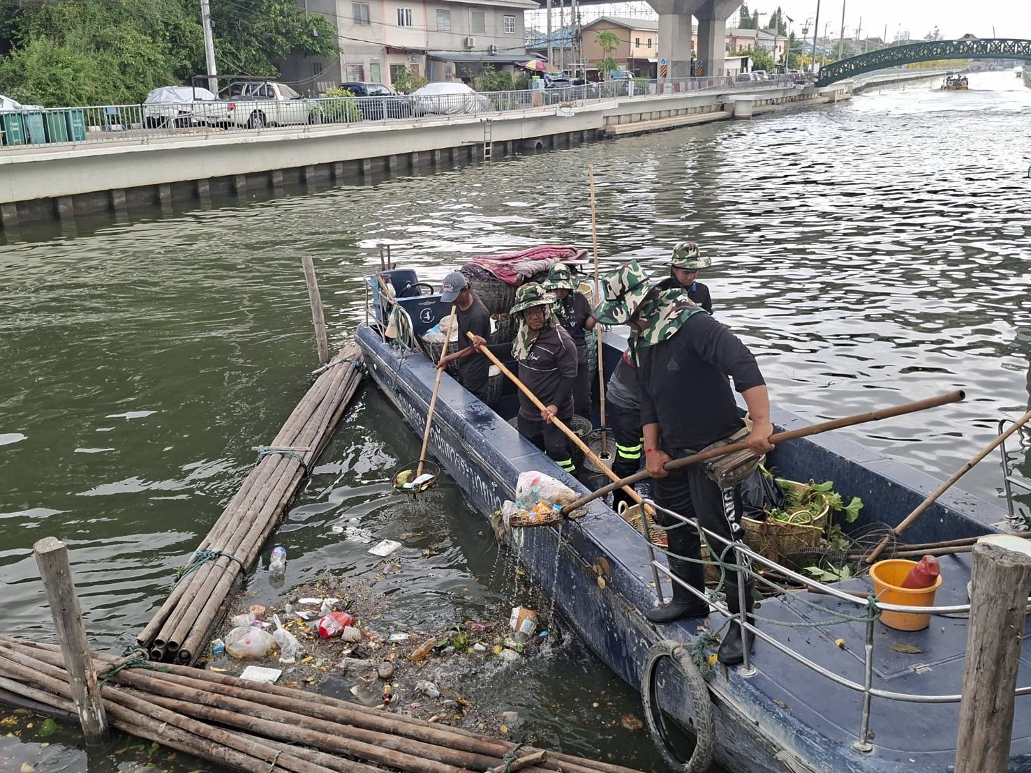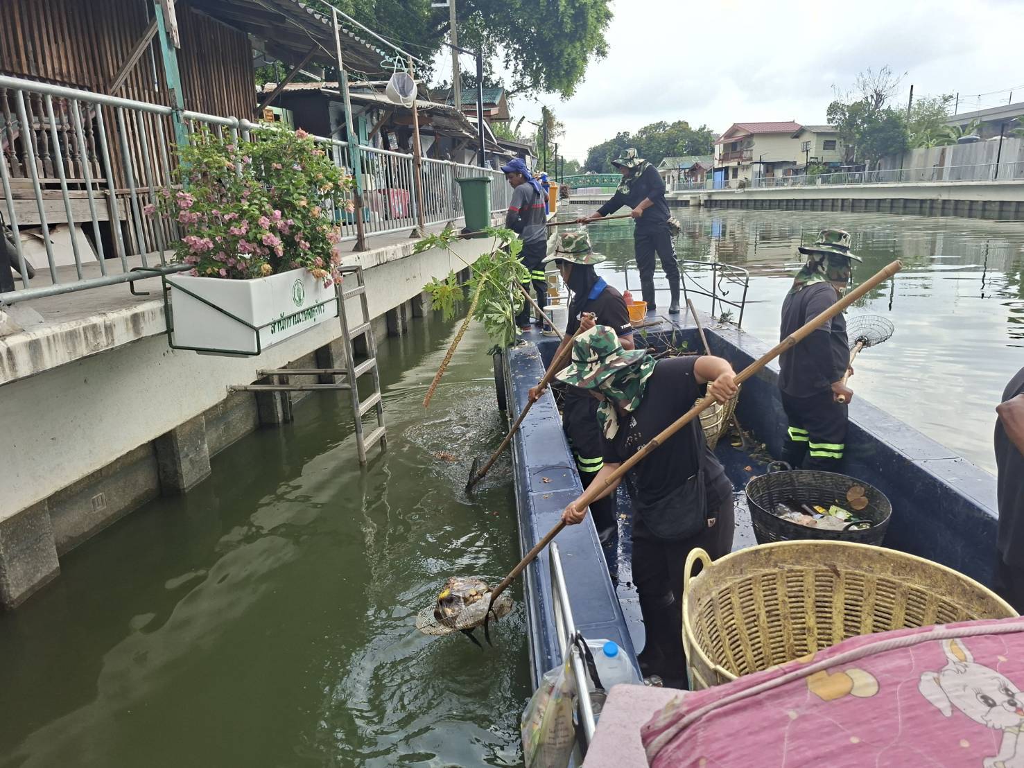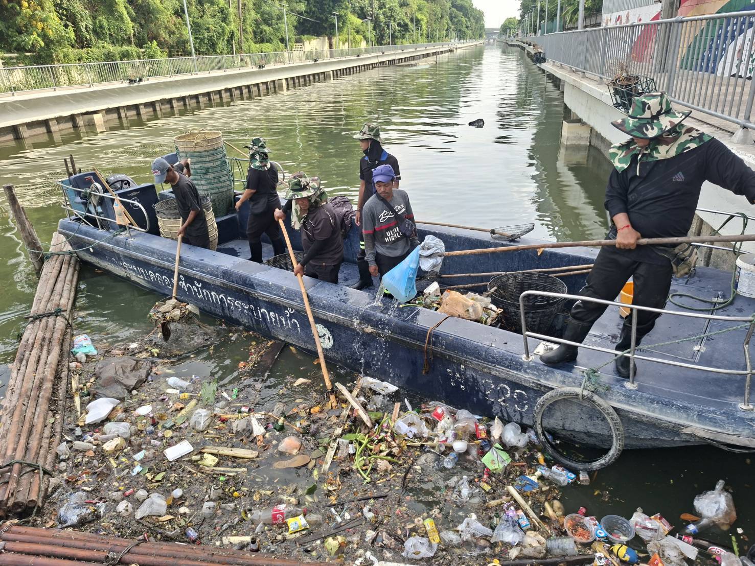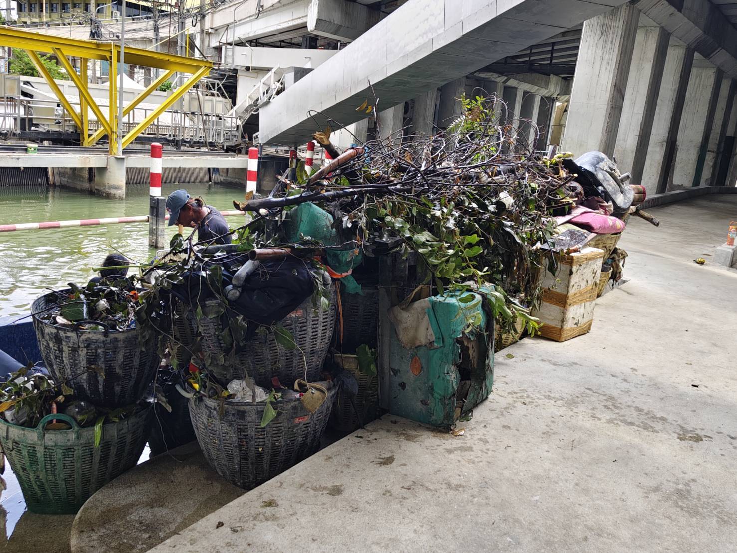เจ้าหน้าที่ เก็บขยะและวัชพืชคลองเปรมประชากร ช่วงชุมชนตึกแดงบางซื่อเขตบางซื่อถึงสะพานงามวงศ์วานเขตจตุจักร