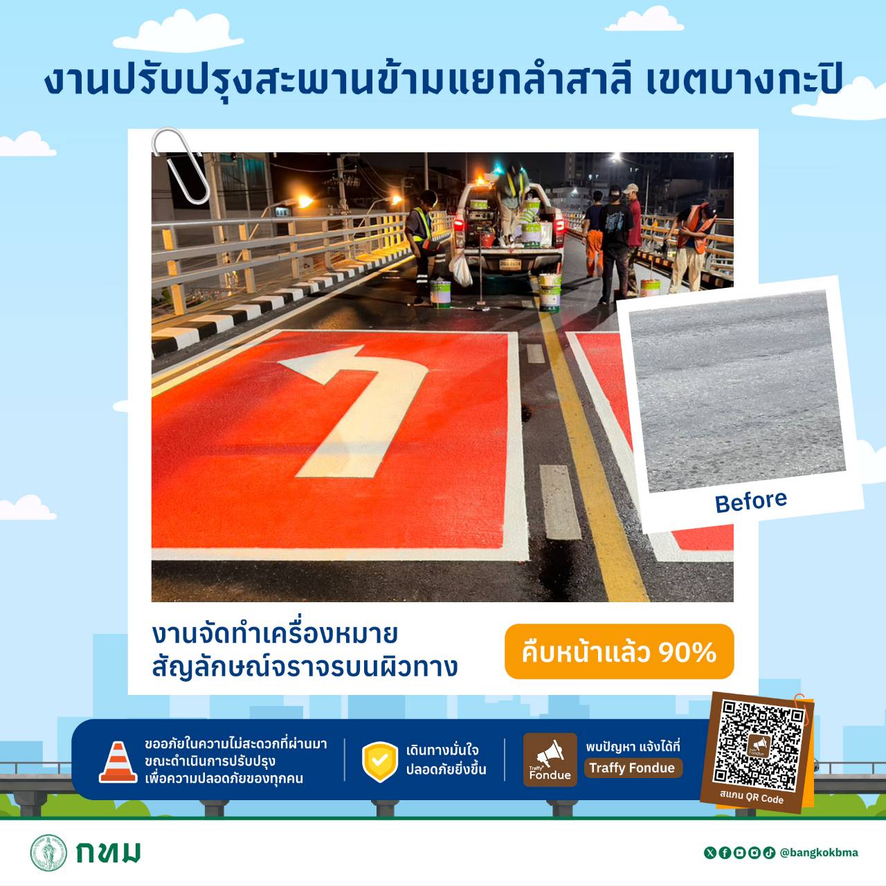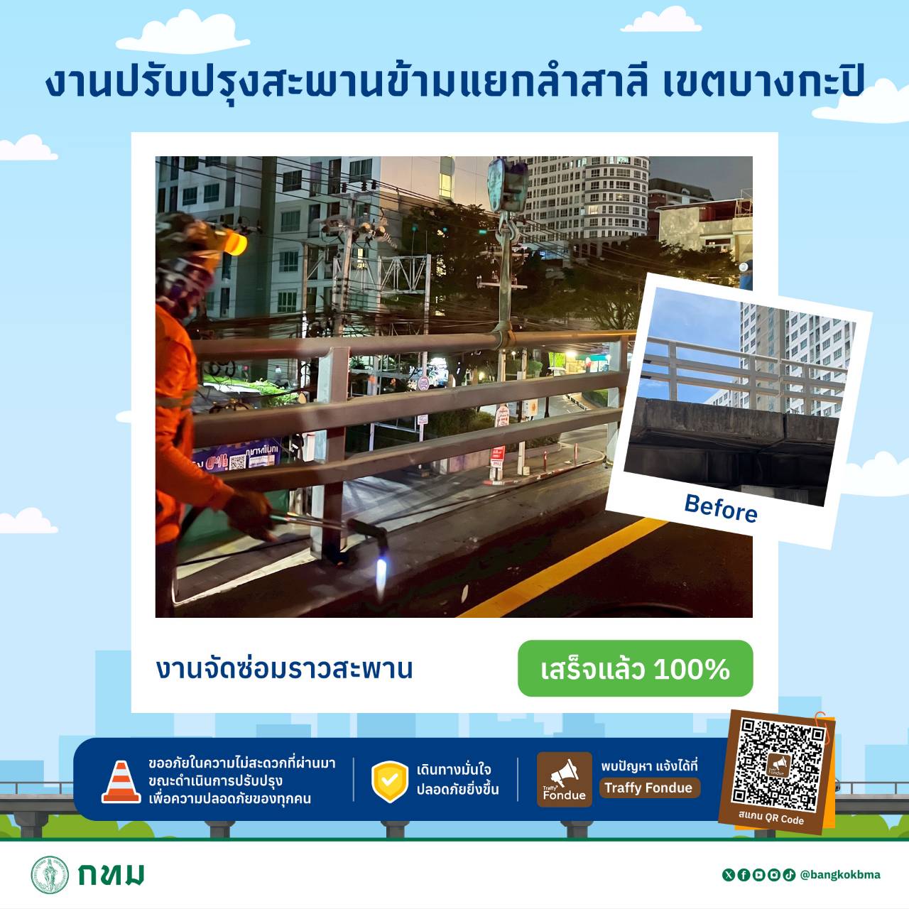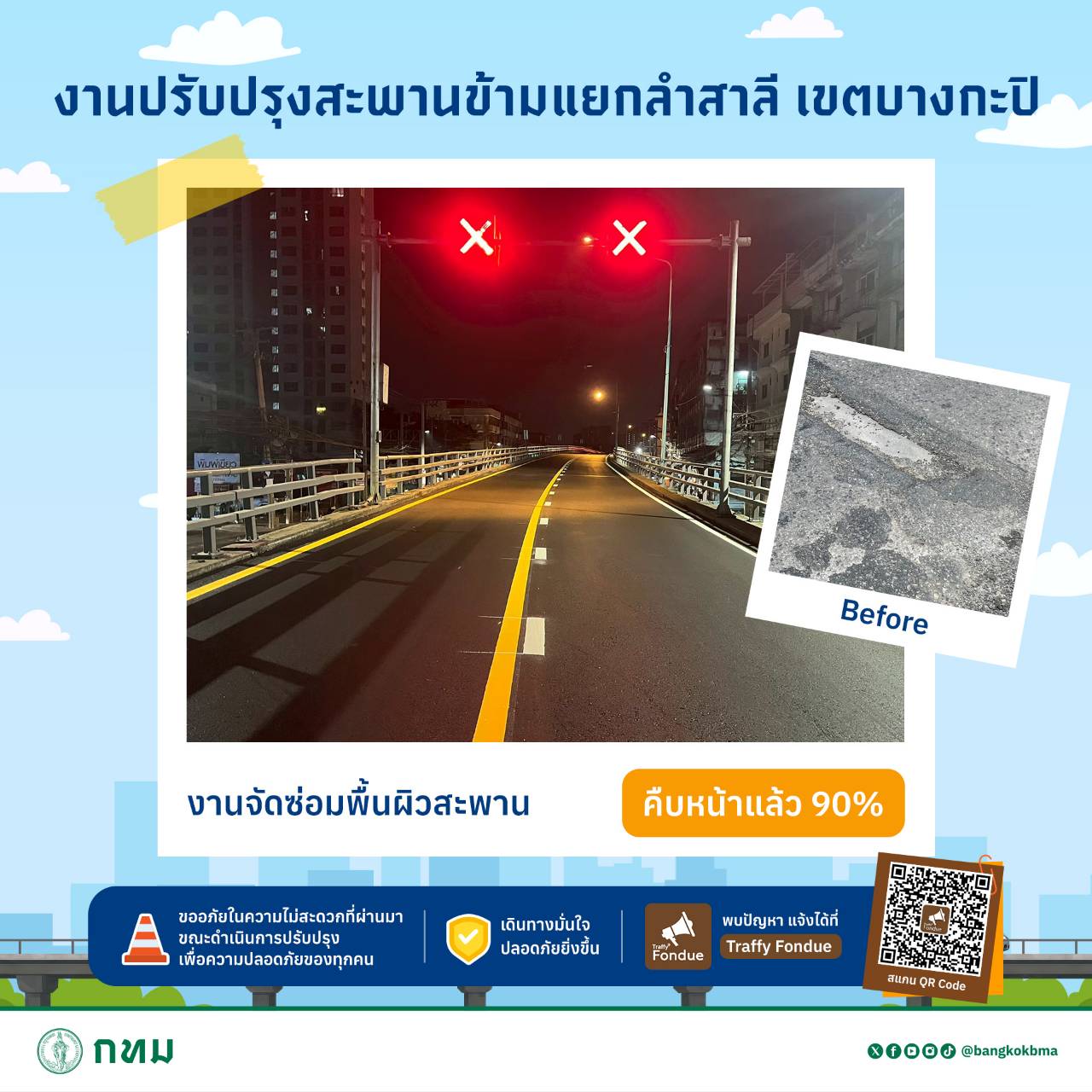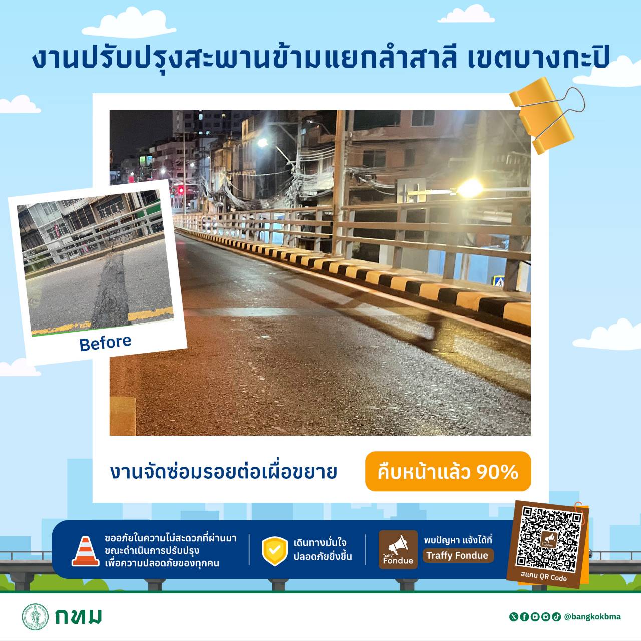 #กทม #ปลอดภัยดี #เดินทางดี #เมืองน่าอยู่สำหรับทุกคน #สะพานข้ามแยกลำสาลี #ซ่อมสะพาน #ซ่อมบำรุง #fyi