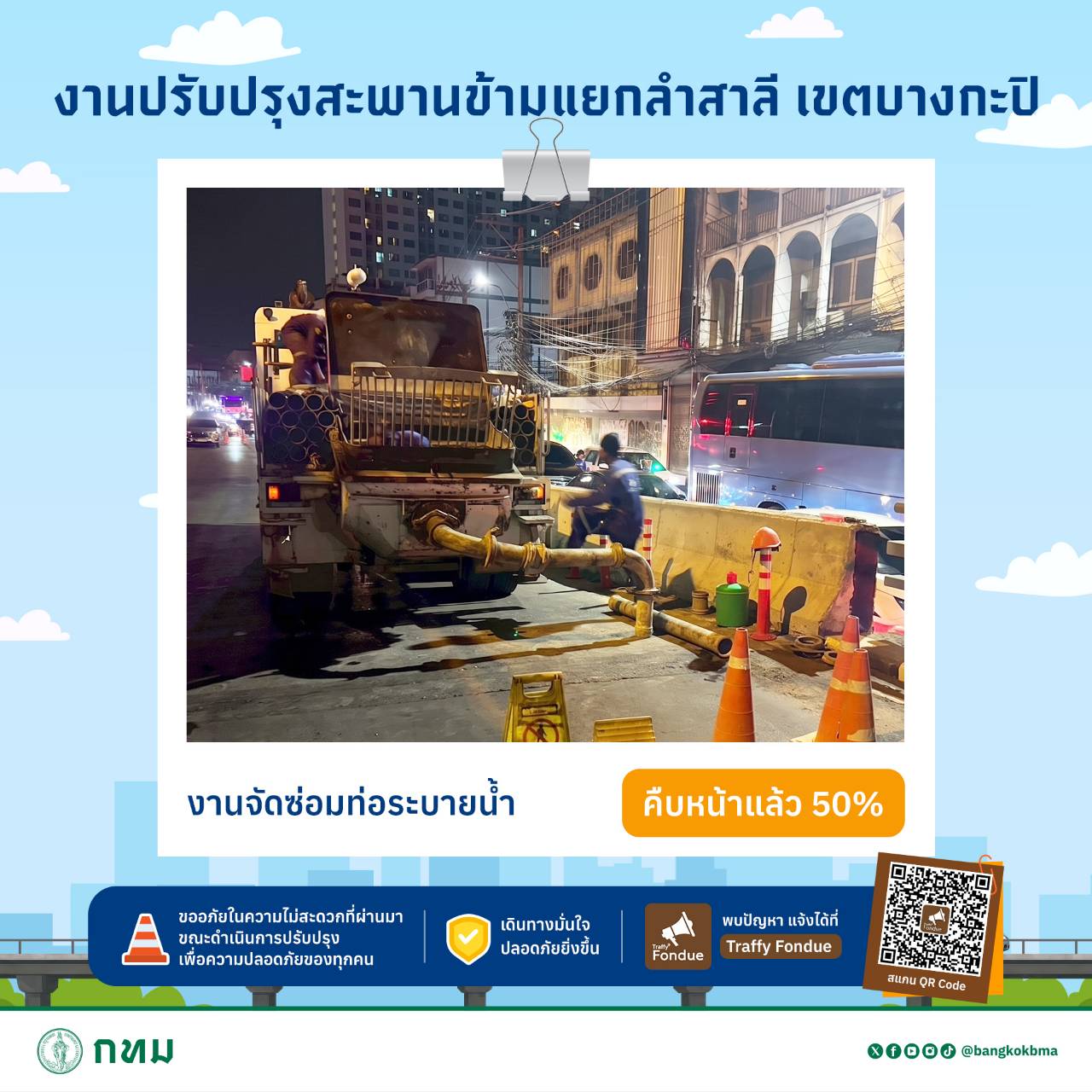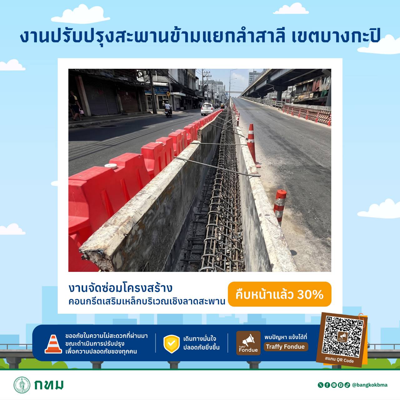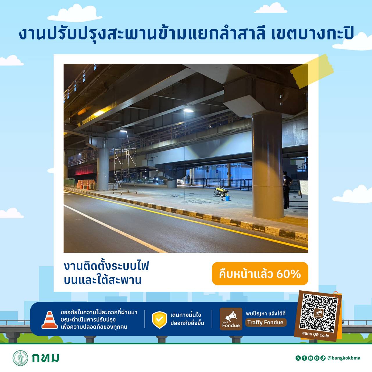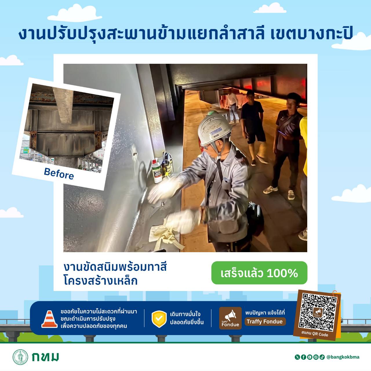 #กทม #ปลอดภัยดี #เดินทางดี #เมืองน่าอยู่สำหรับทุกคน #สะพานข้ามแยกลำสาลี #ซ่อมสะพาน #ซ่อมบำรุง #fyi