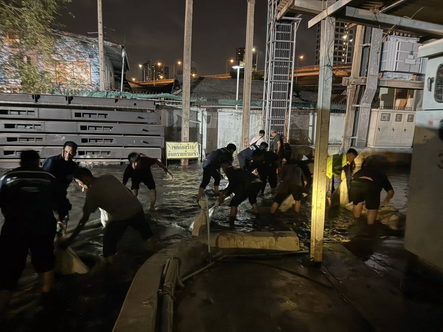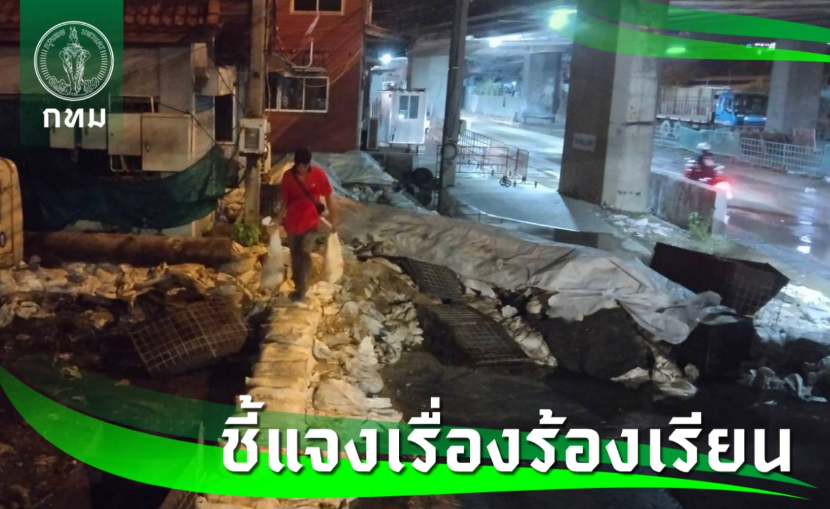 นายเจษฎา จันทรประภา ผู้อำนวยการสำนักการระบายน้ำ (สนน.) กทม. กล่าวกรณีเกิดเหตุพนังกั้นน้ำริมคลองพระโขนง บริเวณชุมชนเกาะกลางพระโขนง เขตคลองเตย มีรอยรั่วชำรุด 2 จุด ส่งผลให้น้ำไหลเข้าท่วมบ้านเรือนประชาชนและบริเวณท่าทรายว่า สนน. ได้เร่งดำเนินการแก้ไขปัญหาในพื้นที่บริเวณชุมชนเกาะกลางทันทีภายหลังเกิดเหตุ โดยบริเวณสถานีสูบน้ำพระโขนงได้แก้ไขเบื้องต้นด้วยการนำกระสอบทรายมาจัดเรียงเสริมแนวป้องกันน้ำ เพื่อปิดกั้นจุดรั่วและควบคุมสถานการณ์อย่างเร่งด่วน จนสามารถระบายน้ำออกจากพื้นที่ได้ และสถานการณ์กลับเข้าสู่ภาวะปกติเมื่อเวลาประมาณ 23.00 น. ของวันเดียวกัน (19 เม.ย. 69) ส่วนบริเวณท่าทราย ในช่วงเวลา 20.00–21.00 น. เกิดภาวะน้ำทะเลหนุนสูง ส่งผลให้น้ำในคลองพระโขนงซึ่งเชื่อมต่อกับแม่น้ำเจ้าพระยามีระดับสูงขึ้นและไหลเข้าท่วมพื้นที่บริเวณท่าทราย ถนนทางรถไฟสายเก่า ซึ่งอยู่ระหว่างดำเนินการก่อสร้างเขื่อนป้องกันน้ำท่วม โดยน้ำได้ไหลผ่านแนวกระสอบทรายชั่วคราวเข้าท่วมถนนและไหลลงสู่รางระบายน้ำที่เชื่อมเข้าด้านหลังสถานีสูบน้ำคลองเตย ซึ่งภายหลังได้รับแจ้งเหตุ หน่วยงานได้เร่งดำเนินการเสริมแนวกระสอบทรายและปิดกั้นน้ำโดยทันที ปัจจุบันสามารถควบคุมสถานการณ์และพื้นที่กลับเข้าสู่ภาวะปกติ ทั้งนี้ สนน. จะกำชับผู้รับจ้างโครงการก่อสร้างเขื่อนป้องกันน้ำท่วมบริเวณดังกล่าว ตรวจสอบความมั่นคงแข็งแรงของแนวป้องกันชั่วคราว พร้อมทั้งรายงานสถานการณ์อย่างใกล้ชิดต่อไป
