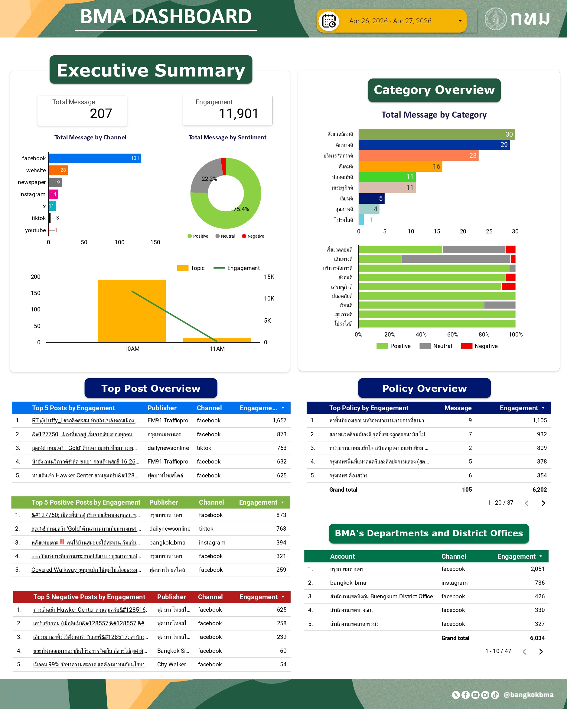 ภาพรวมการกล่าวถึงกรุงเทพมหานครในสื่อออนไลน์ วันที่ 27 เม.ย. 69