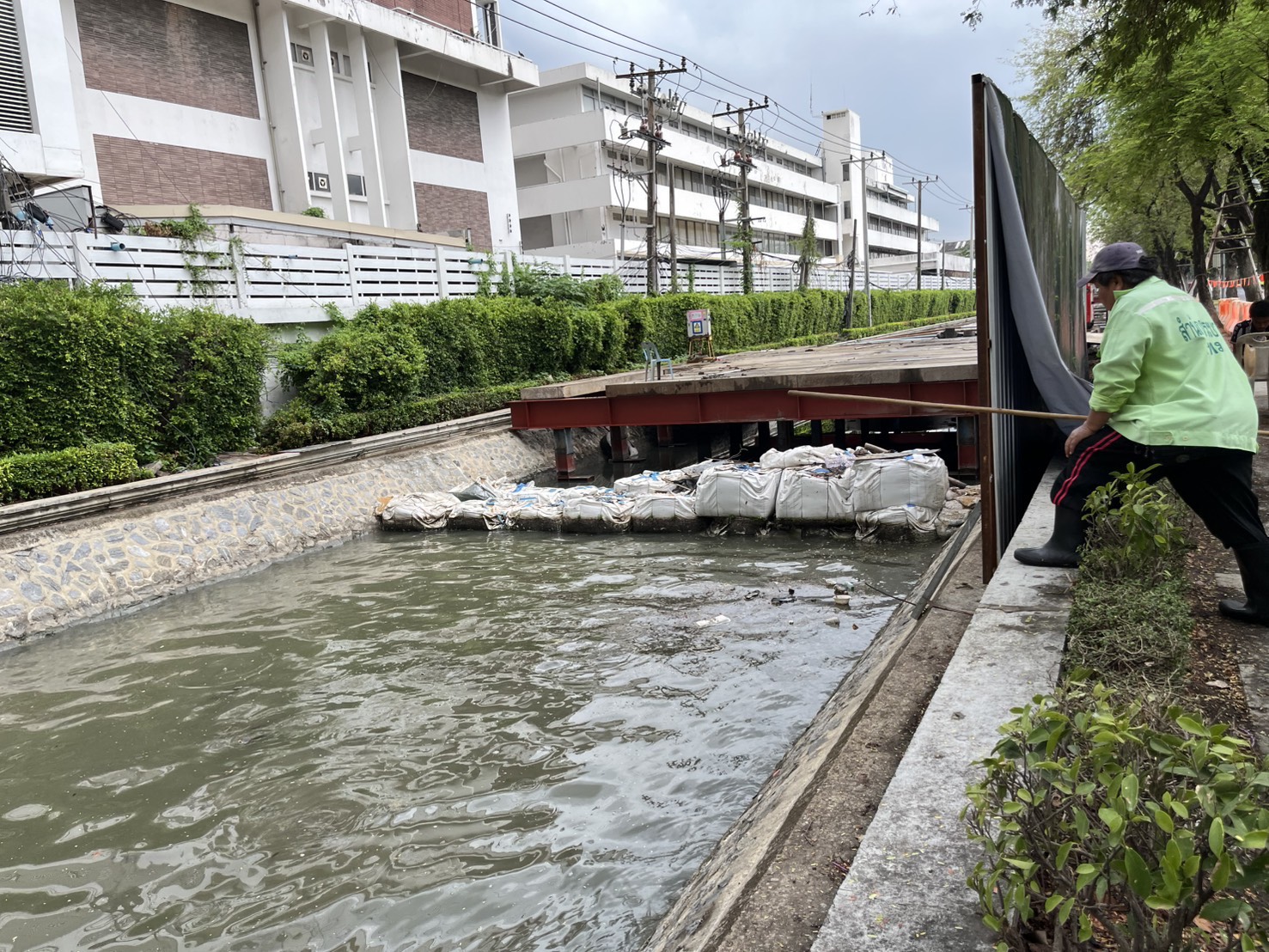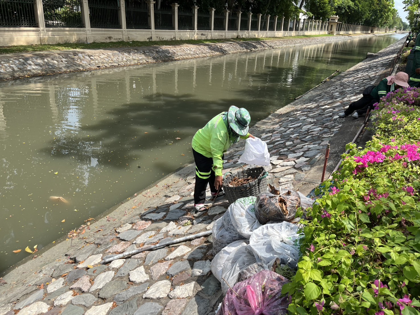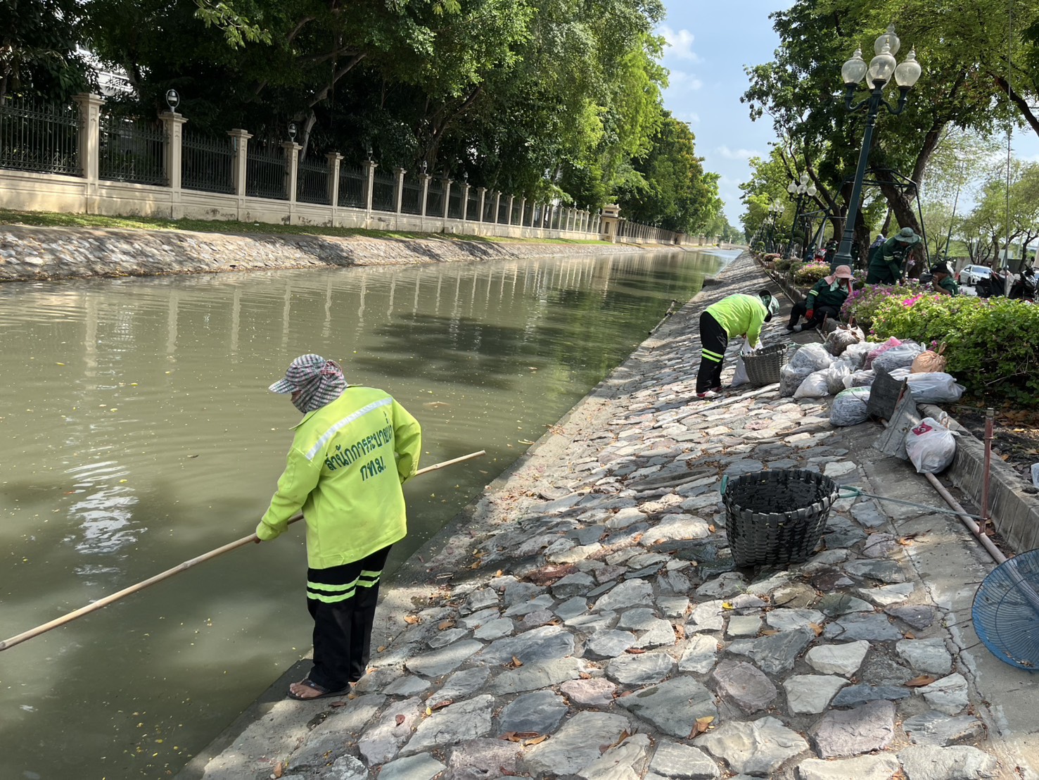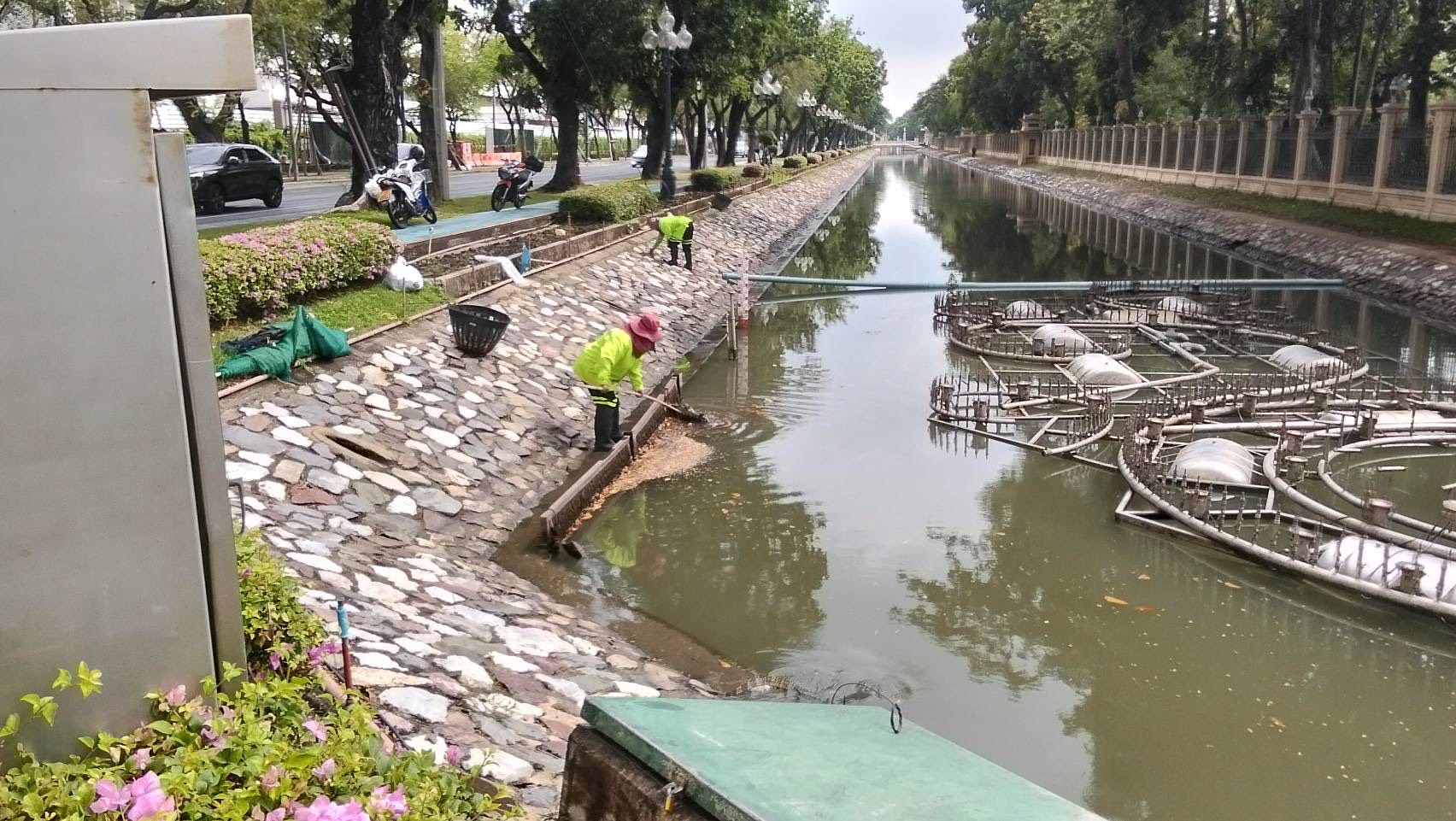 เจ้าหน้าที่ ดำเนินการตักใบไม้กำจัดวัชพืชคูน้ำรอบพระราชวังสวนจิตรลดา พื้นที่เขตดุสิต