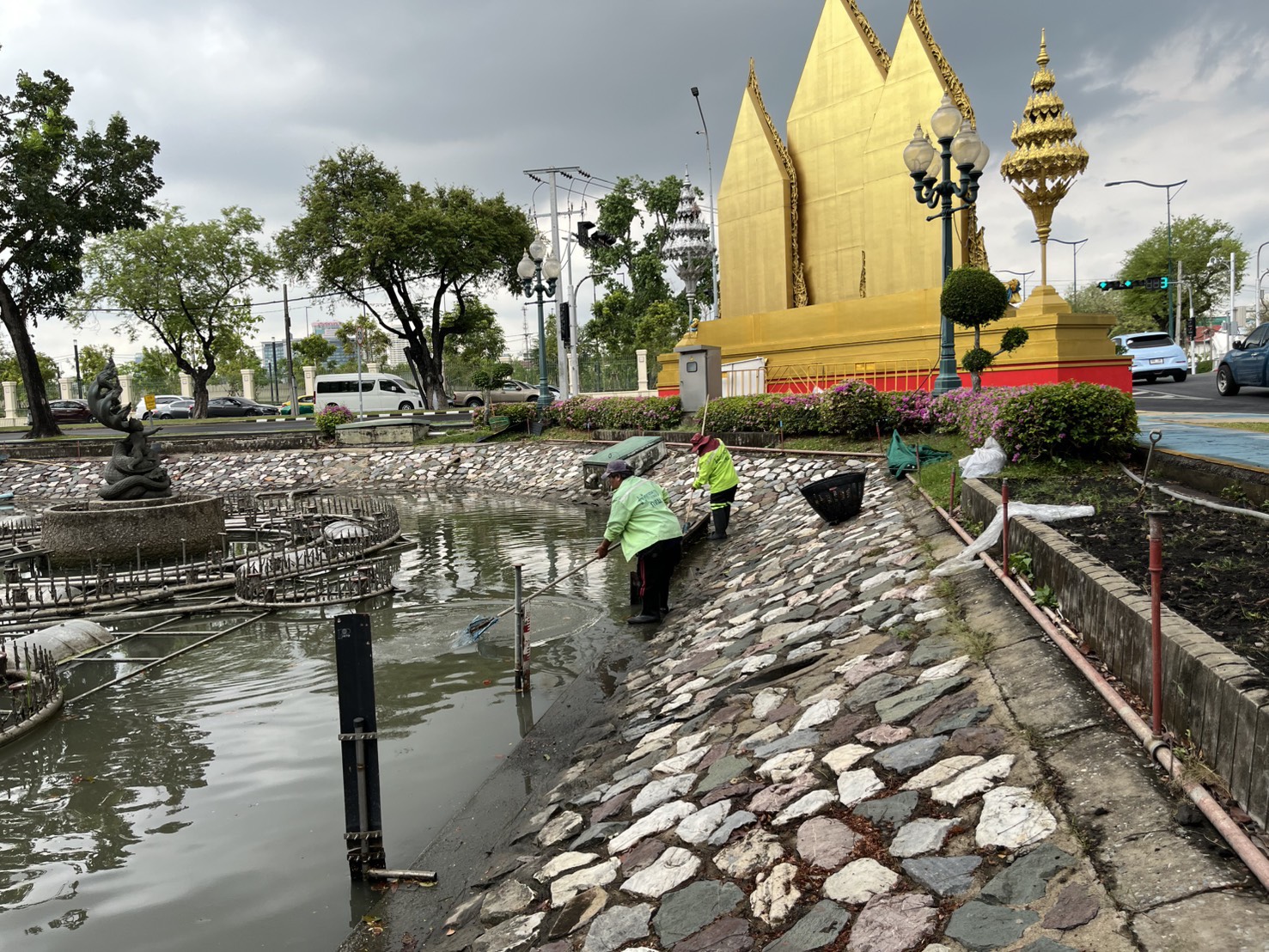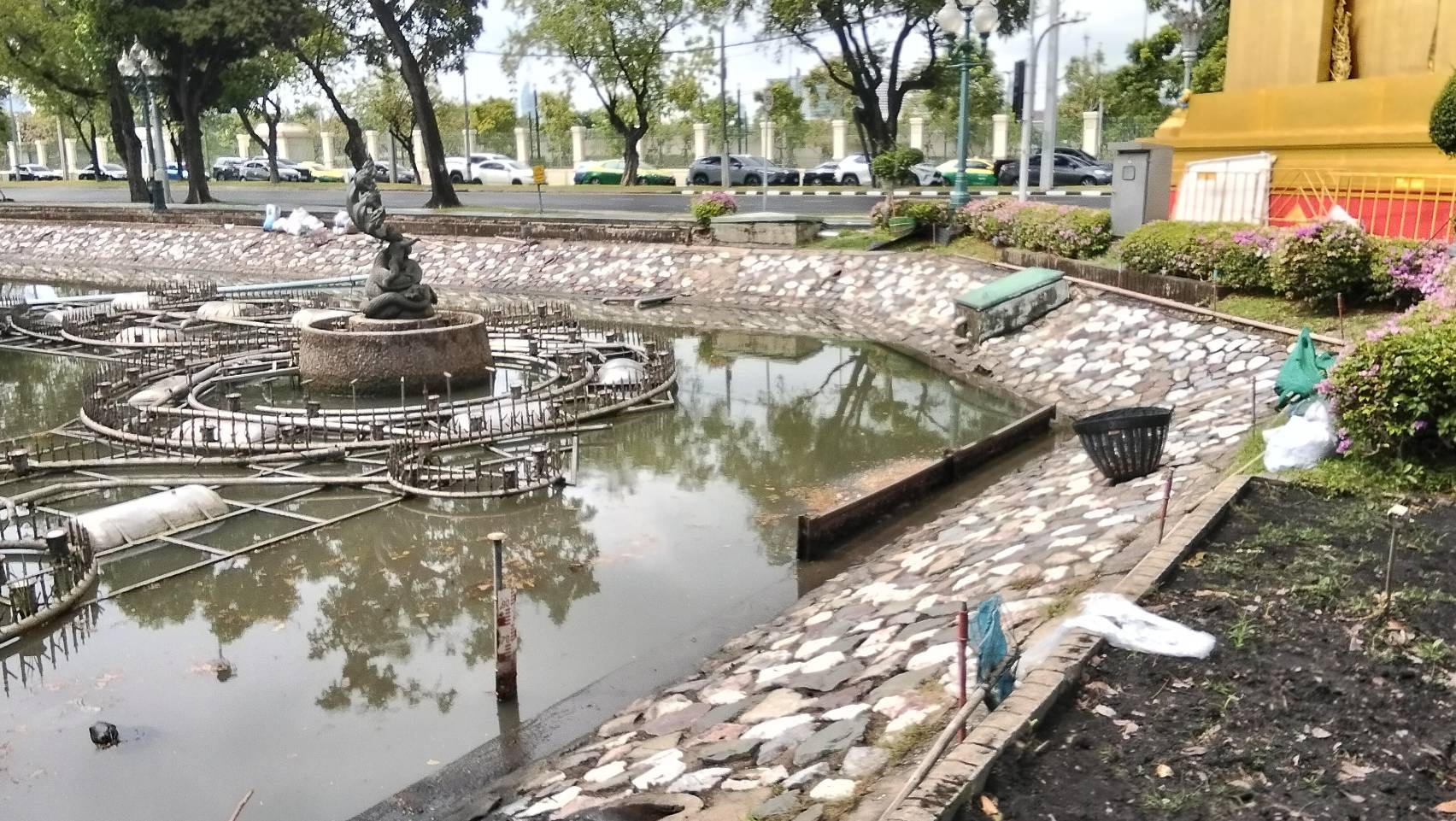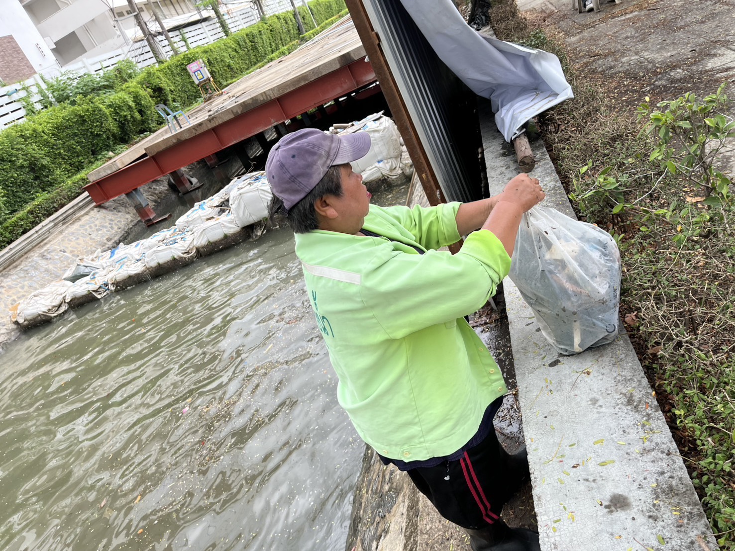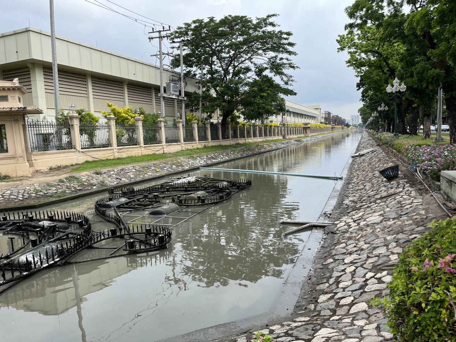 เจ้าหน้าที่ ดำเนินการตักใบไม้กำจัดวัชพืชคูน้ำรอบพระราชวังสวนจิตรลดา พื้นที่เขตดุสิต