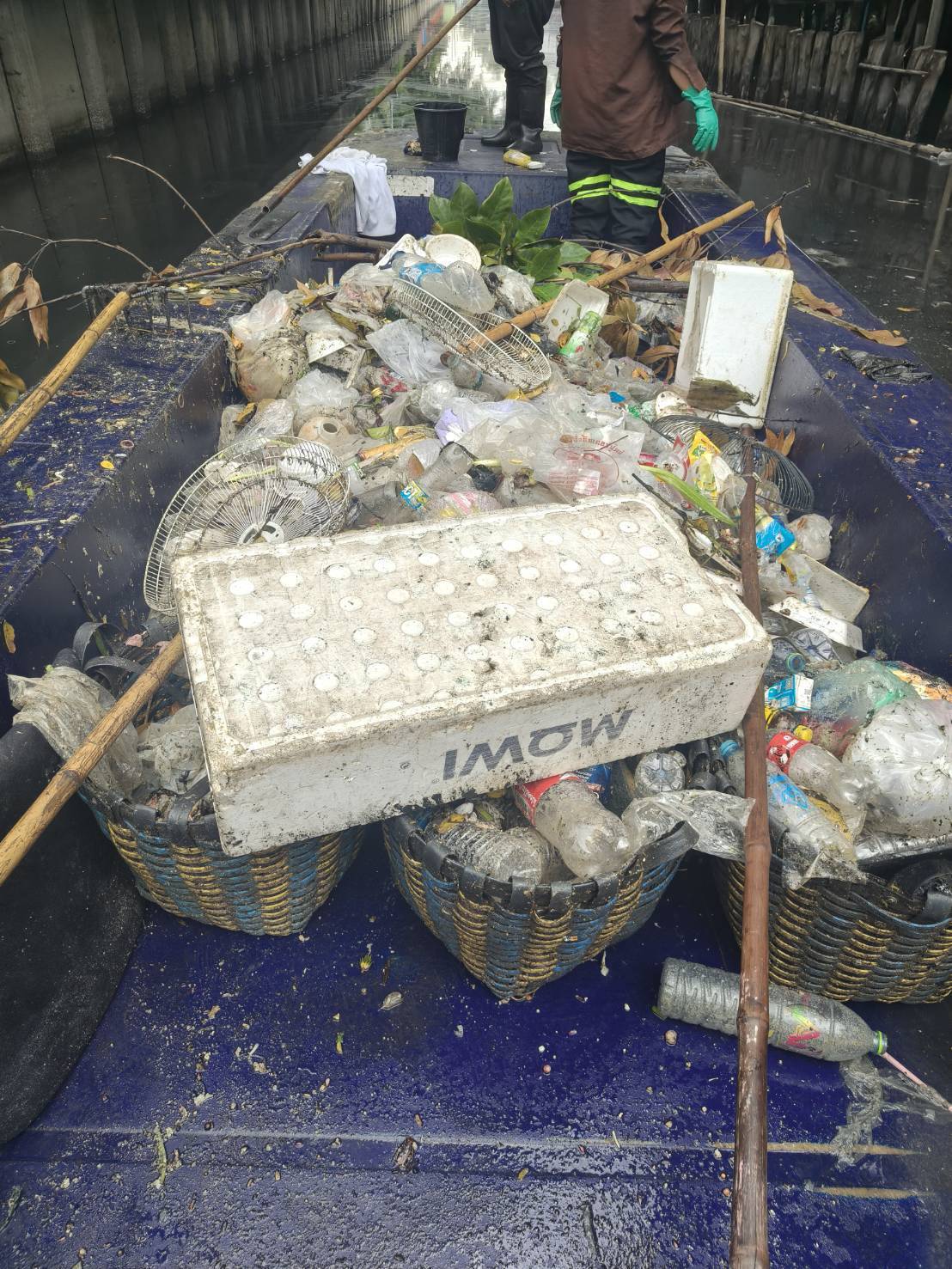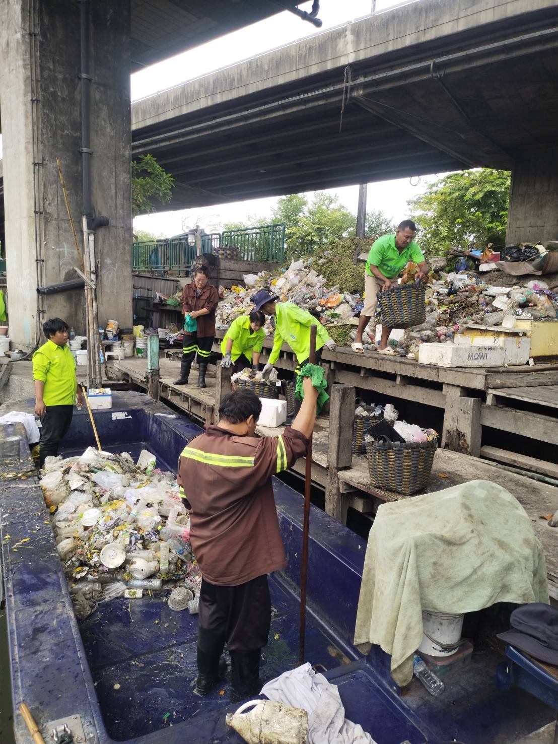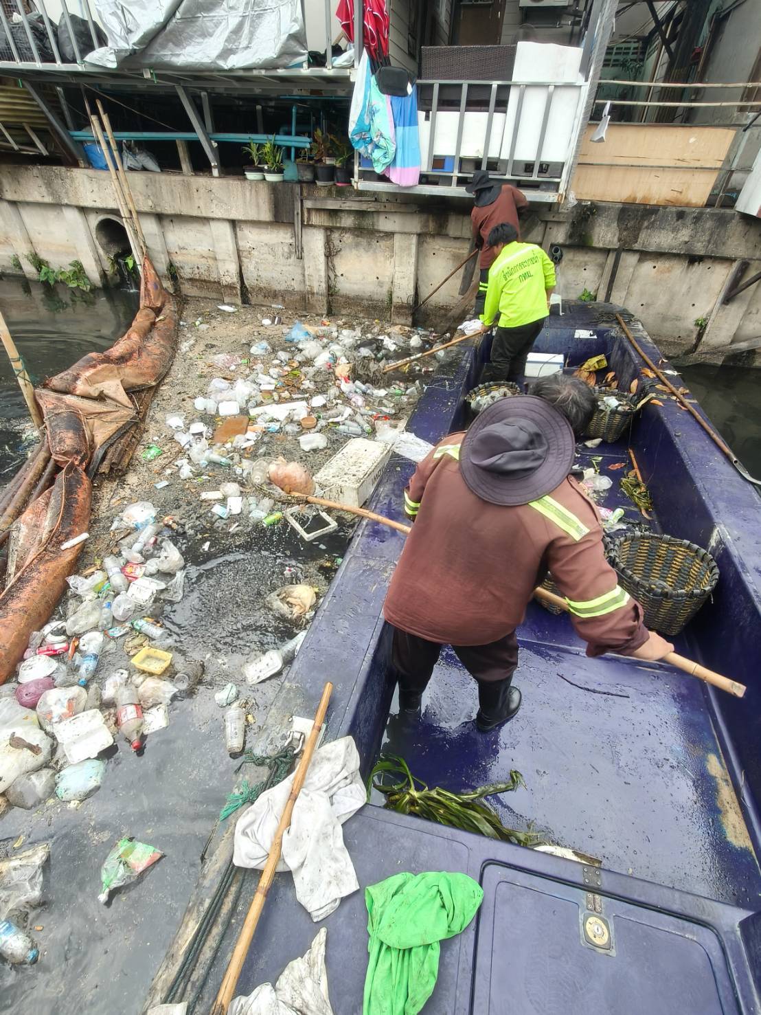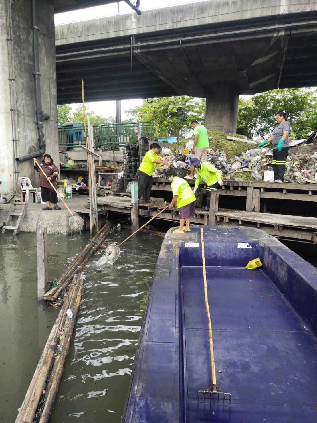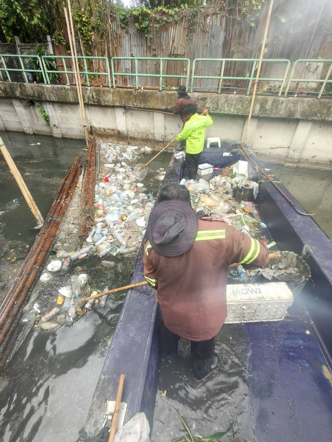 เจ้าหน้าที่ ตักขยะและวัชพืชคลองเตย(คลองหัวลำโพง)ช่วงสถานีสูบน้ำคลองเตยถึงตลาดคลองเตย พื้นที่เขตคลองเตย