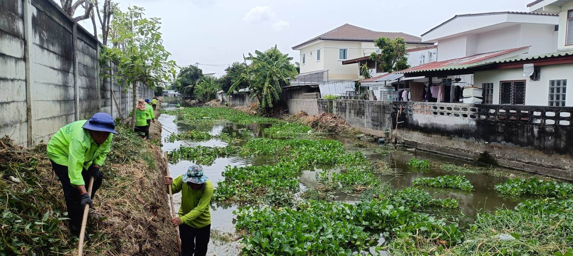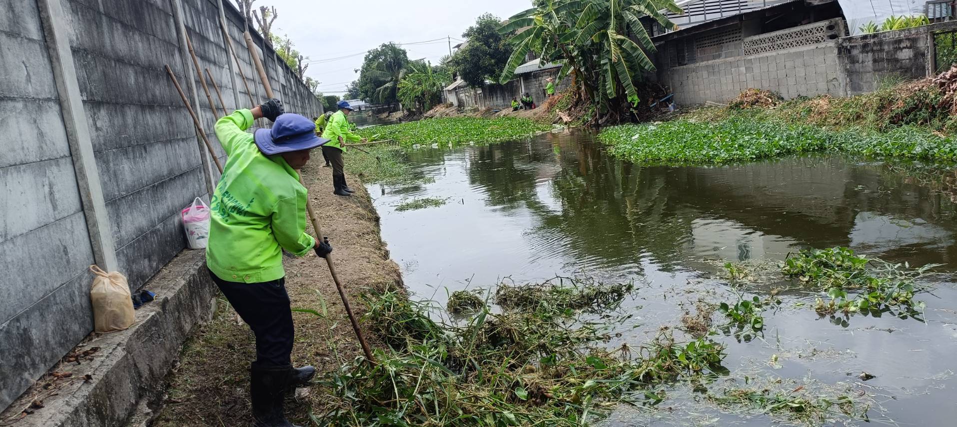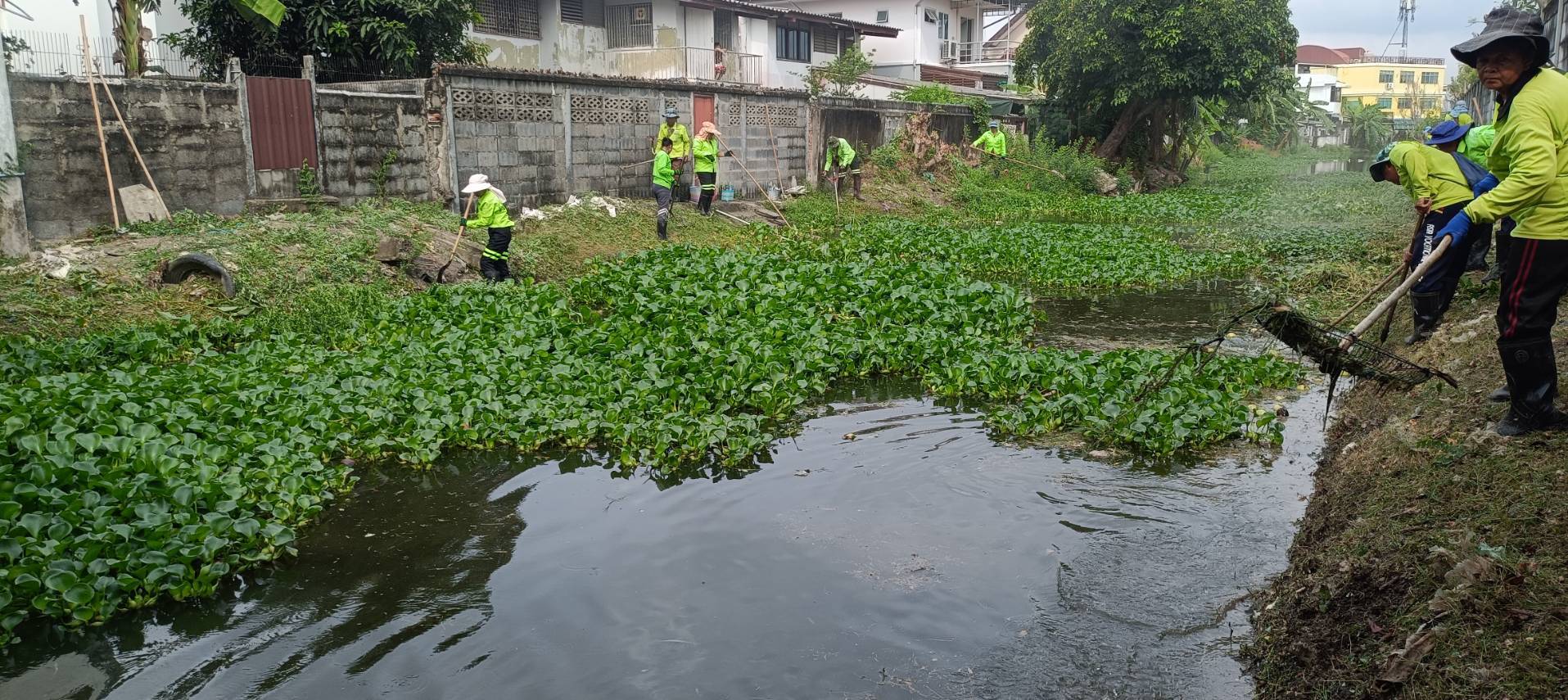 เจ้าหน้าที่ จัดเก็บวัชพืชตัดหญ้าคลองหนองบอน ซอยเฉลิมพระเกียรติ ร.9/22 พื้นที่เขตประเวศ