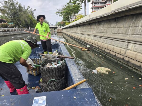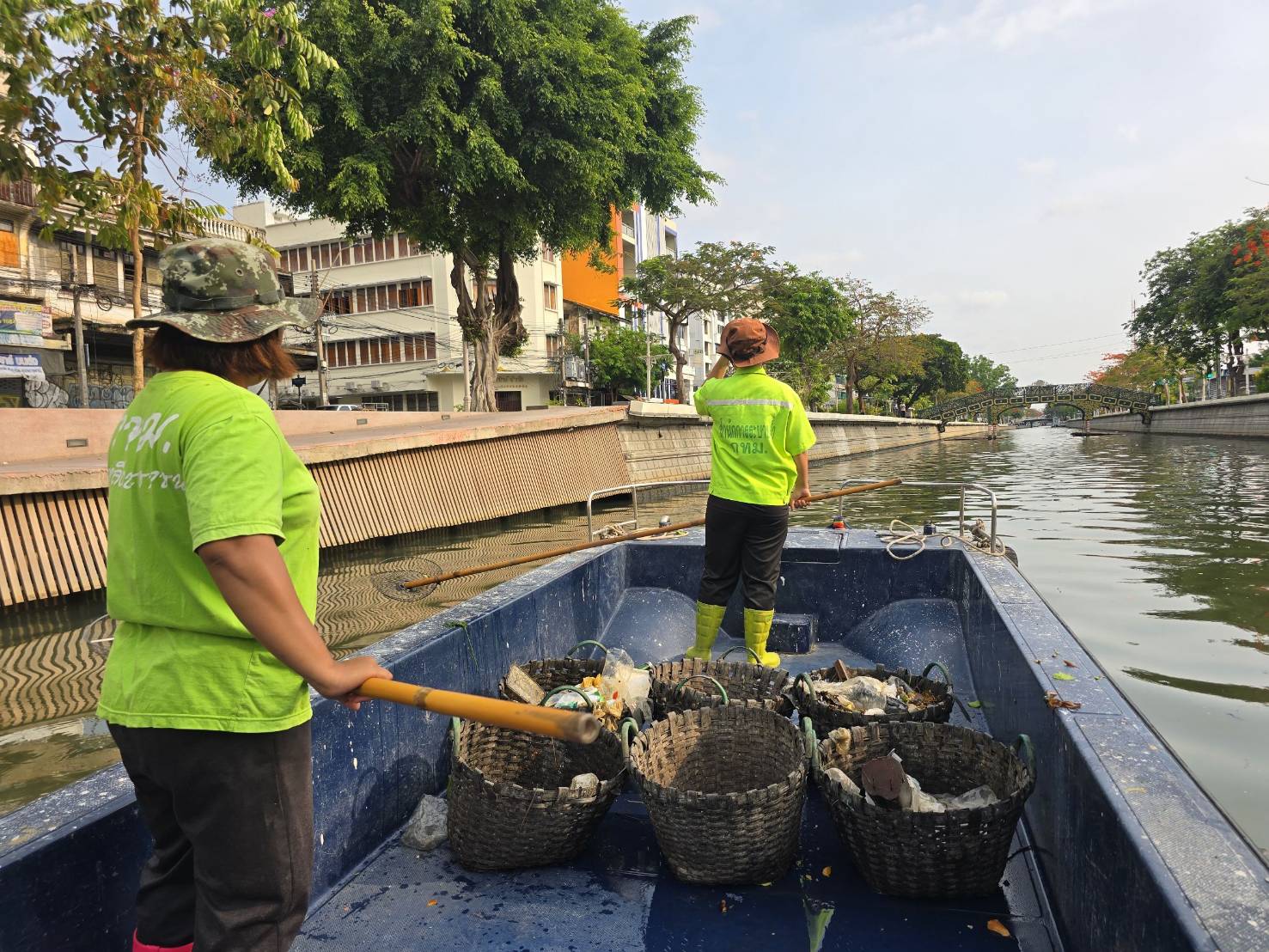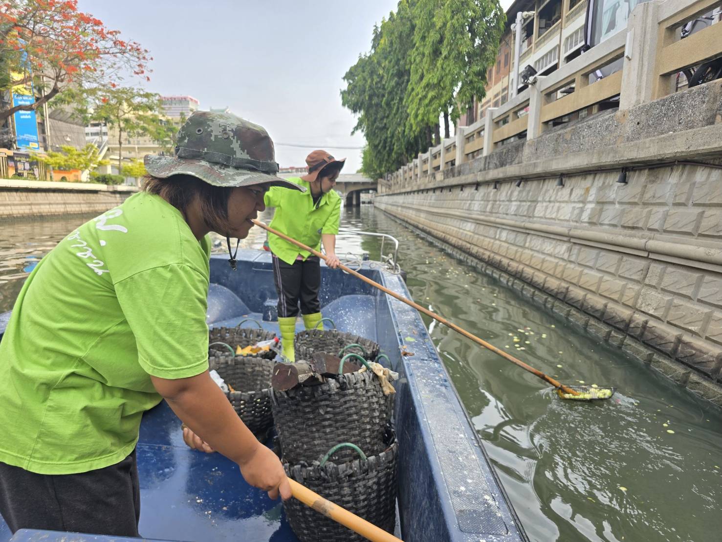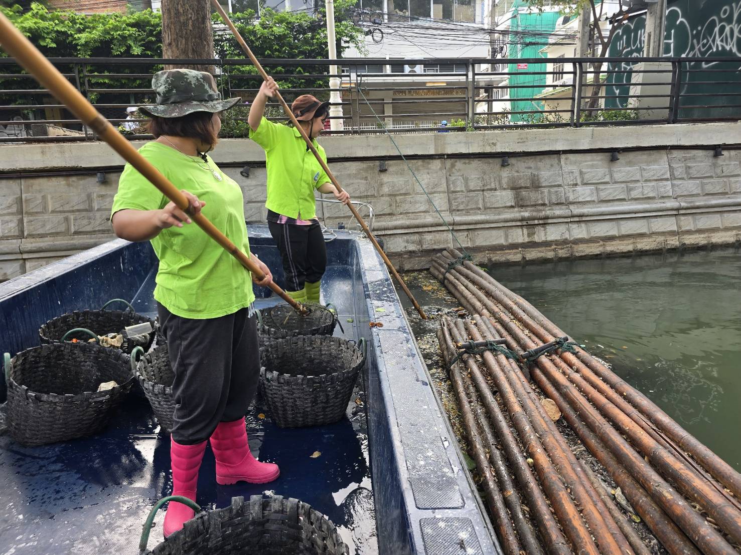 เจ้าหน้าที่ เก็บขยะคลองผดุงกรุงเกษม ช่วงสถานีสูบน้ำกรุงเกษมสะพานเจริญสวัสดิ์-สะพานนพวงศ์-สะพานกษัตริย์ศึก ถึงสี่แยกมหานาค พื้นที่เขตปทุมวันและเขตป้อมปราบศัตรูพ่าย