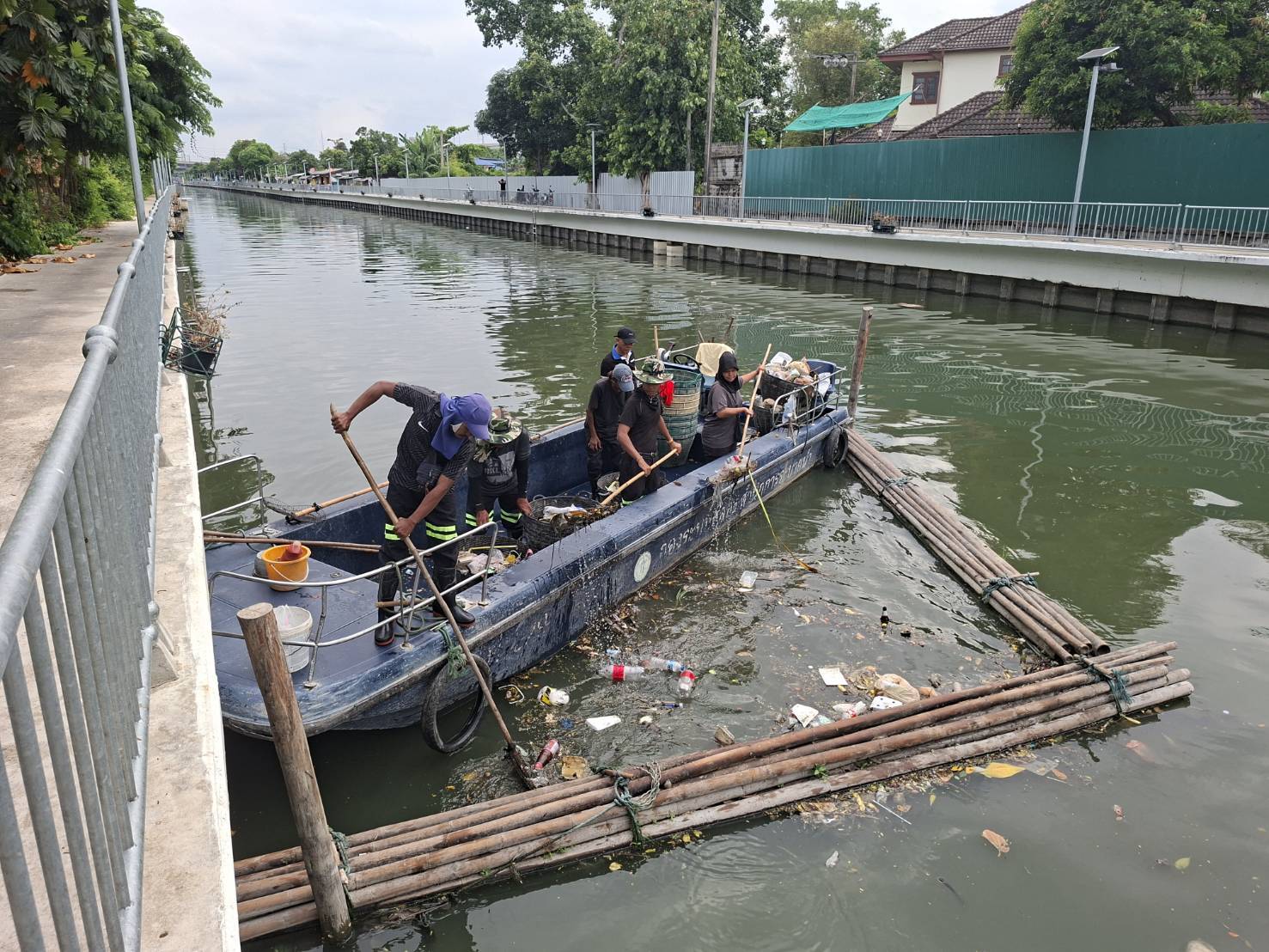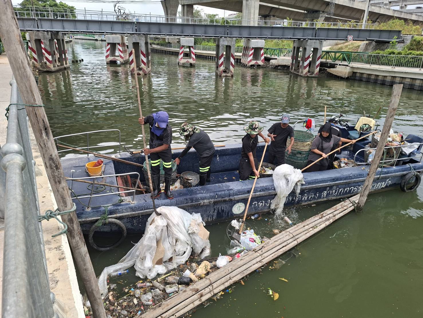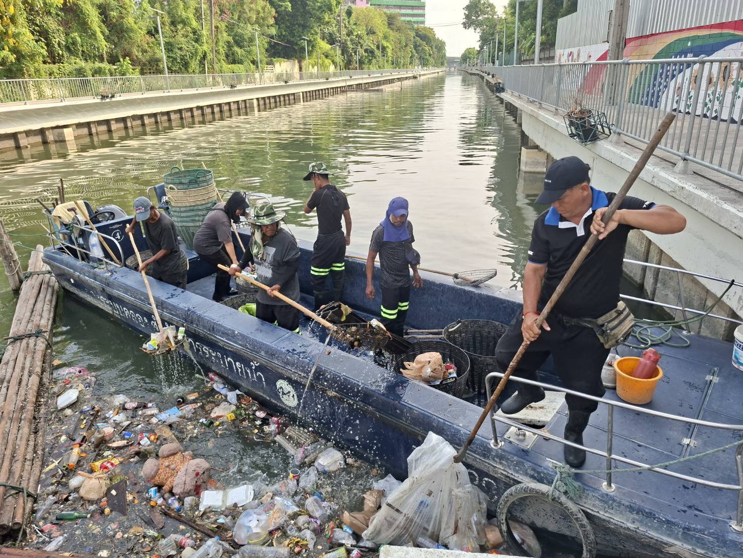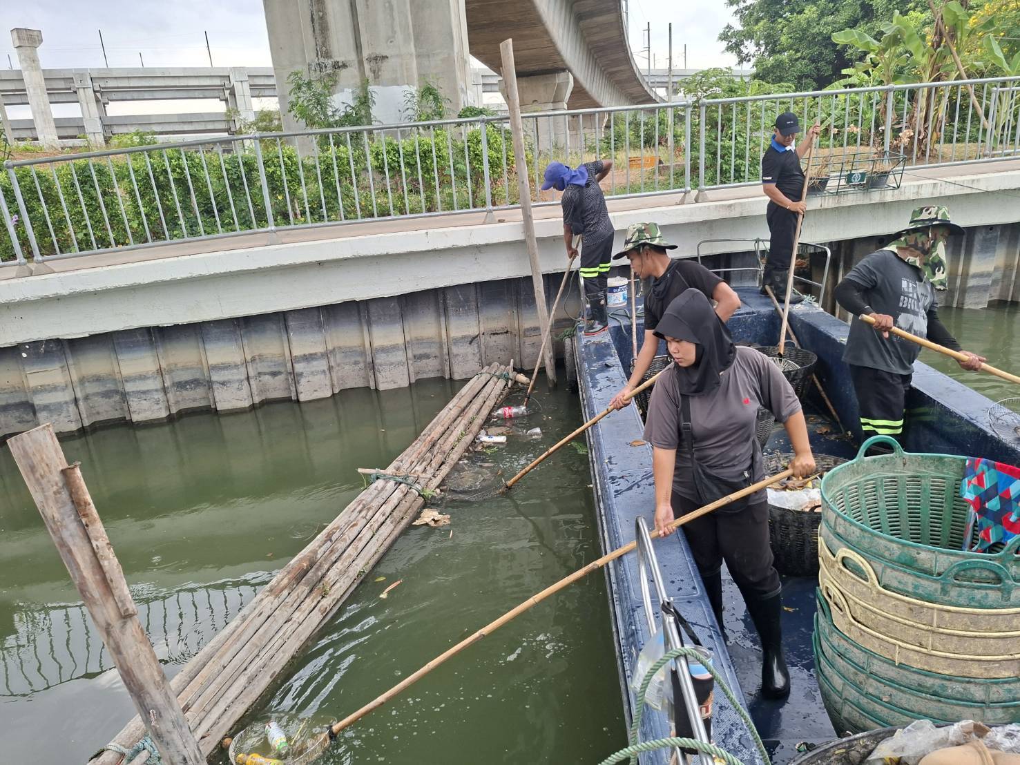 เจ้าหน้าที่ เก็บขยะและวัชพืชคลองเปรมประชากร ช่วงชุมชนตึกแดงบางซื่อเขตบางซื่อถึงสะพานงามวงศ์วานเขตจตุจักร