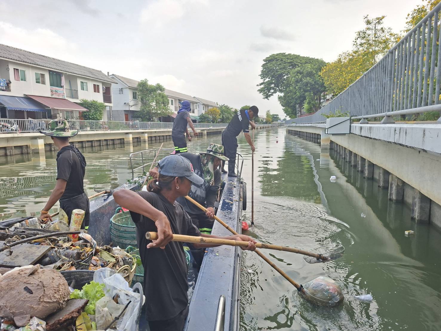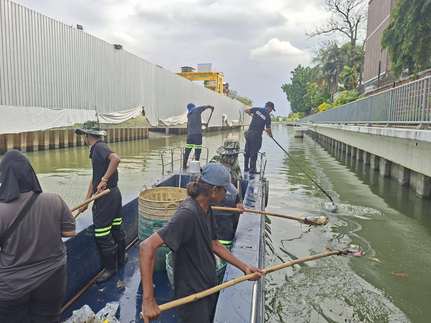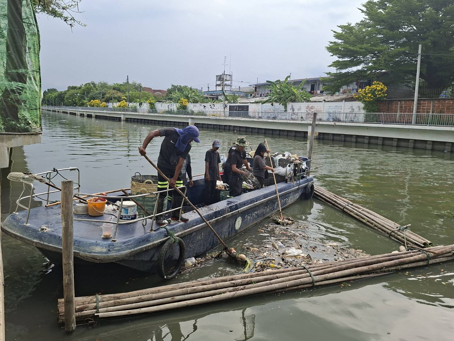เจ้าหน้าที่ เก็บขยะและวัชพืชคลองเปรมประชากร ช่วงชุมชนตึกแดงบางซื่อเขตบางซื่อถึงสะพานงามวงศ์วานเขตจตุจักร