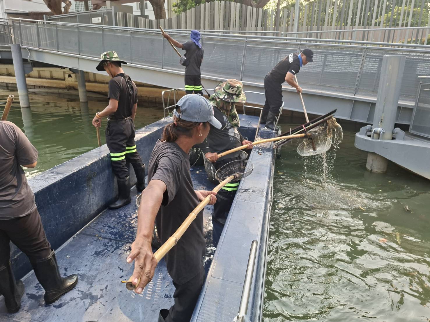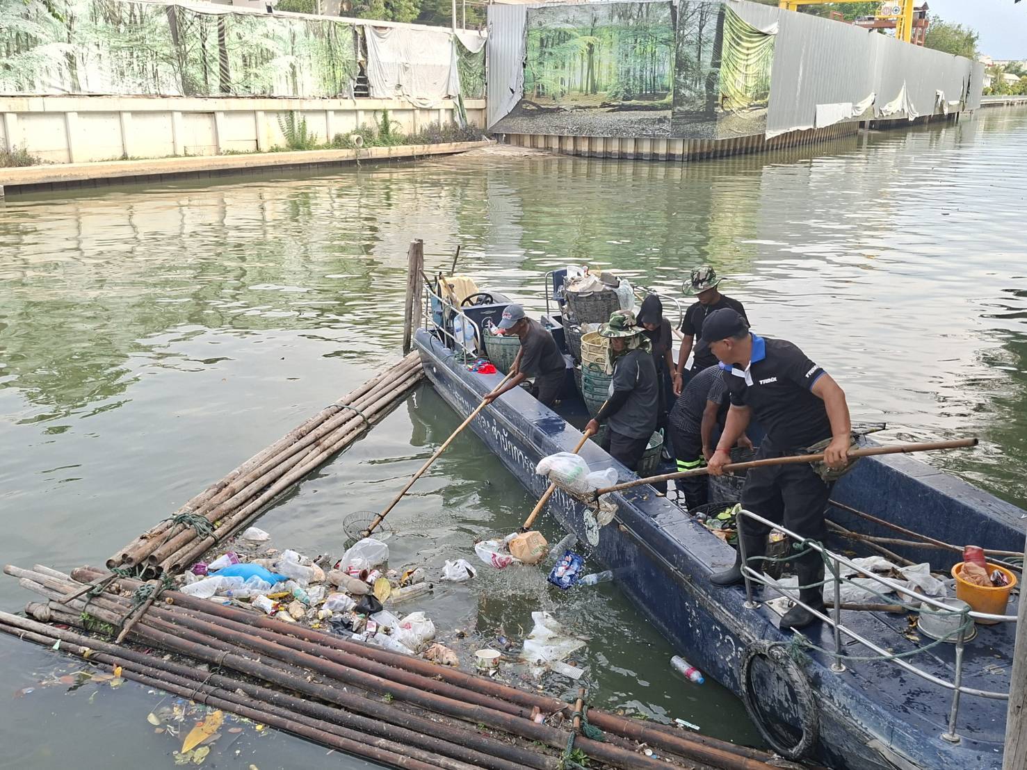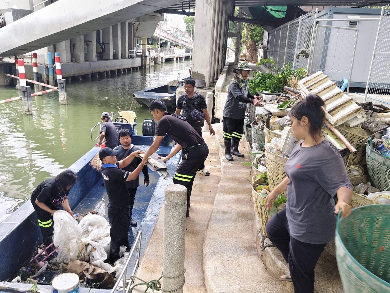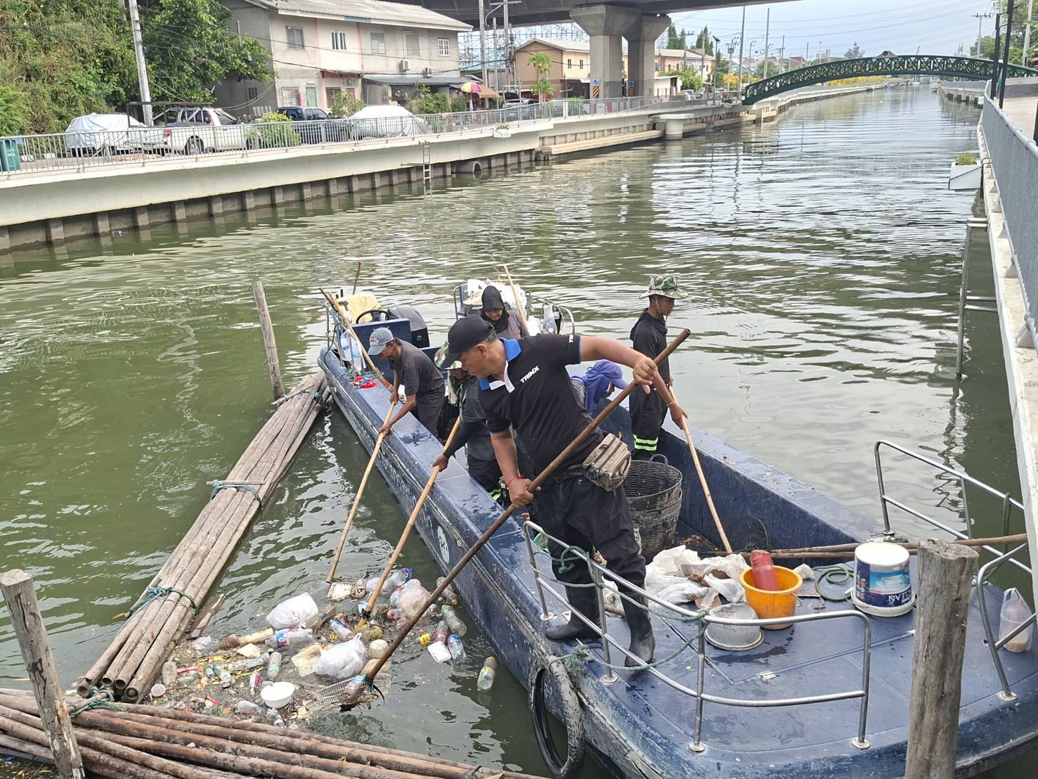 เจ้าหน้าที่ เก็บขยะและวัชพืชคลองเปรมประชากร ช่วงชุมชนตึกแดงบางซื่อเขตบางซื่อถึงสะพานงามวงศ์วานเขตจตุจักร