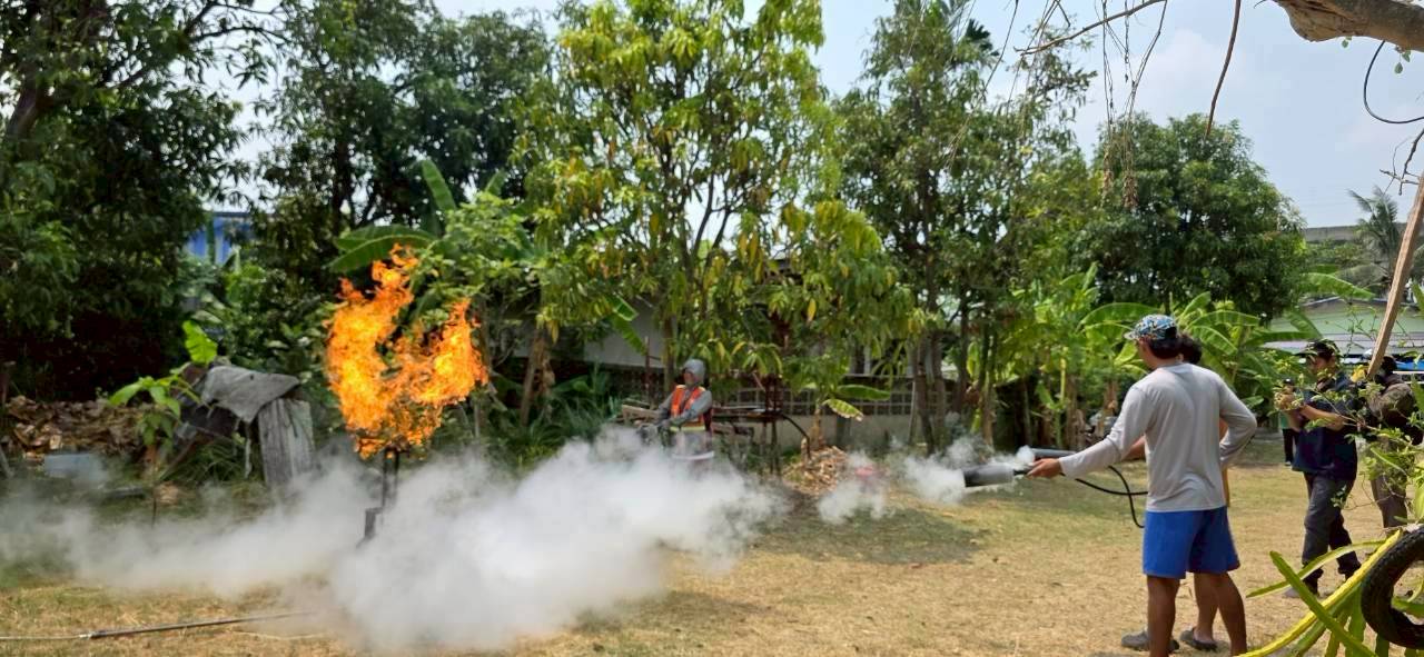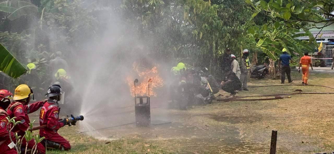 นายภิรมย์ อยู่มาก หน.สดพ. และ เจ้าหน้าที่ ร่วมฝึกซ้อมแผนเผชิญเหตุสาธารณภัย(อัคคีภัย)ระดับเขต ร่วมกับสำนักงานเขตลาดกระบัง ชุมชนร่วมใจพัฒนา เขตลาดกระบัง กรุงเทพมหานคร