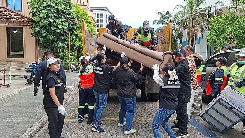 (25 เม.ย. 69) นายสมบัติ เครือกีรติธรรม ผู้อำนวยการเขตห้วยขวาง พร้อมด้วย นายประพฤทธ์ หาญกิจจะกุล สมาชิกสภากรุงเทพมหานคร เขตห้วยขวาง และทีมผู้บริหารเขต เจ้าหน้าที่ฝ่ายรักษาฯ ฝ่ายเทศกิจ เก็บขยะชิ้นใหญ่ ขยะอันตราย และสิ่งของเหลือใช้ เพื่อนำไปกำจัดอย่างถูกวิธี ภายในซอยรุ่งเรือง เขตห้วยขวาง