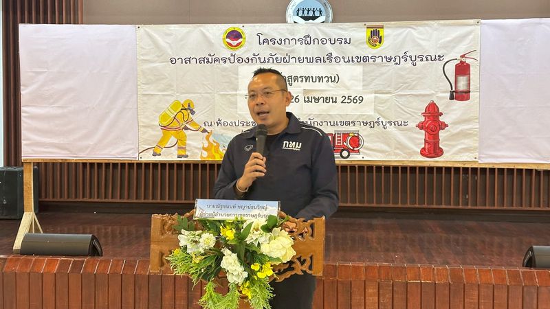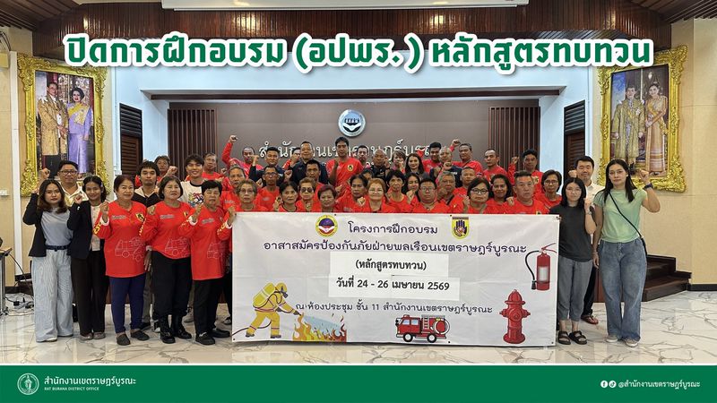 วันที่ 26 เมษายน 2569 นายณัฐชนนท์ ชญาน์ธนวิชญ์ ผู้ช่วยผู้อำนวยการเขตราษฎร์บูรณะ เป็นประธานในพิธีปิดการฝึกอบรมอาสาสมัครป้องกันภัยฝ่ายพลเรือน (อปพร.) หลักสูตรทบทวน ณ ห้องประชุมรักษ์เจ้าพระยา 1 ชั้น 11 สำนักงานเขตราษฎร์บูรณะ