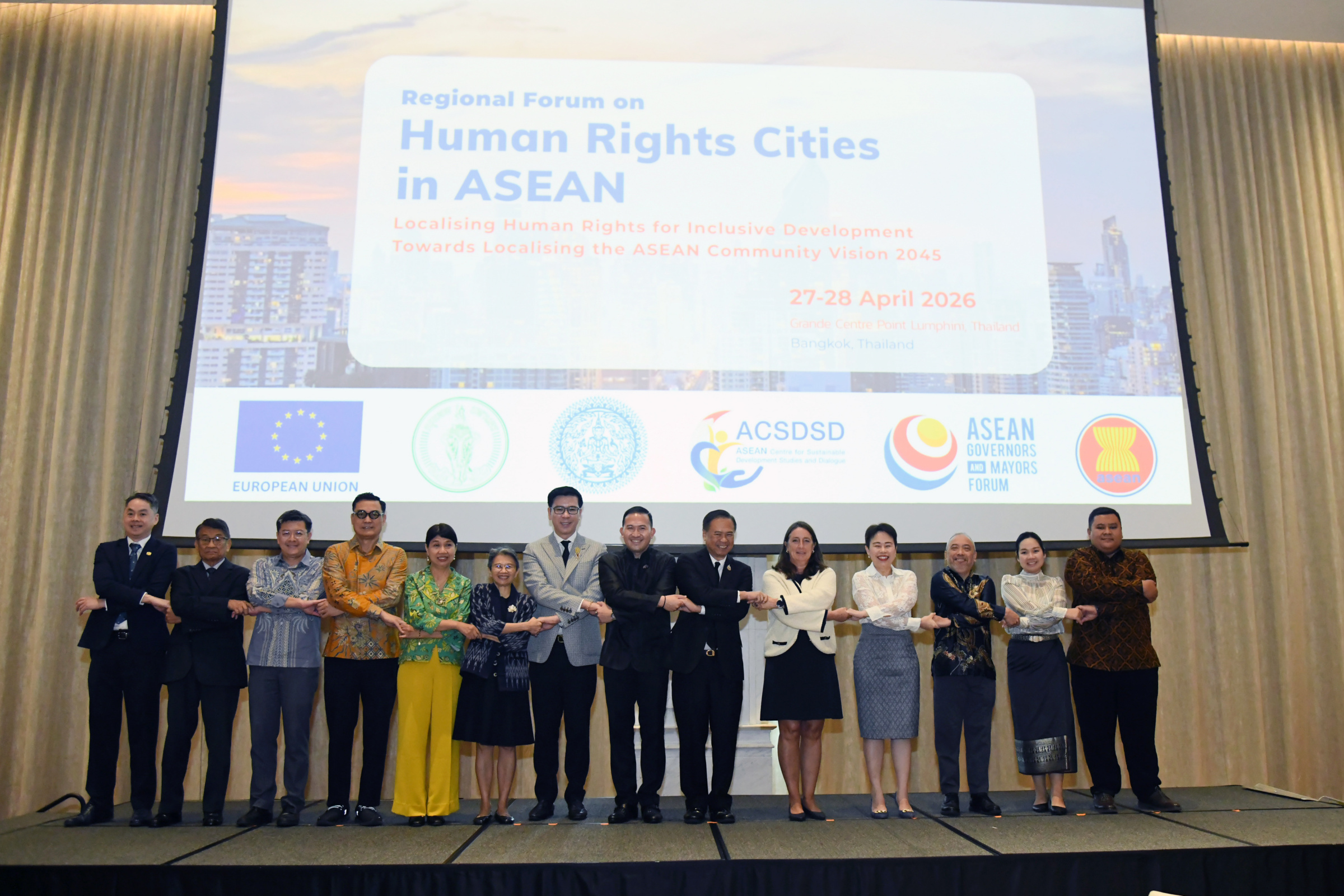 (27 เม.ย. 69) รศ.ทวิดา กมลเวชช รองผู้ว่าราชการกรุงเทพมหานคร ร่วมกล่าวต้อนรับและอภิปรายเรื่อง “บทบาทของรัฐบาลท้องถิ่นในการสร้างเมืองที่ครอบคลุมและมีส่วนร่วม” ในการประชุมระดับภูมิภาคว่าด้วยเมืองสิทธิมนุษยชนแห่งภูมิภาคอาเซียนเรื่อง “การปรับใช้สิทธิมนุษยชนในระดับท้องถิ่นเพื่อการพัฒนาที่ครอบคลุม” (Regional Forum on Human Rights Cities in ASEAN: Localising Human Rights for Inclusive Development) โดยมี นายวิชาวัฒน์ อิศรภักดี ผู้แทนรองนายกรัฐมนตรีและรัฐมนตรีว่าการกระทรวงการต่างประเทศ กล่าวเปิดงาน ณ ห้องประชุม Lumphini 2 ชั้น 10 โรงแรมแกรนด์เซ็นเตอร์พอยท์ ลุมพินี เขตสาทร