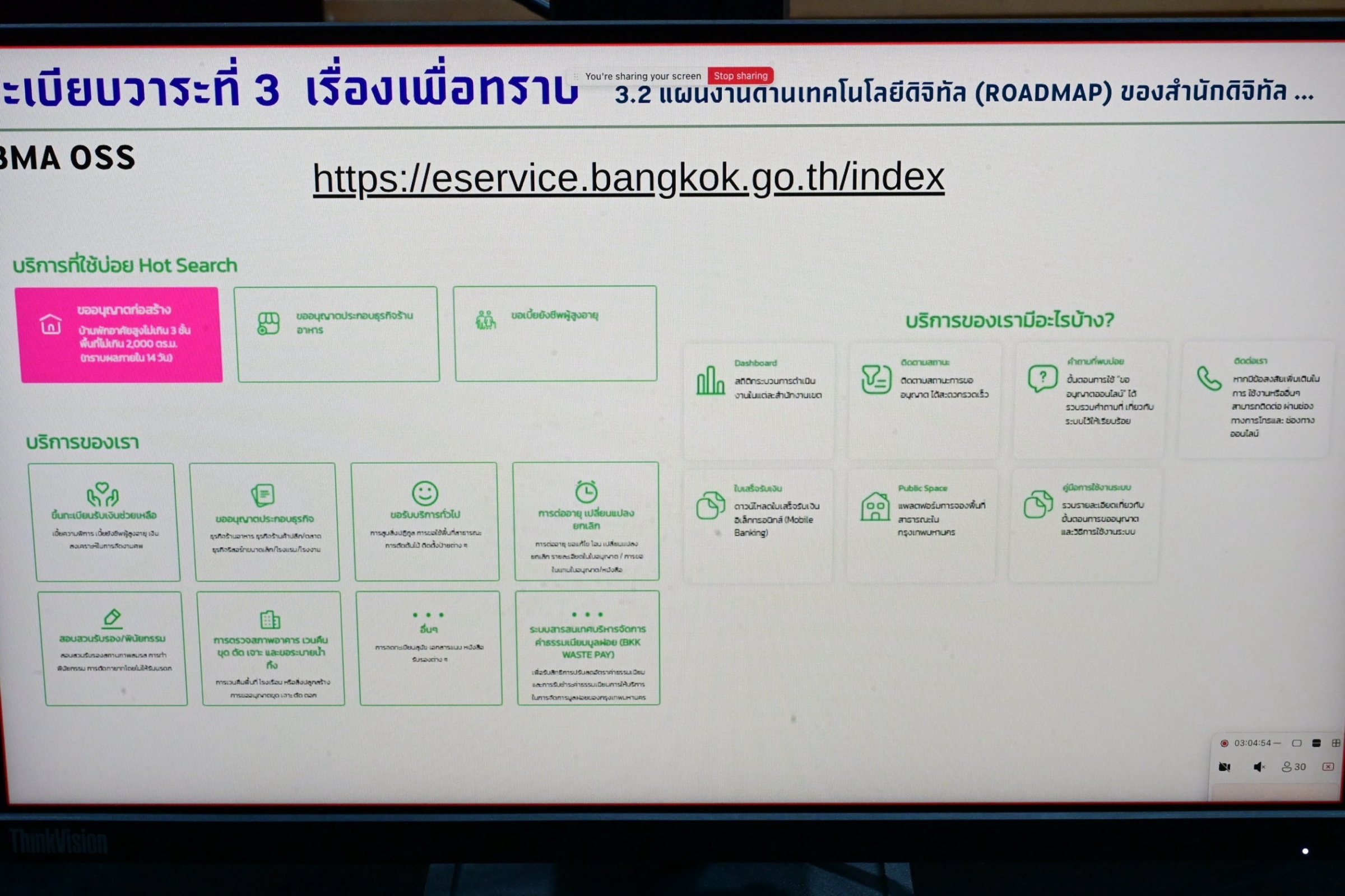 ในการประชุมวันนี้ รองปลัดกรุงเทพมหานคร มีความเป็นห่วงในการดำเนินงานเนื่องจากกรุงเทพมหานครเป็นองค์กรขนาดใหญ่ ในการแต่งตั้งคณะกรรมการดิจิทัลควรให้มีการตั้งผู้อำนวยการเขตทั้ง 50 เขต เข้ามาเป็นคณะกรรมการด้วย อีกทั้งให้มีการจัดทำแผนงานด้านเทคโนโลยีดิจิทัล (Roadmap) ที่ชัดเจน มีกระบวนการ มีการติดตาม รวมถึงหารือกับหน่วยงานที่เกี่ยวข้อง มีการจัดสรรงบประมาณ จัดลำดับความสำคัญในการดำเนินการ พิจารณาวิธีการที่เหมาะสมเพื่อให้ได้ข้อมูล รายละเอียด เพื่อความเข้าใจและความแม่นยำของแต่ละหน่วยงานที่ต้องส่งข้อมูลและสื่อสารต่อ