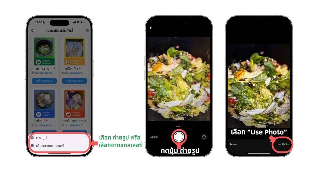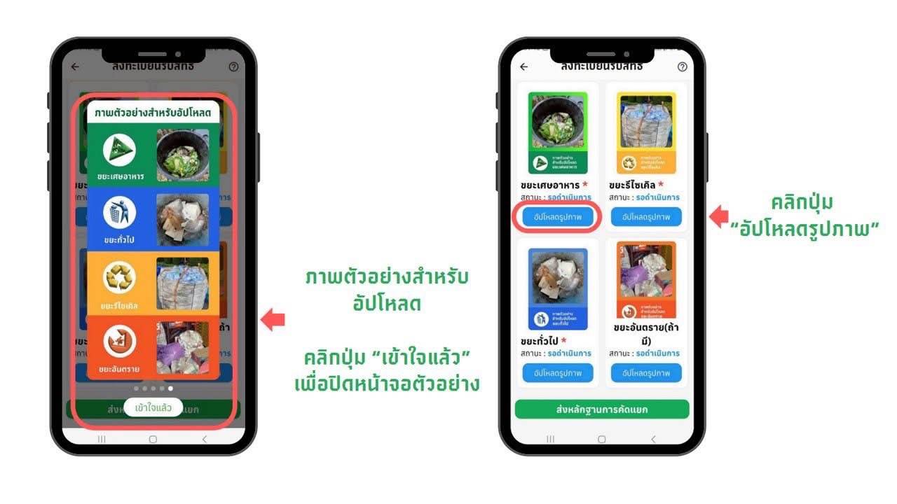 - ส่งภาพยืนยัน ถ่ายรูปหลักฐานการคัดแยกขยะ 4 ประเภท (เศษอาหาร, รีไซเคิล, ขยะทั่วไป, ขยะอันตราย (ถ้ามี))