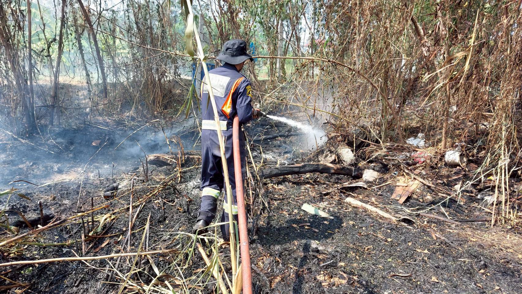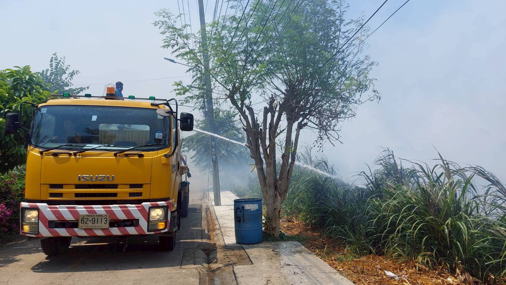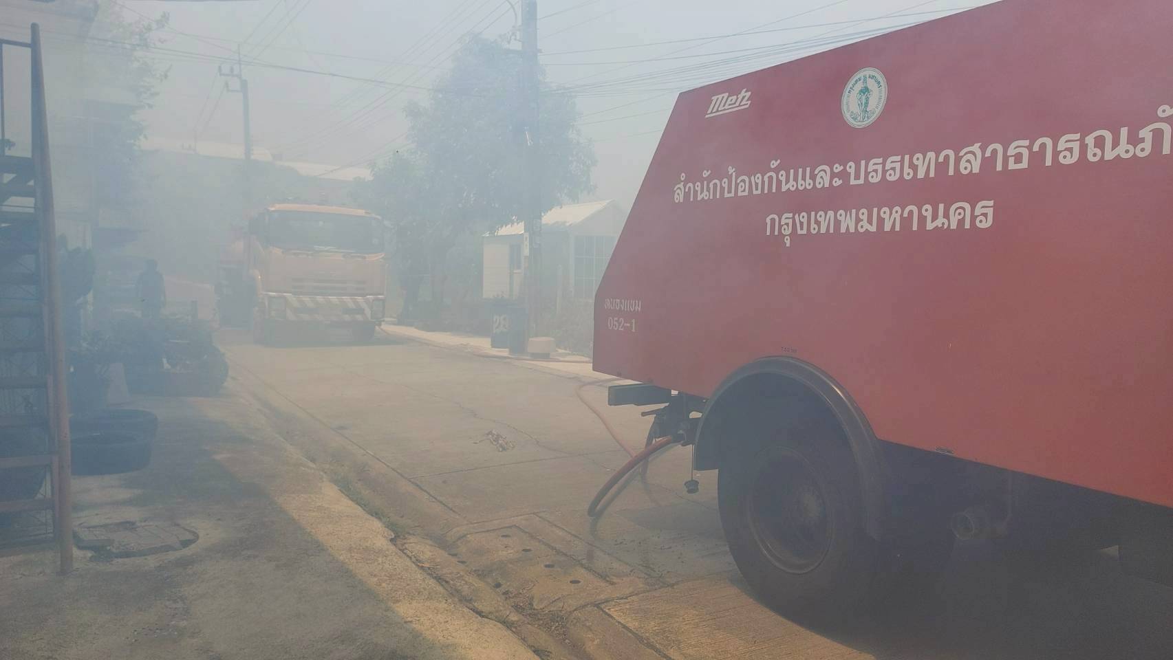 จนท.ส.ดพ.หนองแขมและ รถน้ำเขตใช้น้ำทำการดับเพลิงสงบ