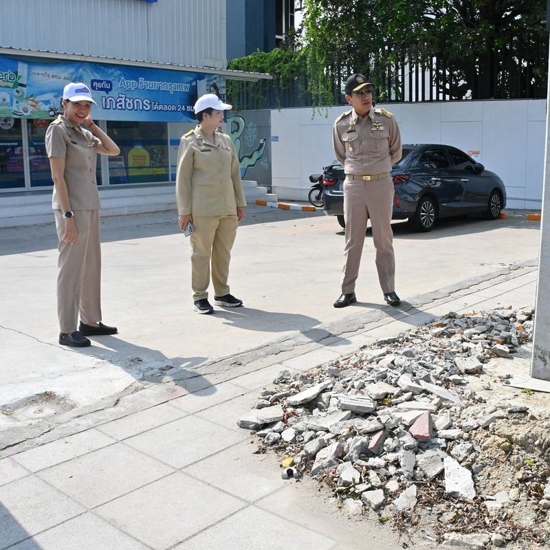 ✅ ซ่อมแซมจุดชำรุด : ตรวจพบกระเบื้องทางเท้าชำรุดบางช่วงที่อาจก่อให้เกิดอันตราย