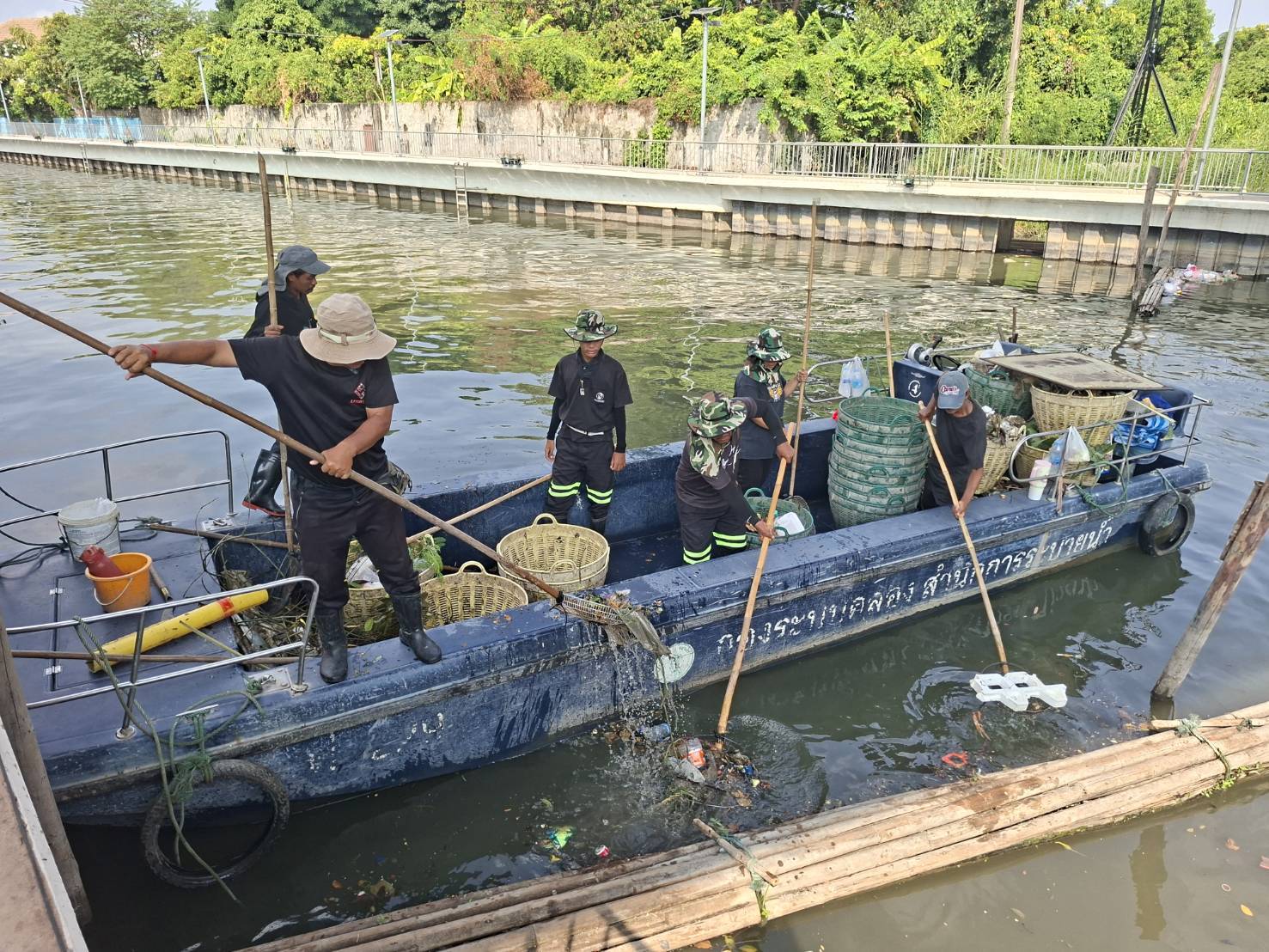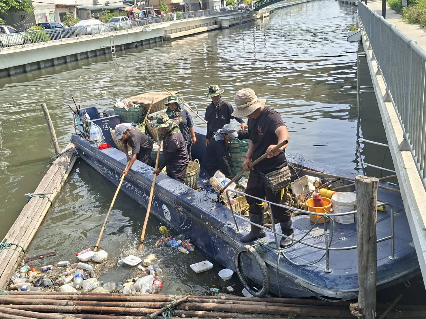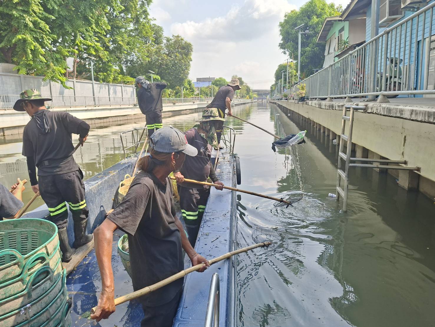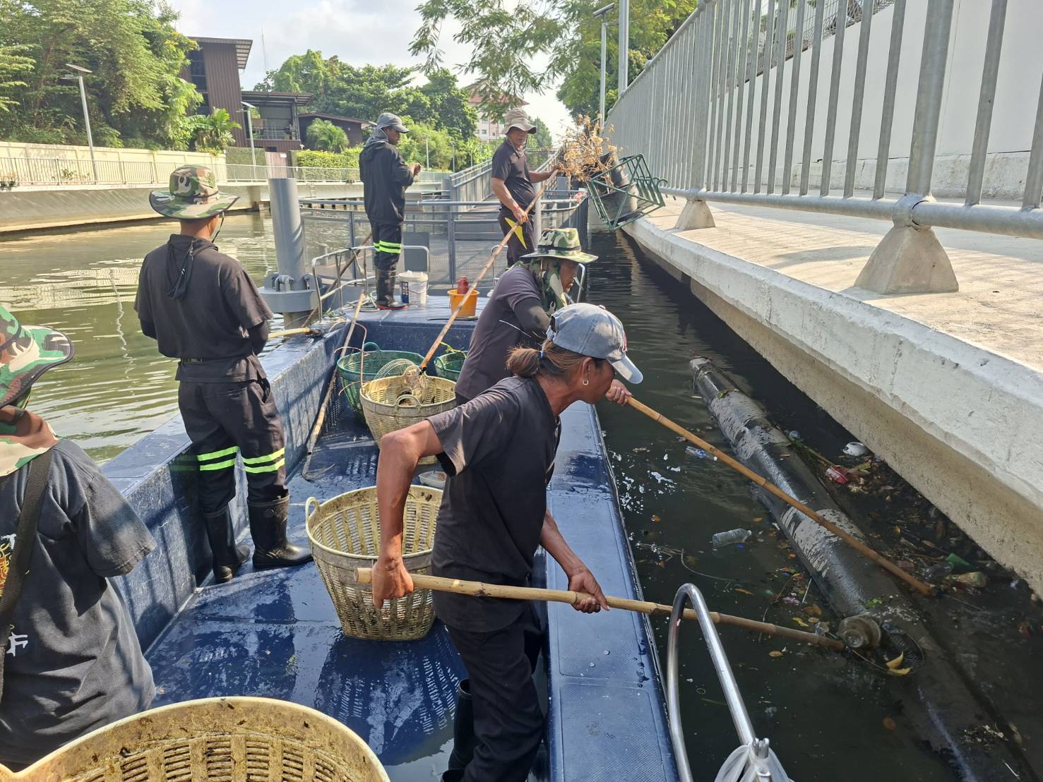เจ้าหน้าที่ เก็บขยะและวัชพืชคลองเปรมประชากร ช่วงชุมชนตึกแดงบางซื่อเขตบางซื่อถึงสะพานงามวงศ์วานเขตจตุจักร